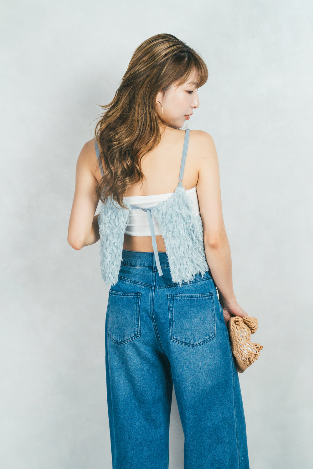 [SET]カラーフリンジビスチェ+ラインストーンストレートデニム