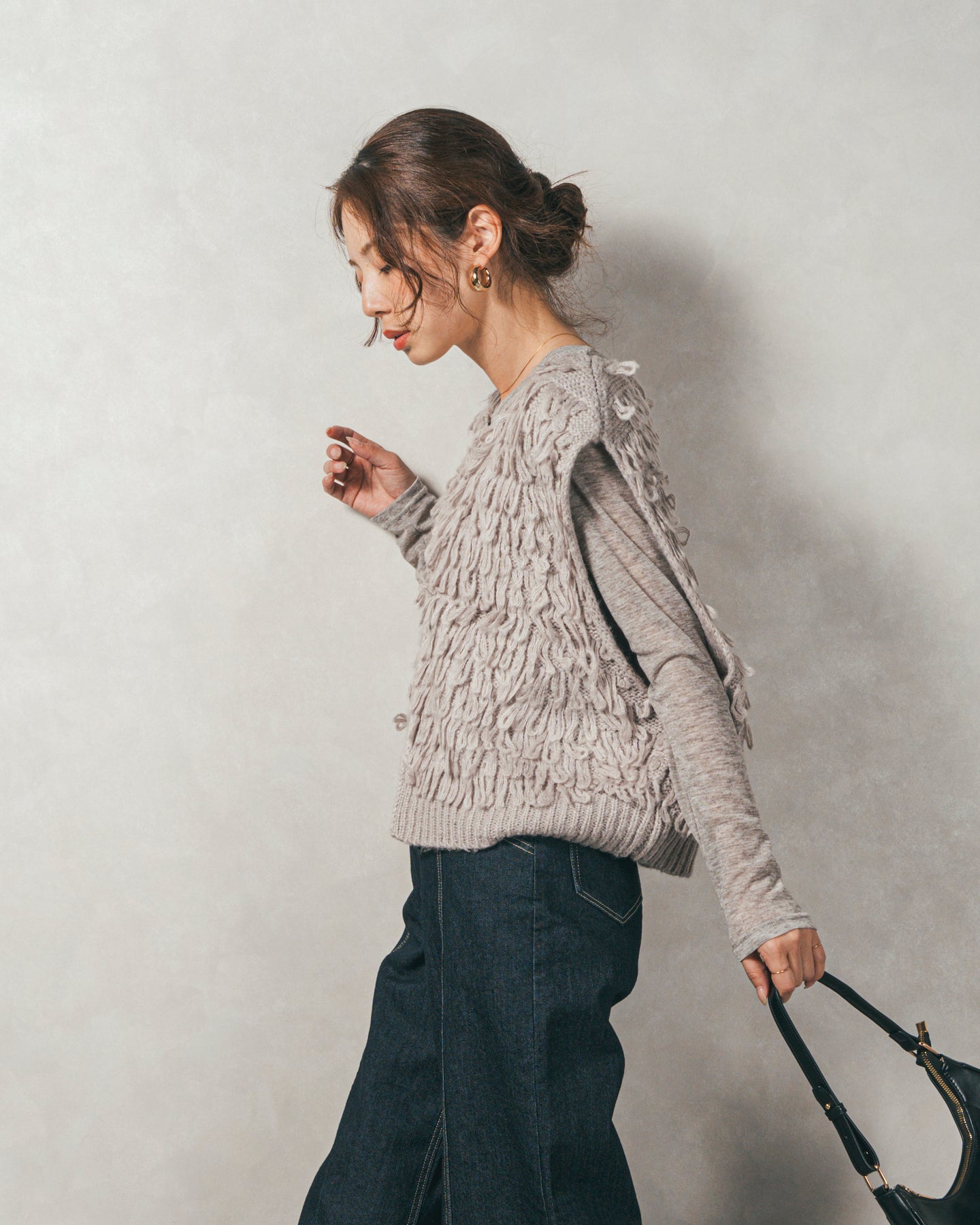 「いつもの服」に合わせやすい、立体感をプラスするニュアンスベスト