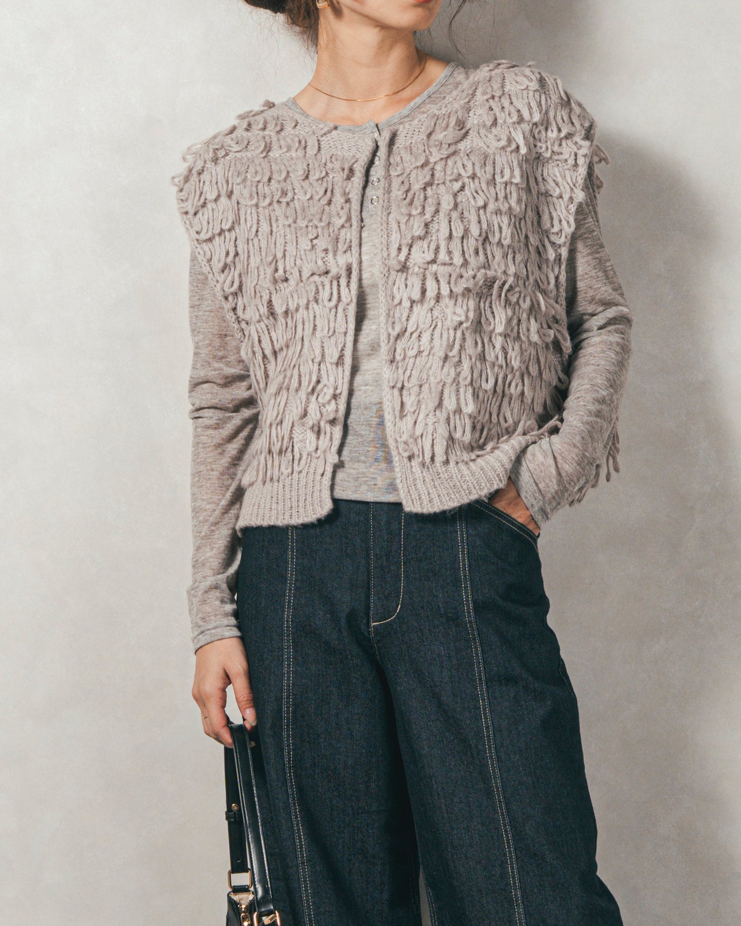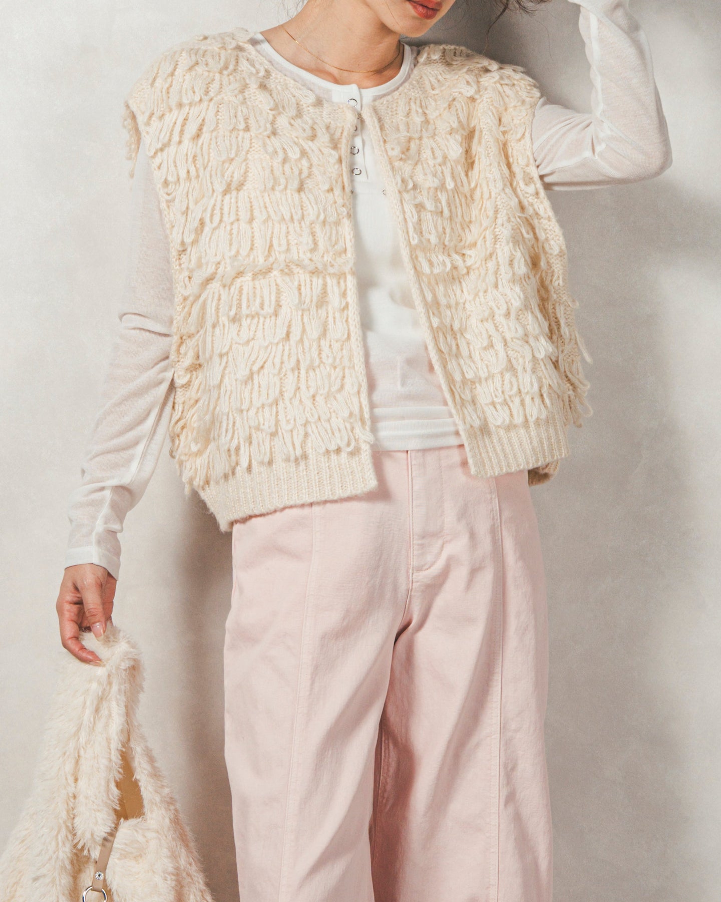 ・ループ編みフリンジニットベスト