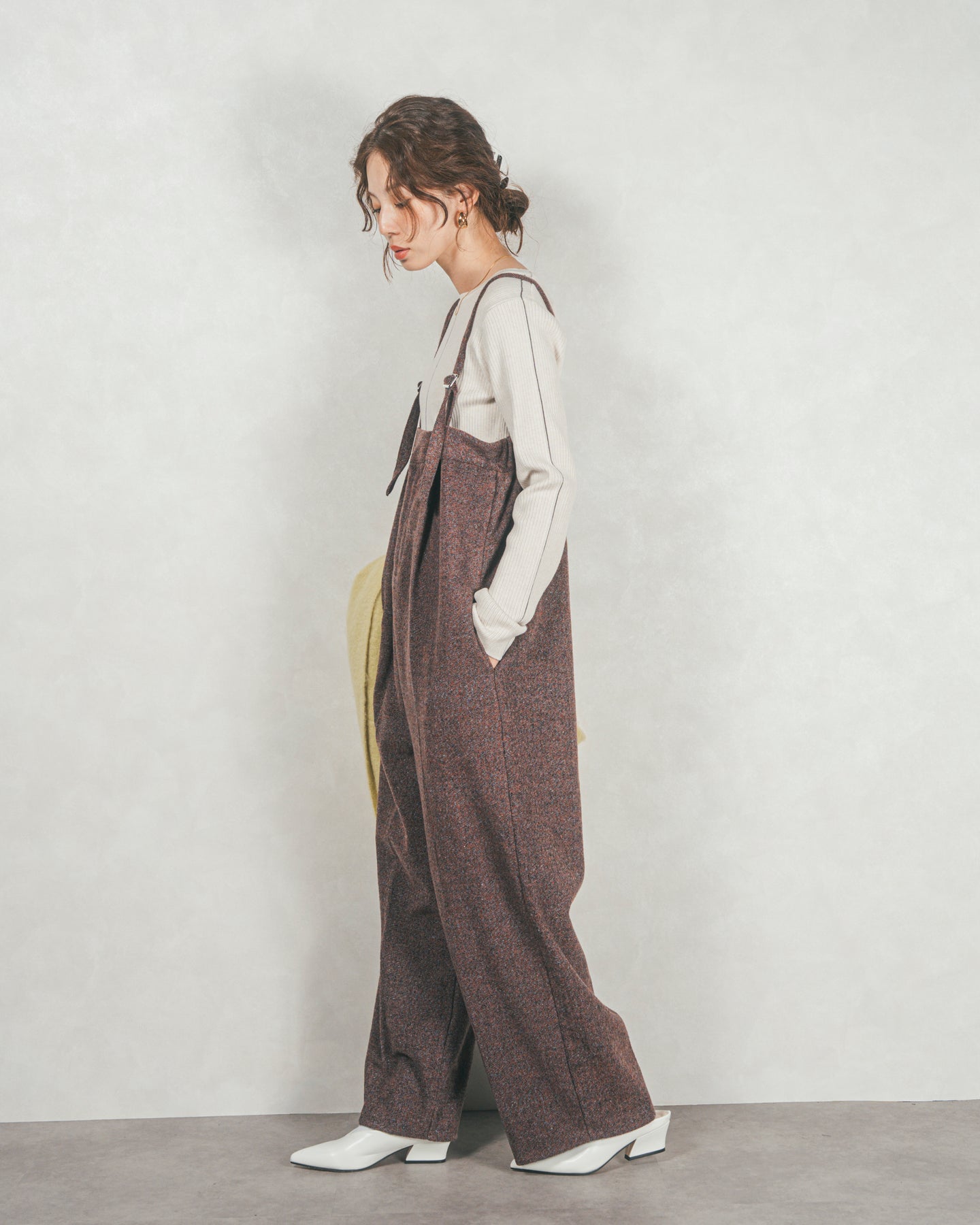 秋冬ムードを盛り上げる、あたたかみのあるツイード素材のサロペット