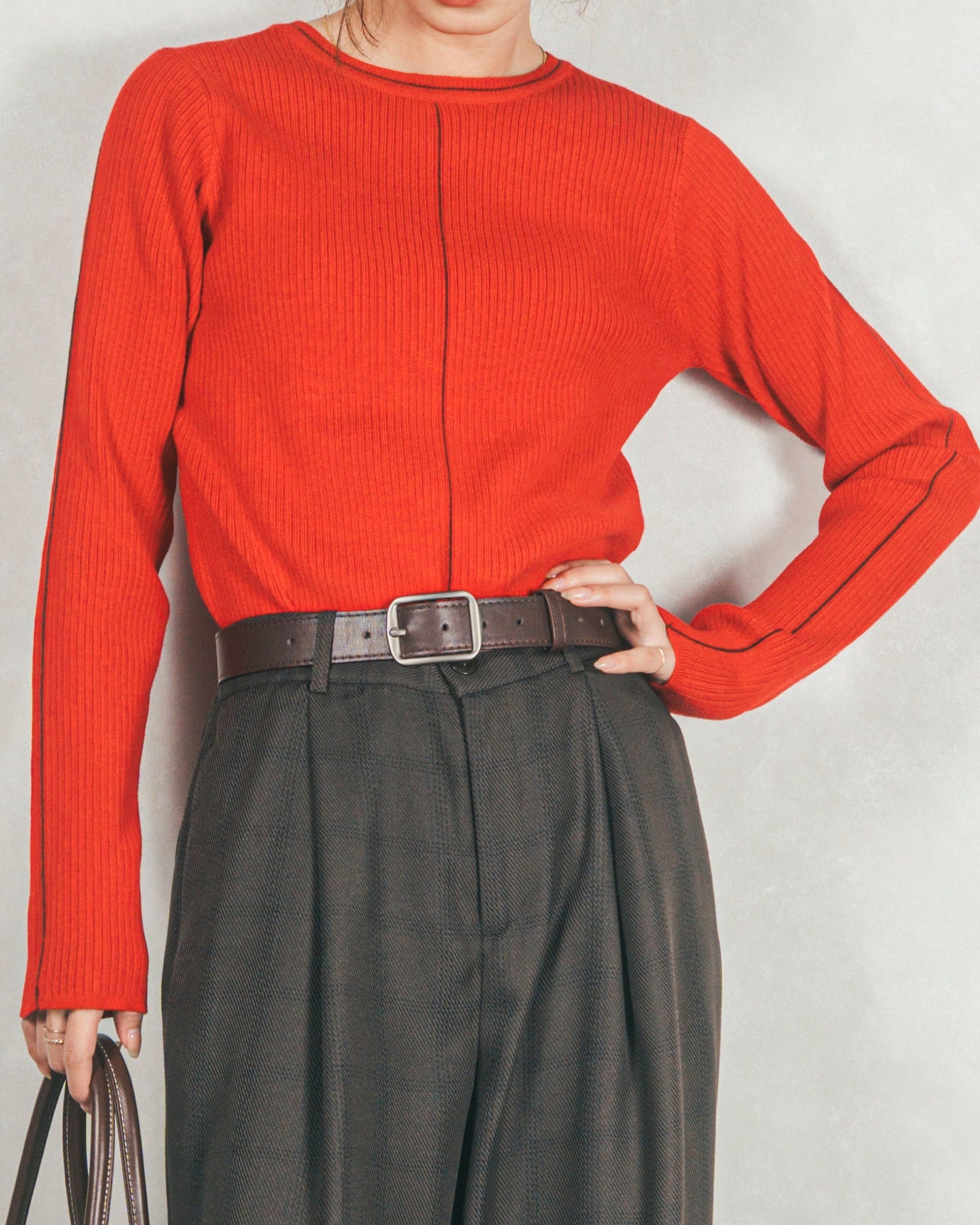 着るだけでこなれる配色ステッチがポイントの、着回し力抜群リブトップス