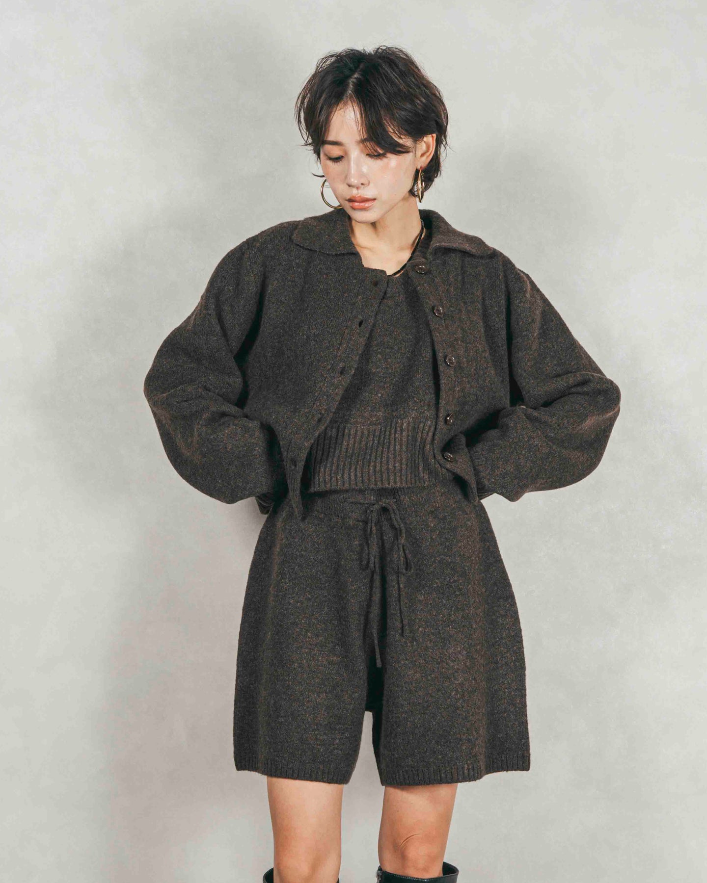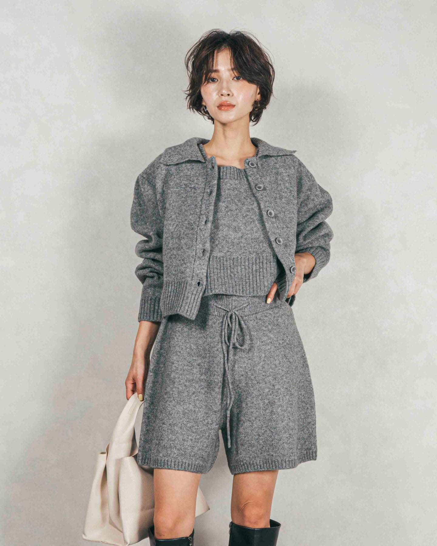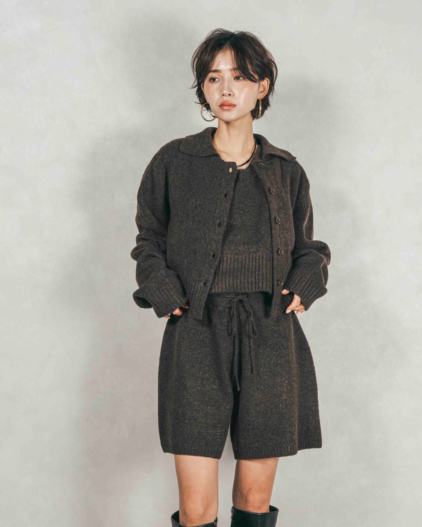 [SET]Cloudyメランジ襟付きカーディガン+Cloudyメランジクロップドベスト+Cloudyメランジハーフパンツ(3SET)