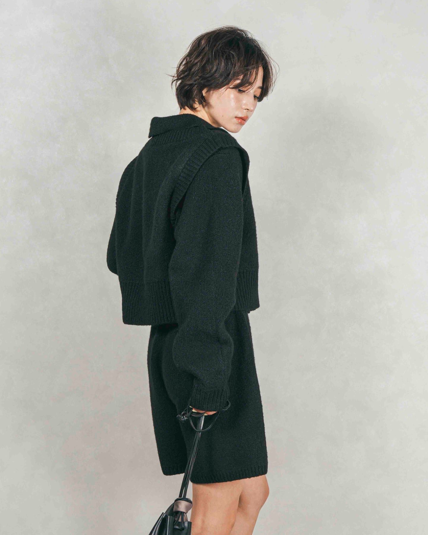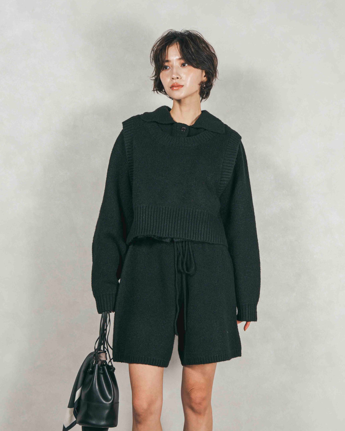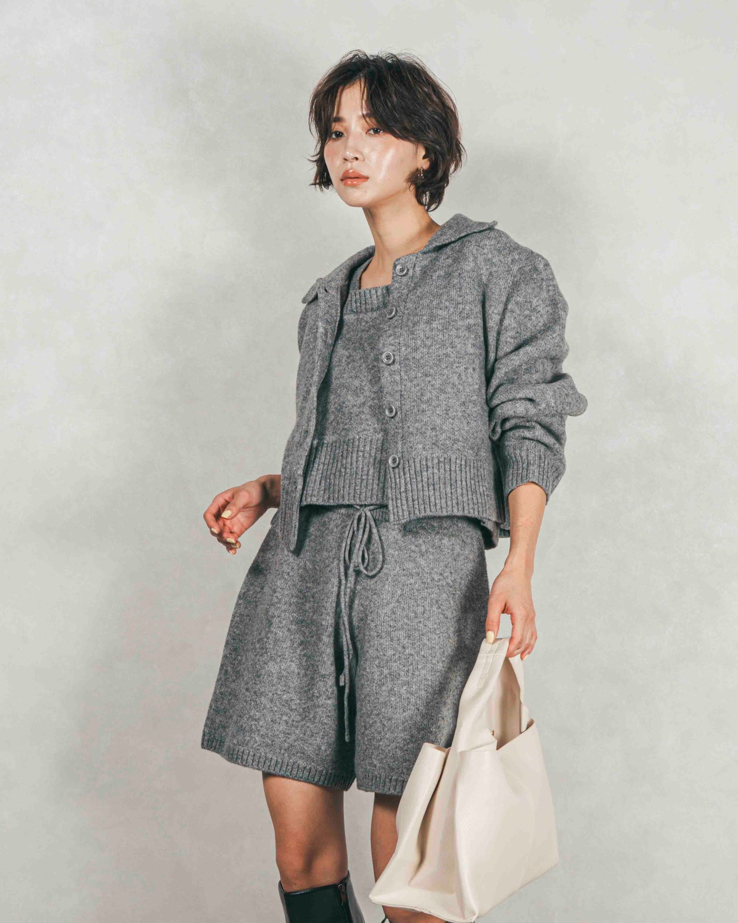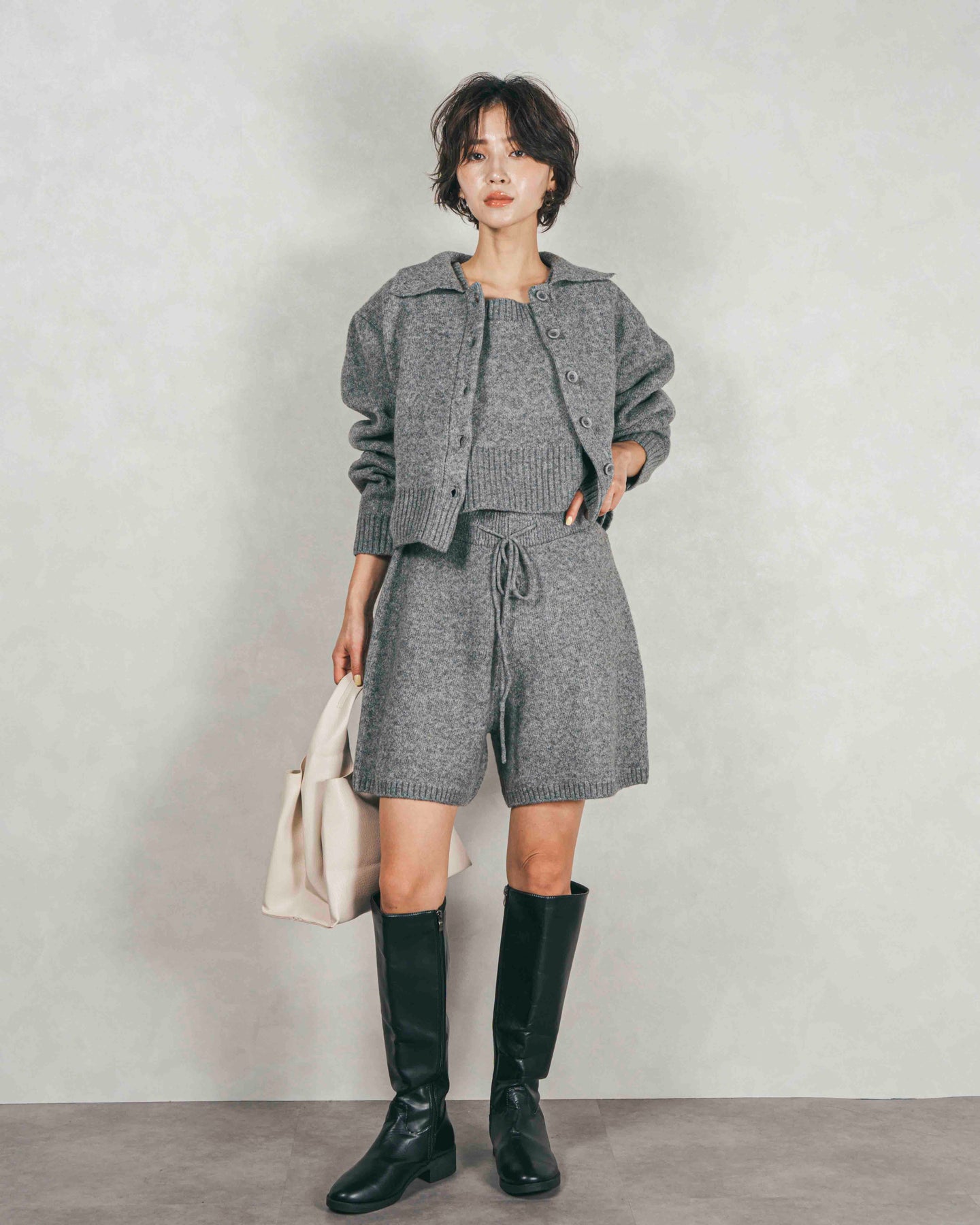 [SET]Cloudyメランジ襟付きカーディガン+Cloudyメランジクロップドベスト+Cloudyメランジハーフパンツ(3SET)