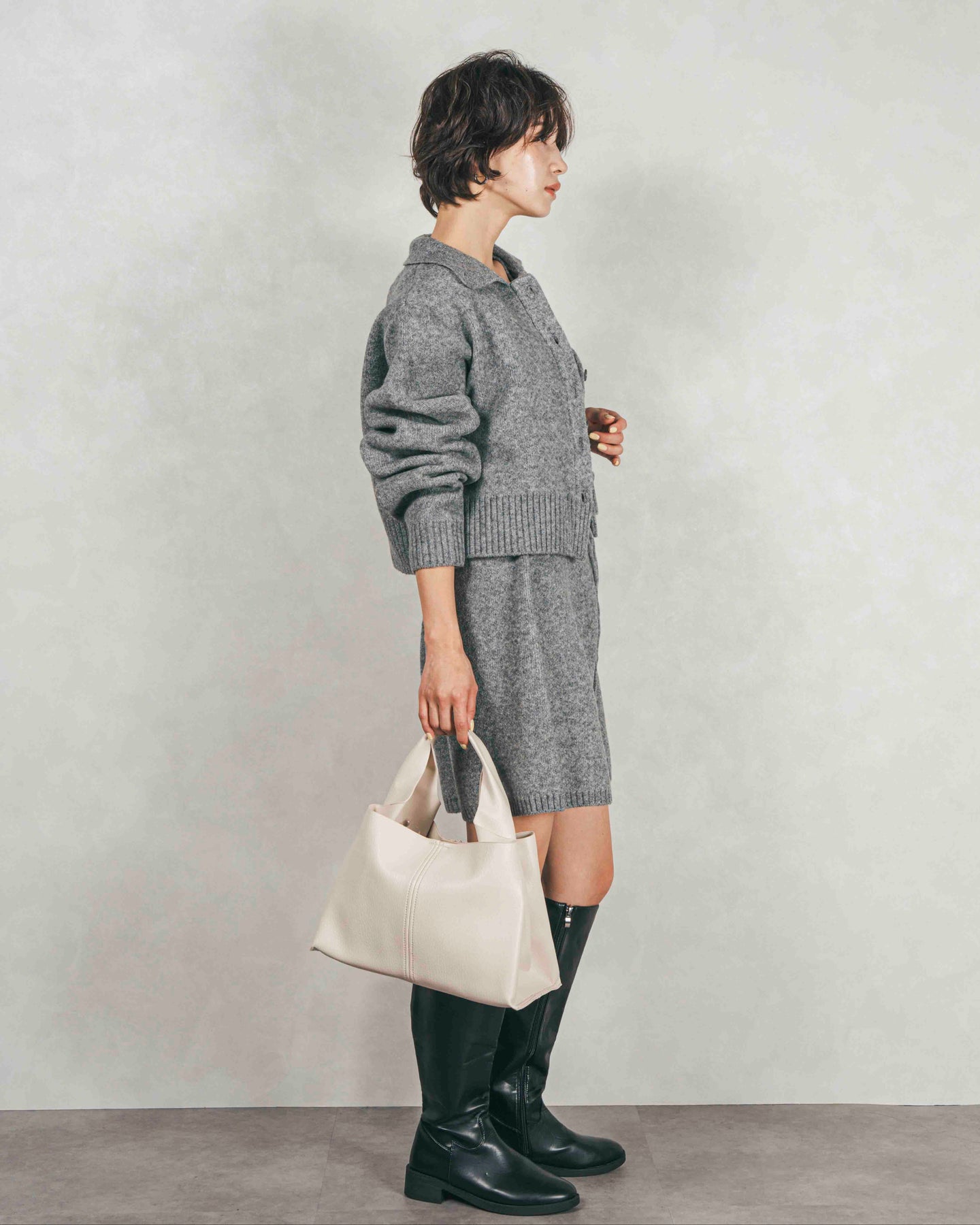 同素材のカーディガンやベストと合わせたセットアップスタイルは、おしゃれで統一感のあるリラックスムードに。オーバーサイズのざっくりニットやスウェットと合わせれば、可愛らしくも大人っぽい着こなしに◎