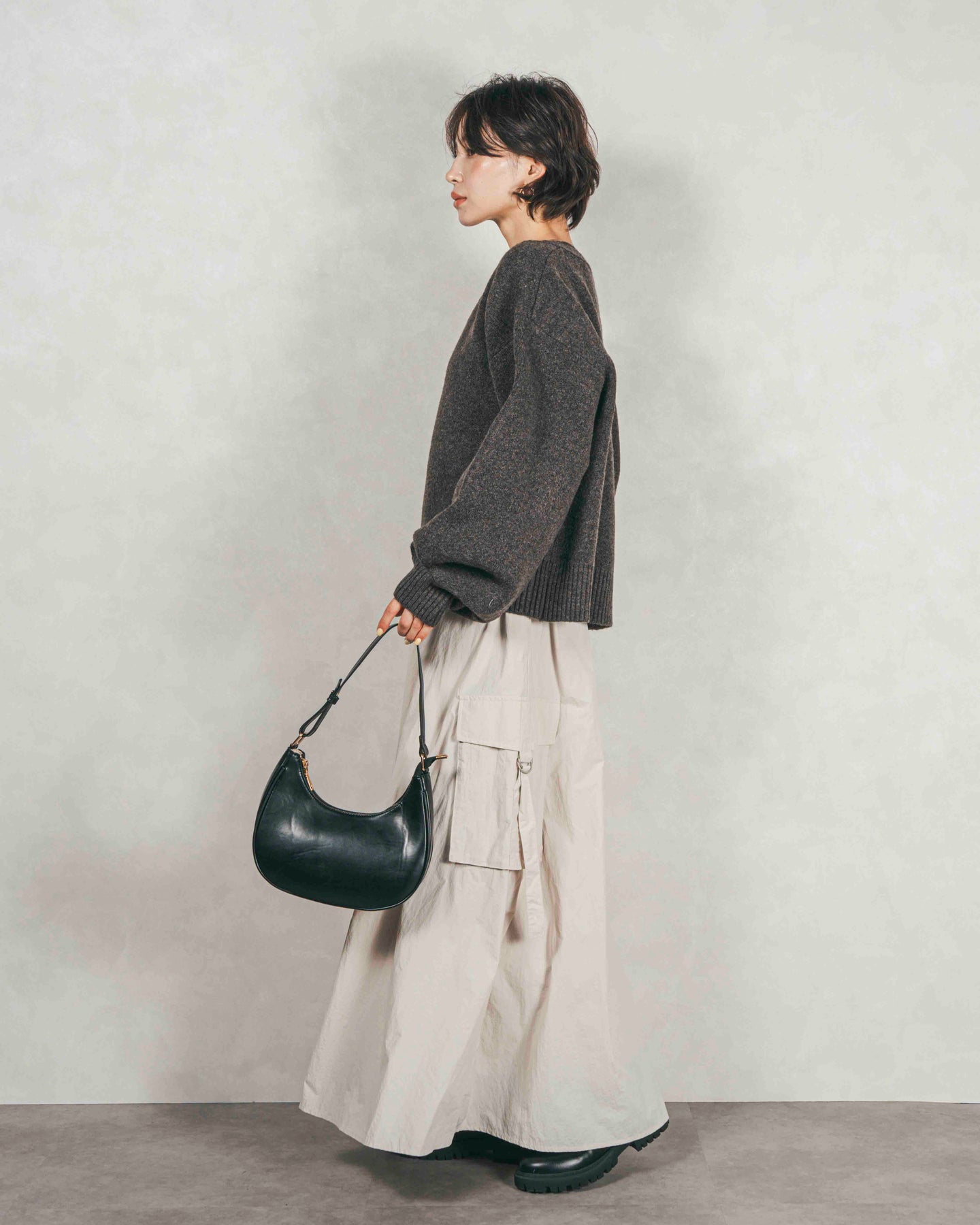厚手のニットやシアートップスなどで異素材感を楽しんで。足もとはスニーカーでリラックスさせたり、ヒールやバレエシューズで可愛らしくまとめたりも◎着回し力が高いアイテムです。