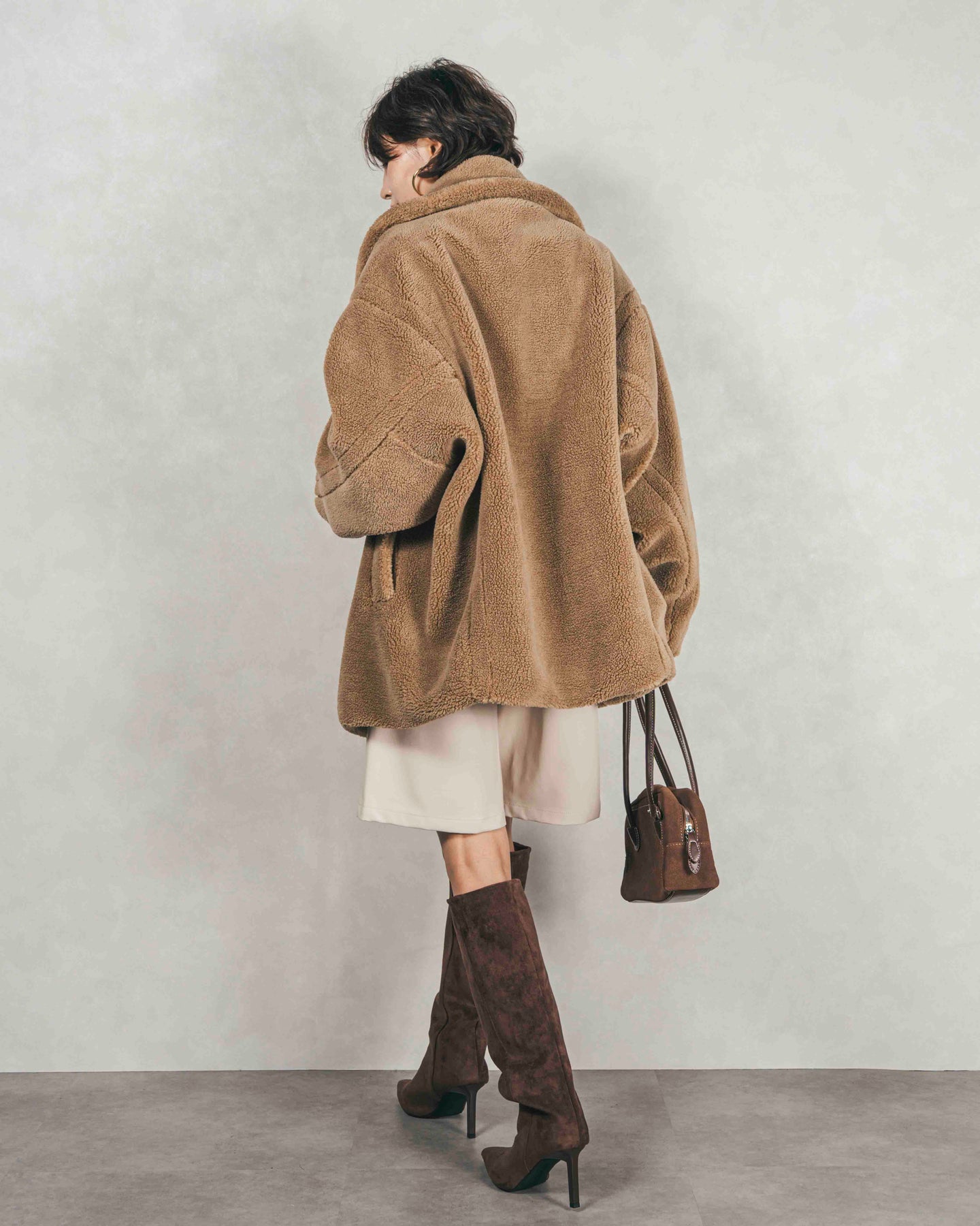 包まれるようなもこもこ感!秋冬の主役、ミディ丈のテディボアコート