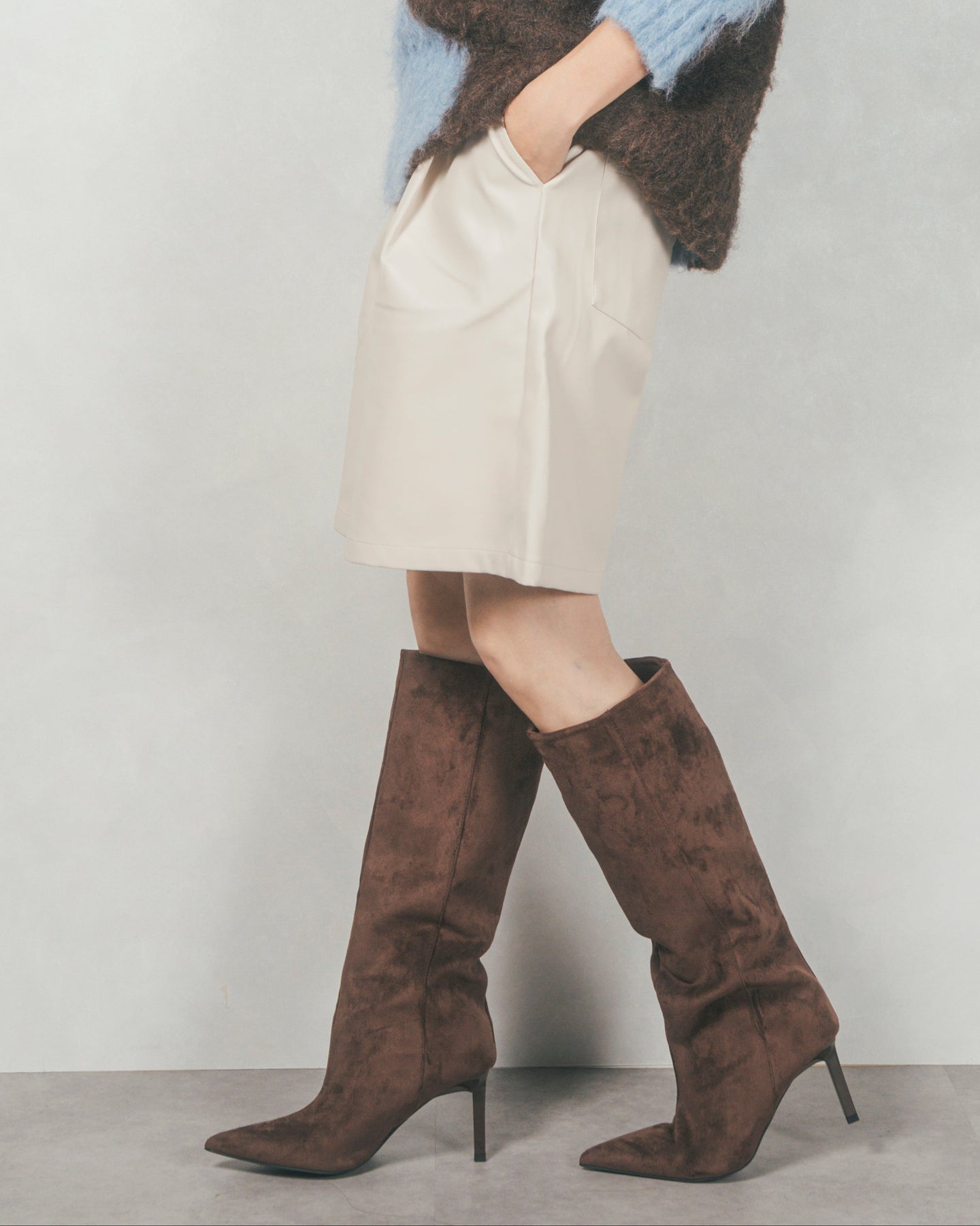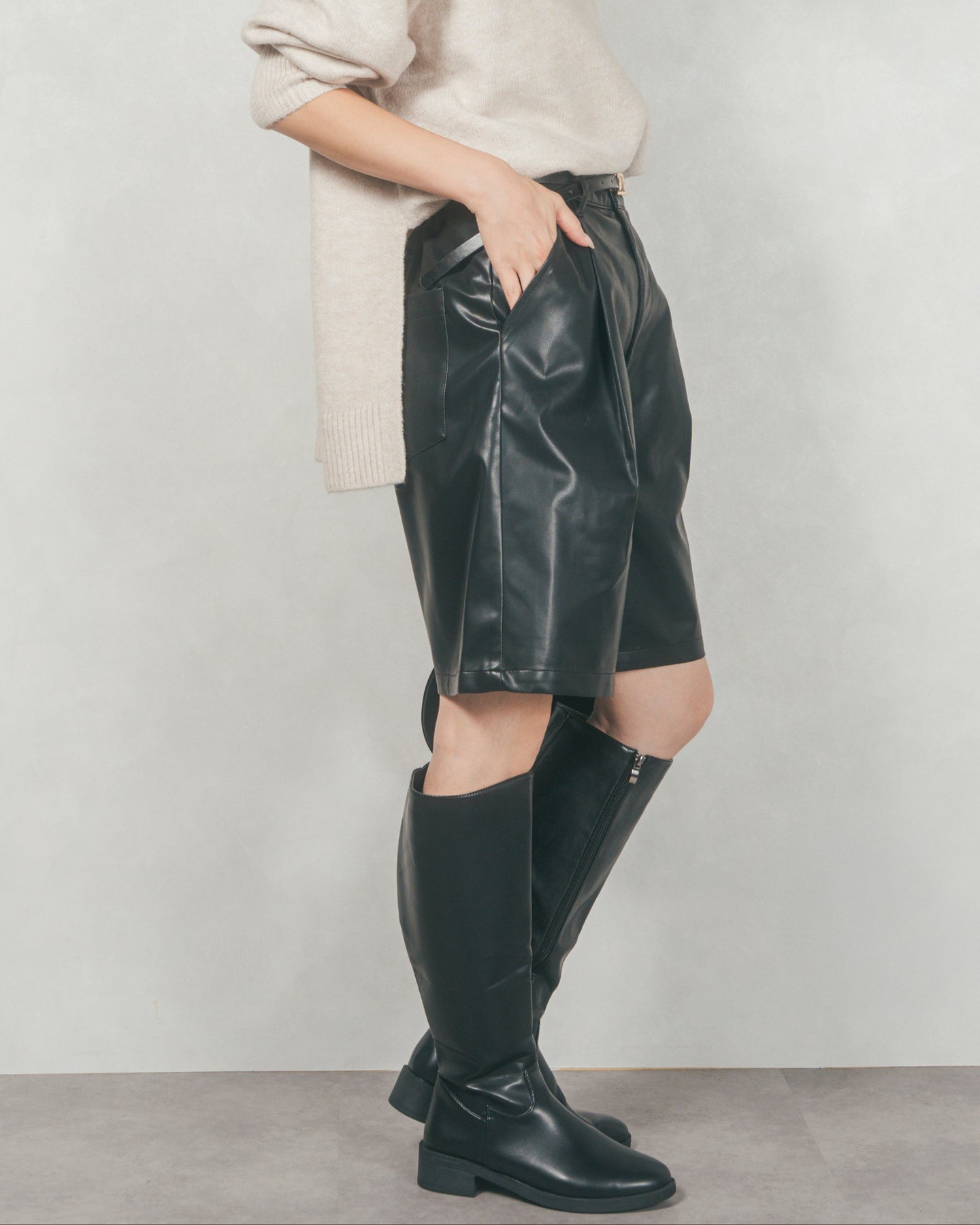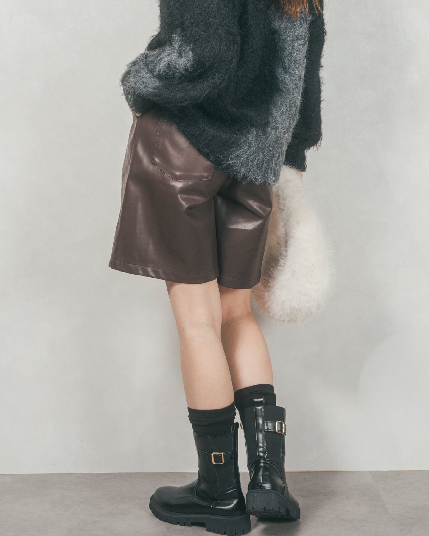 重たく見えがちなレザー調アイテムですが、軽やかにはけるフェイクレザー素材です。裏地付きで足通りもなめらか。