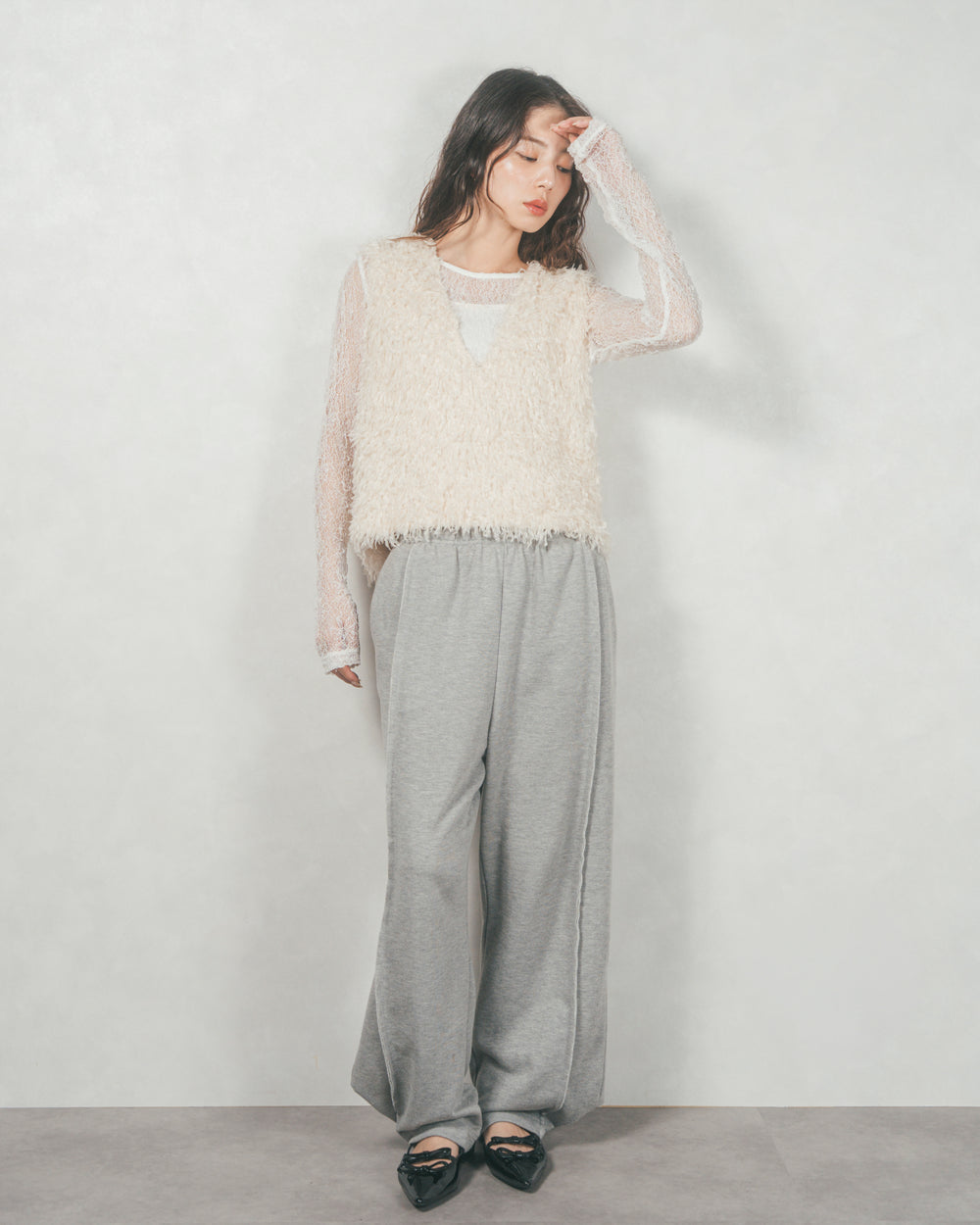 [SET]2-Way フリンジベスト+2-Way ウェーブデザインスウェットパンツ(2SET)