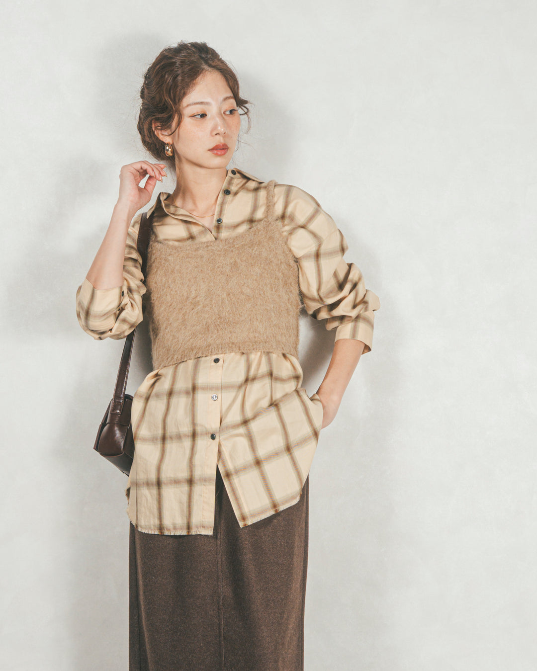 レイヤードもしやすく、シャツやタートルネックを重ねれば、簡単にこなれたスタイルが完成。ふわっとやわらかな肌触りのニット素材で、着心地も◎。デイリーに頼れる一着です。