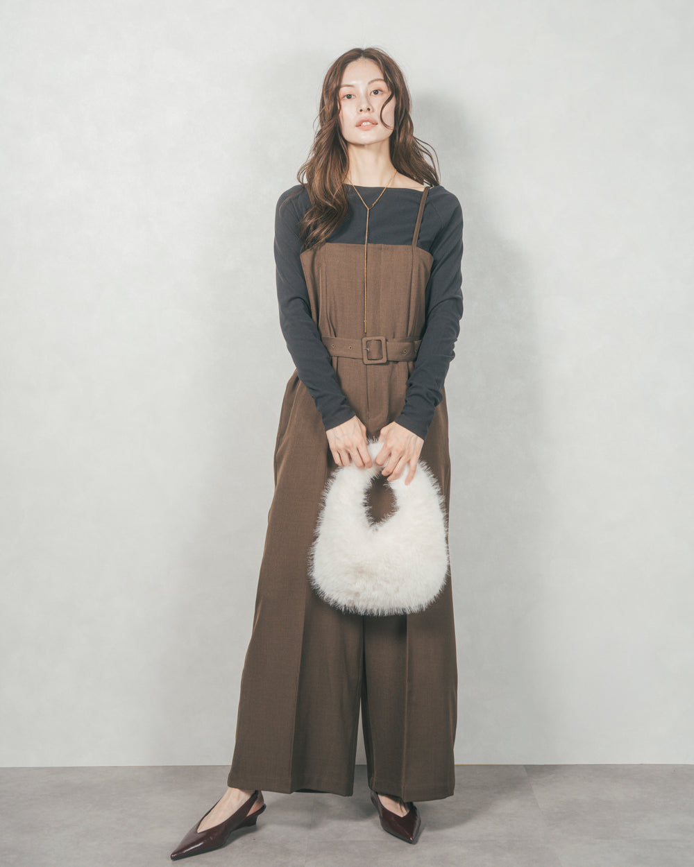 [SET]3-Way すっきり見えオフショルトップス+ウエストベルト付 Twillキャミサロペ(2SET)