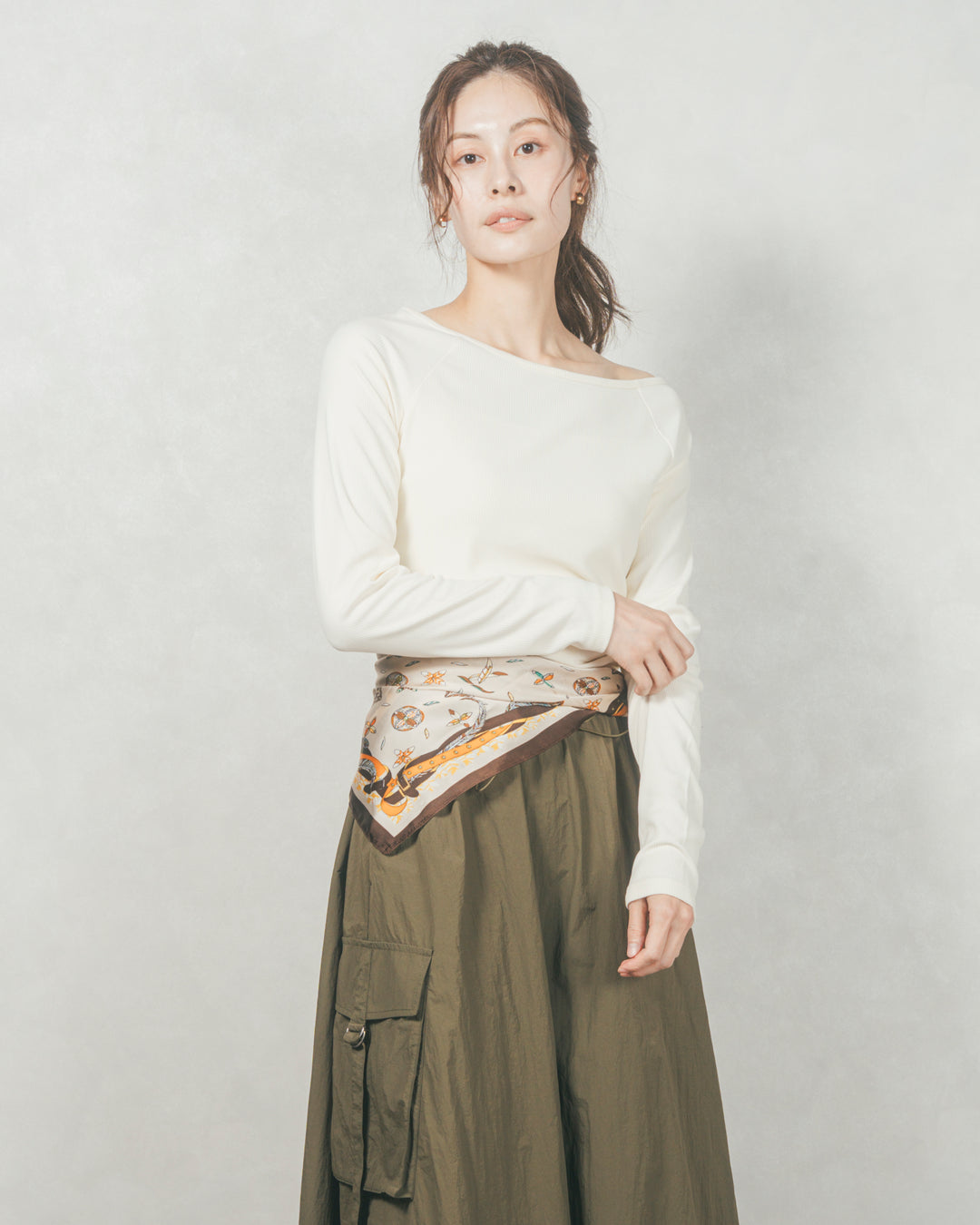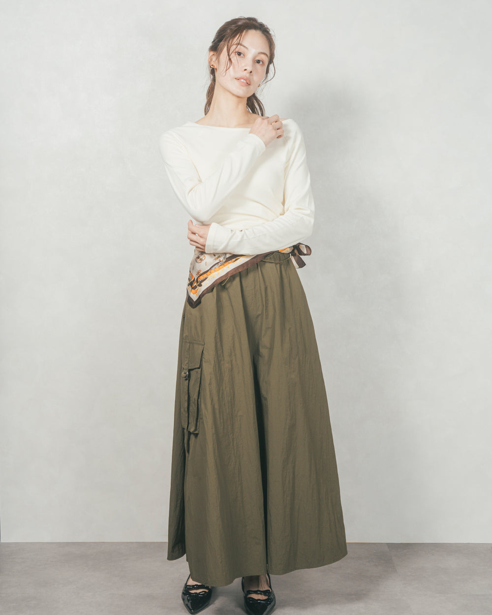 [SET]3-Way すっきり見えオフショルトップス+ドローストリングナイロンカーゴスカート(2SET)