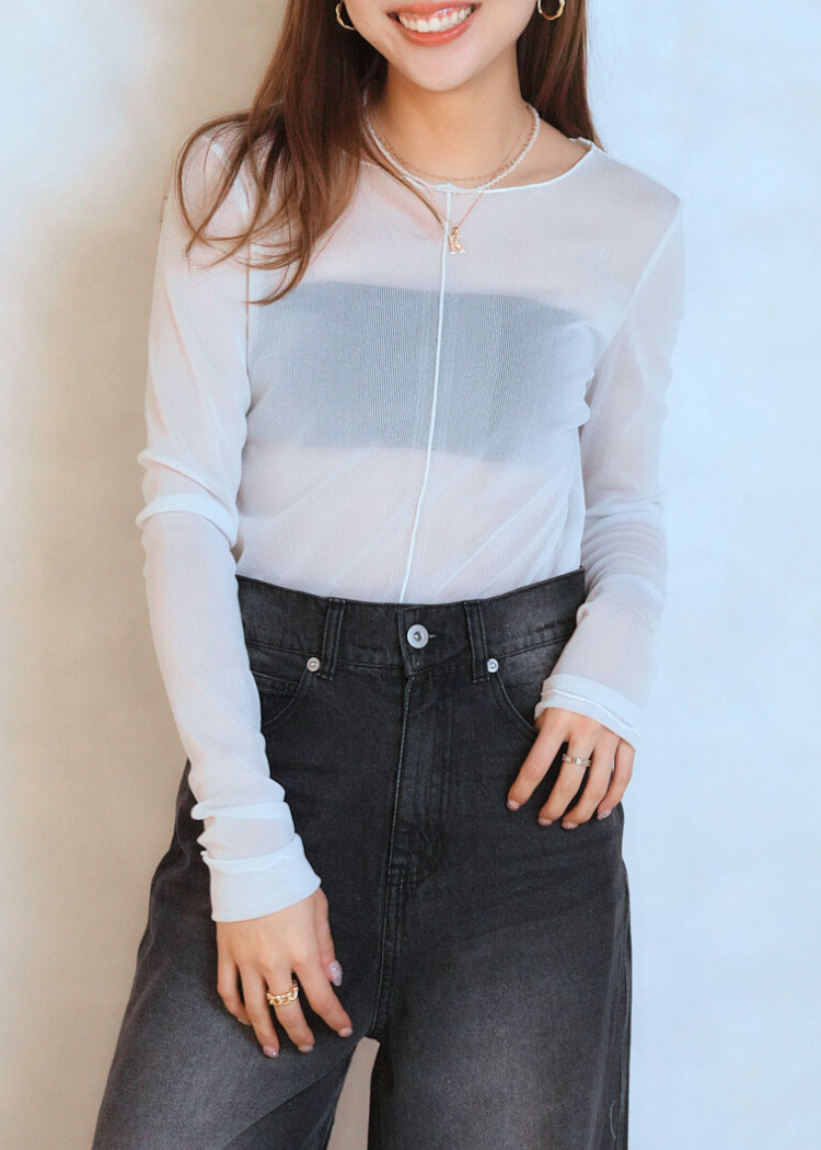 [SET]裾デザインラメシアートップス+カットオフデザインデニム(2SET)