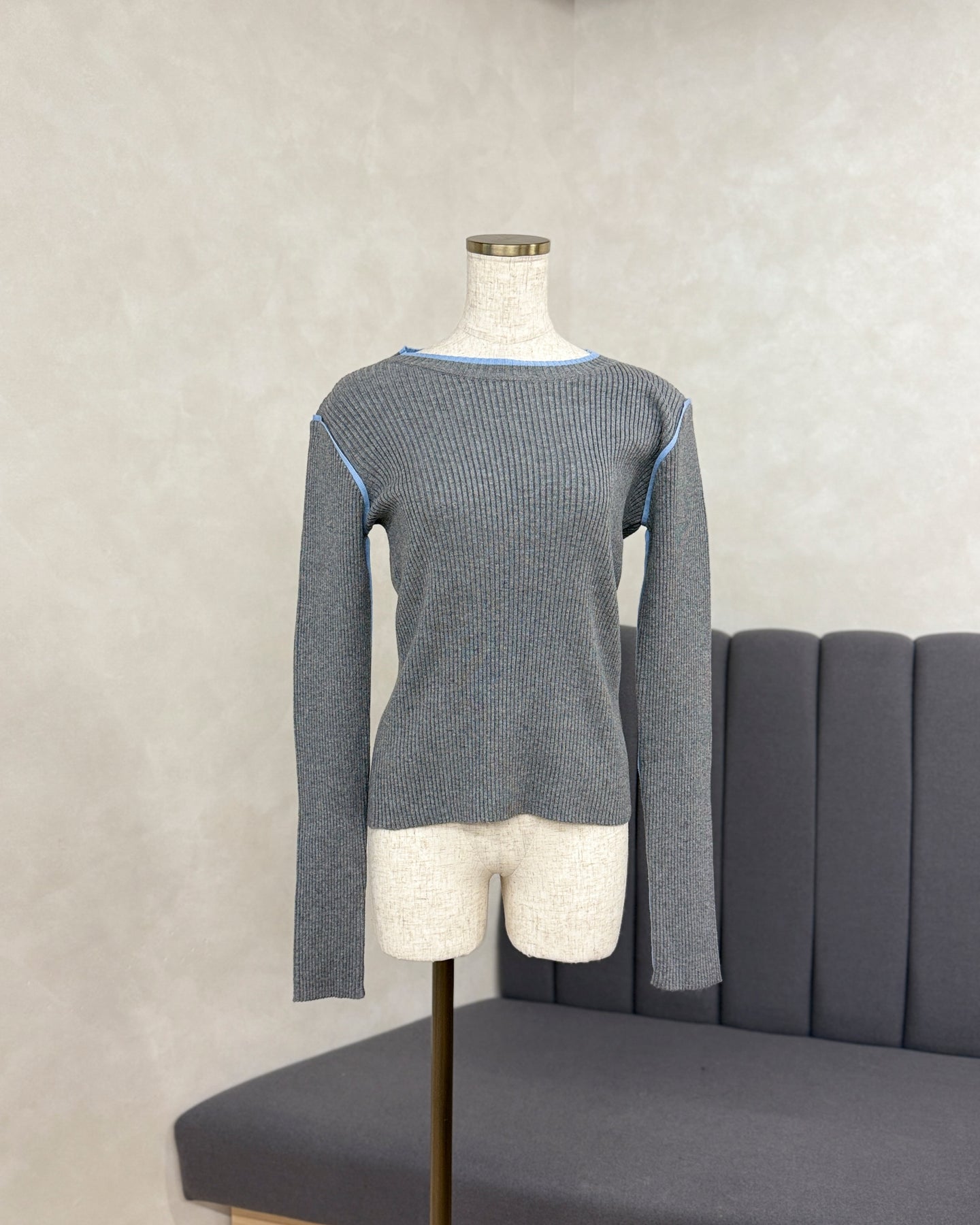 【※サンプル品】バイカラークルーネックニットトップス (GRAY x LIGHT BLUE)