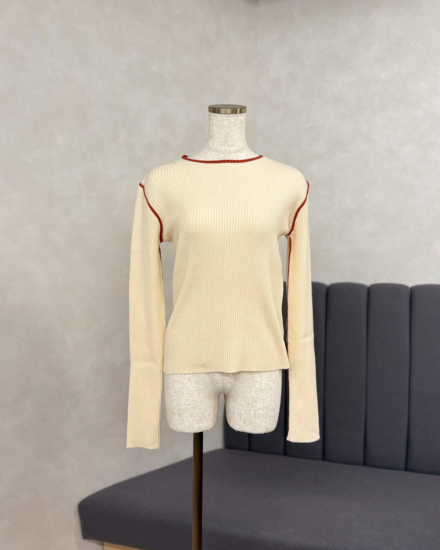 【※サンプル品】バイカラークルーネックニットトップス(IVORY x ORENGE)