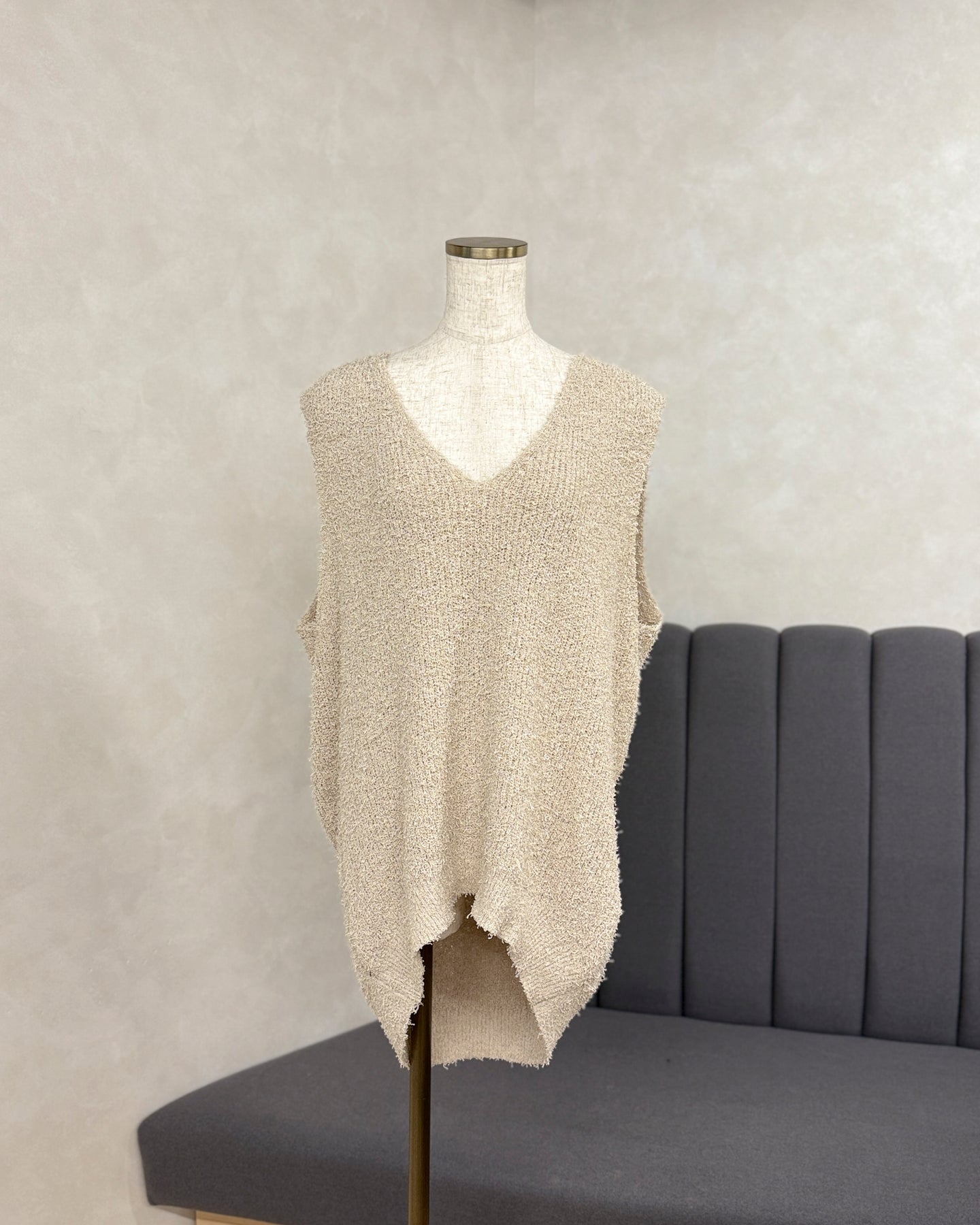 【※サンプル品】深Vネック ループヤーンニットベスト (ECRU)