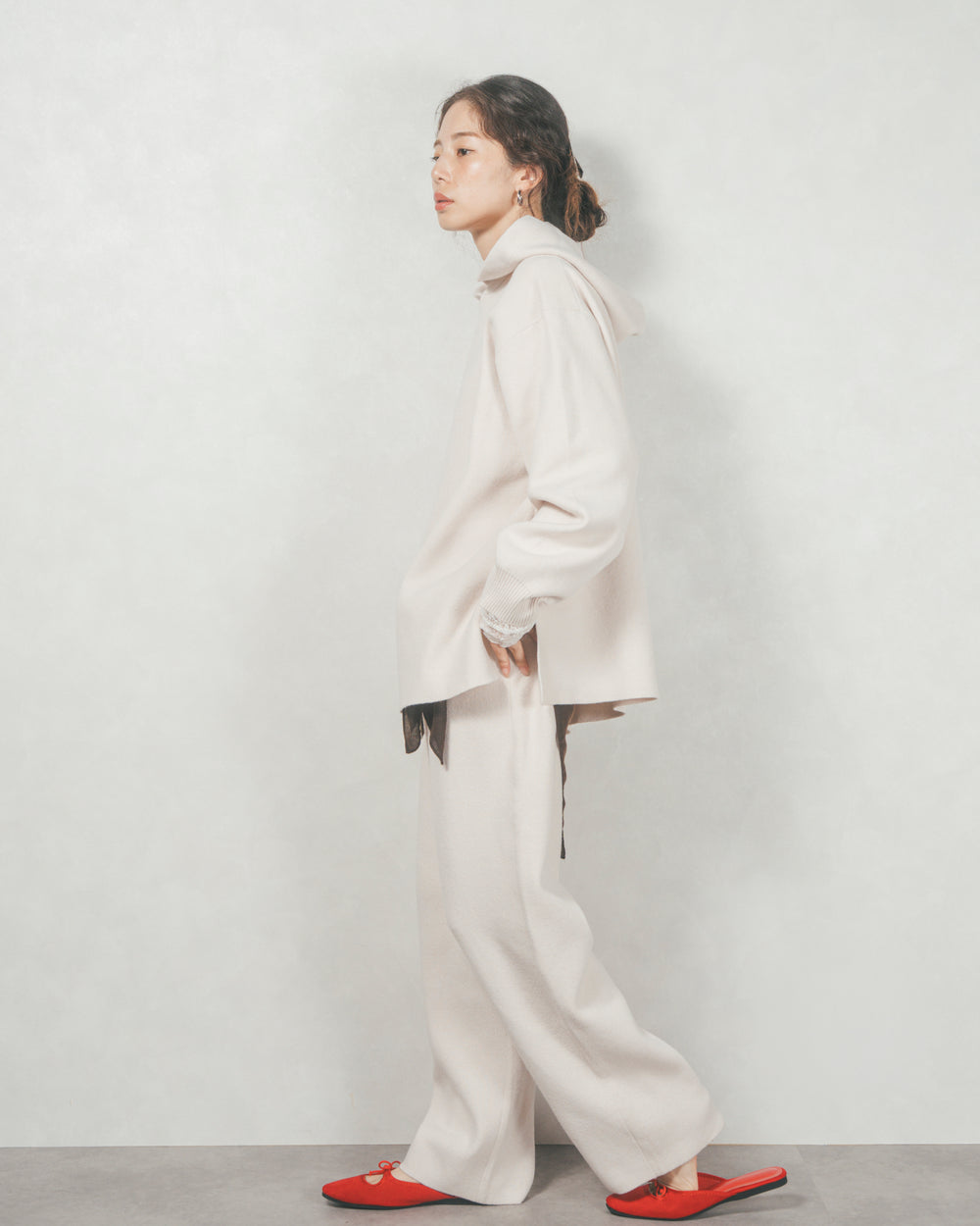 Airyフェザー ニットカーディガン (BEIGE×WHITE)