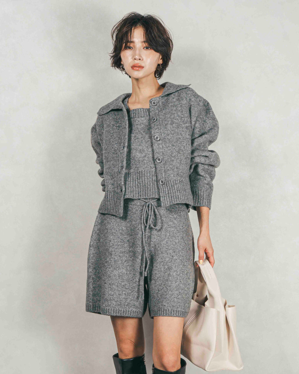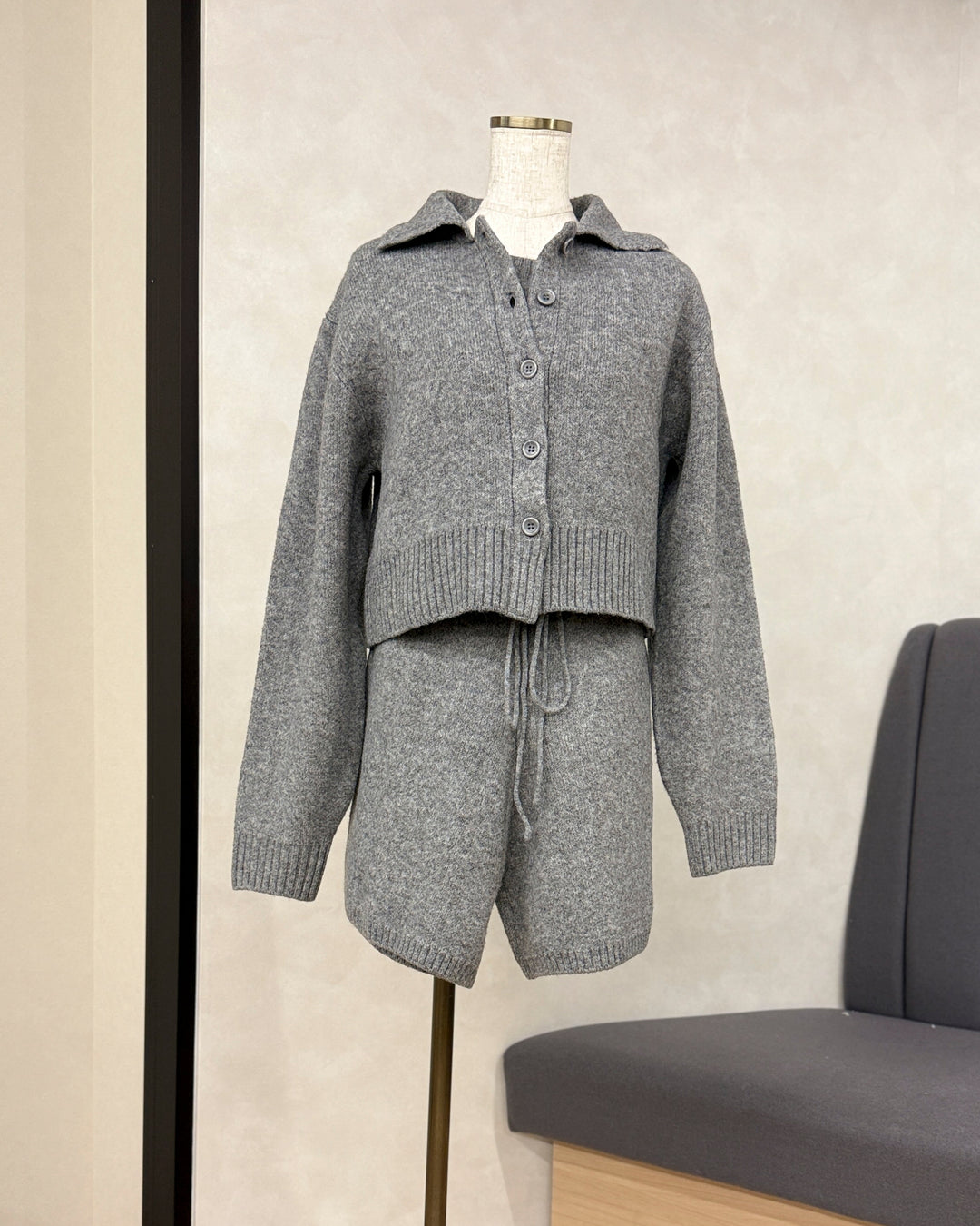 【※サンプル品】[SET]Cloudyメランジ襟付きカーディガン+Cloudyメランジクロップドベスト+Cloudyメランジハーフパンツ(3SET)