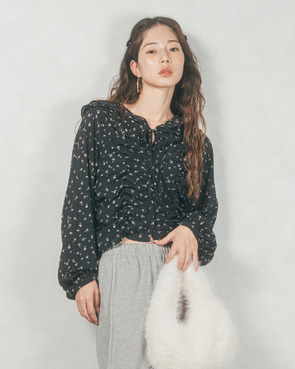 【※サンプル品】Flowerプリントフリルブラウス (BLACK)