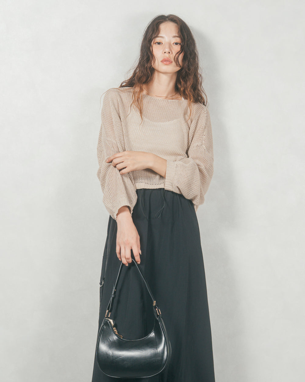 【※サンプル品】クロップドメッシュニット(BEIGE)