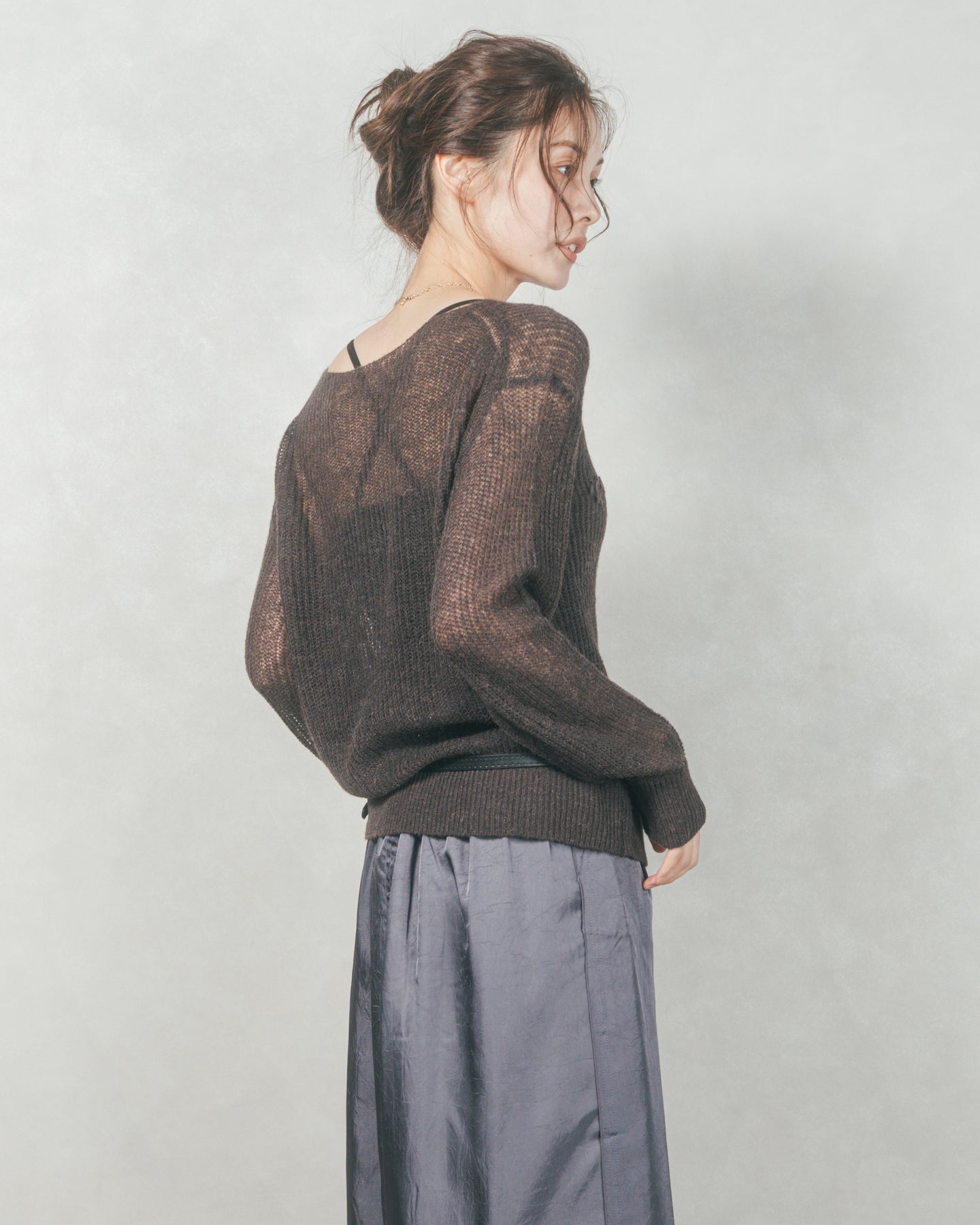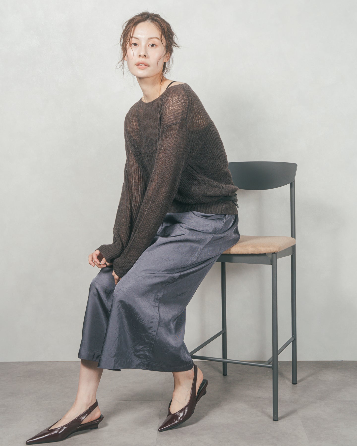 透け感のある素材ながら、甘くなりすぎず、ほどよく洗練された印象に仕上がるのがこのアイテムの強み。デニムでカジュアルにまとめるのはもちろん、サテンスカートやプリーツスカートを合わせれば、女性らしさを引き立てるミックススタイルも楽しめます。