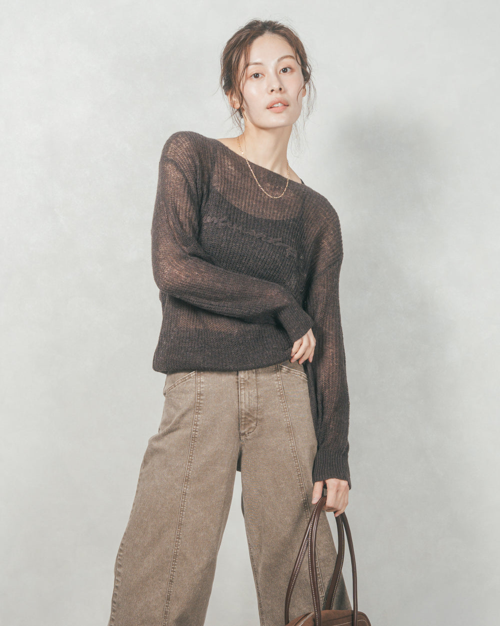 Logo刺繍シアーアルパカニット (CHARCOAL)