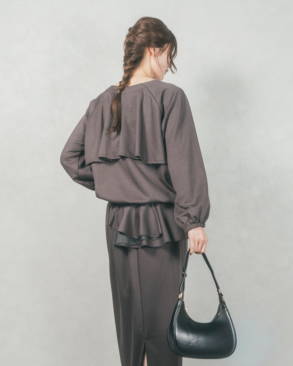 [SET]バックフリル ライトポンチZIPブルゾン+Multi-Way ライトポンチペプラムスカート(2SET)