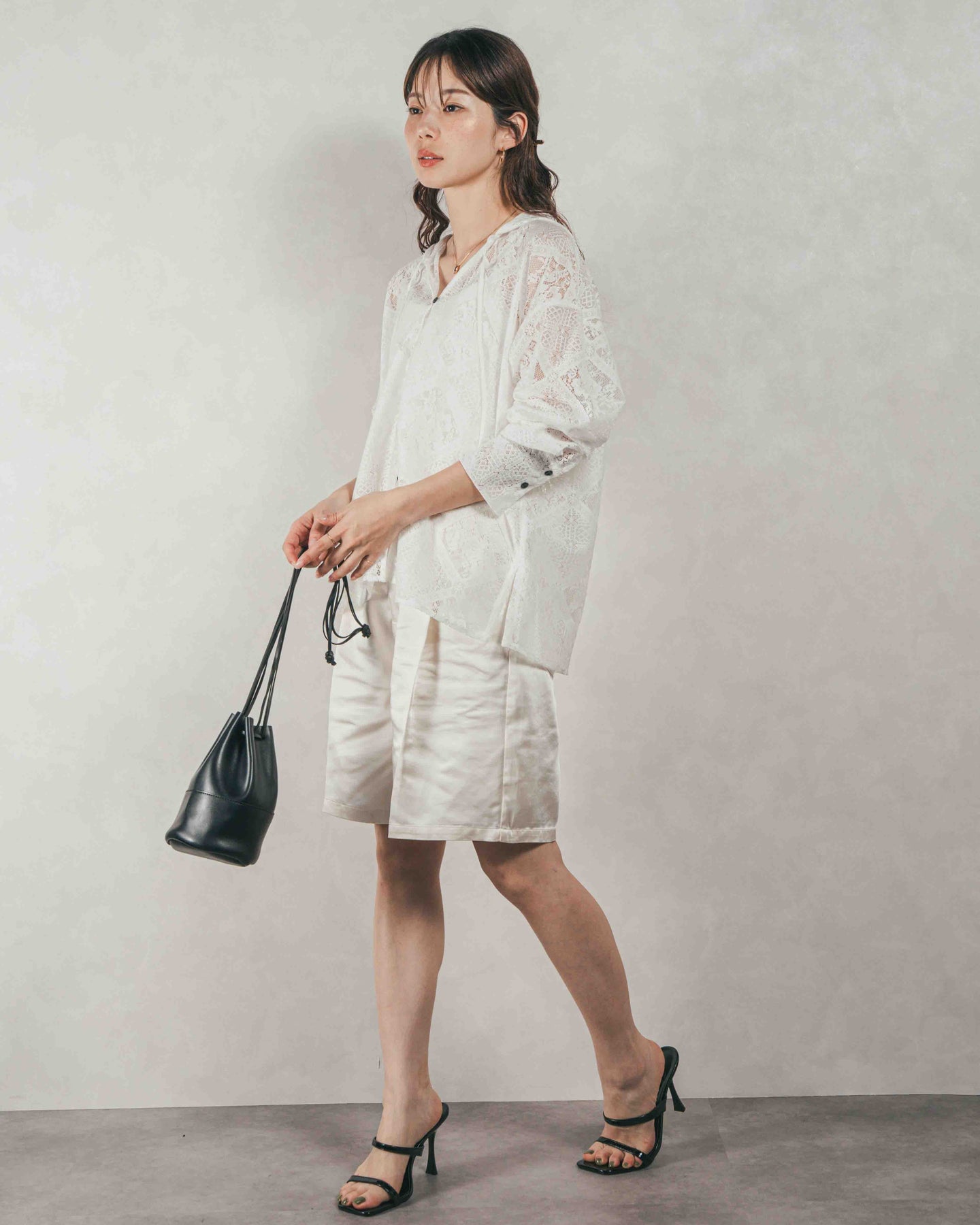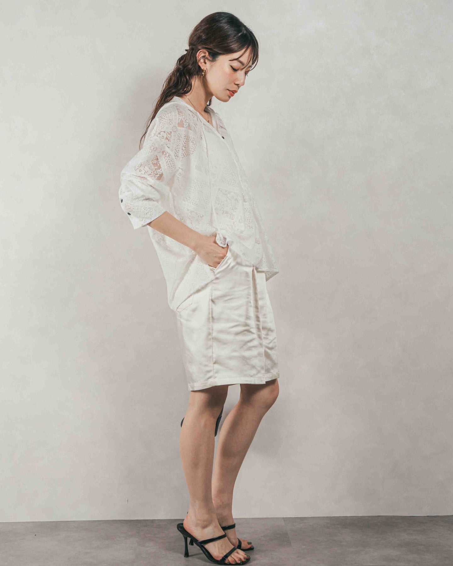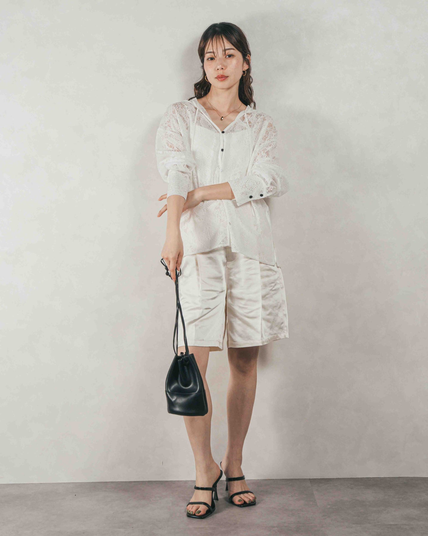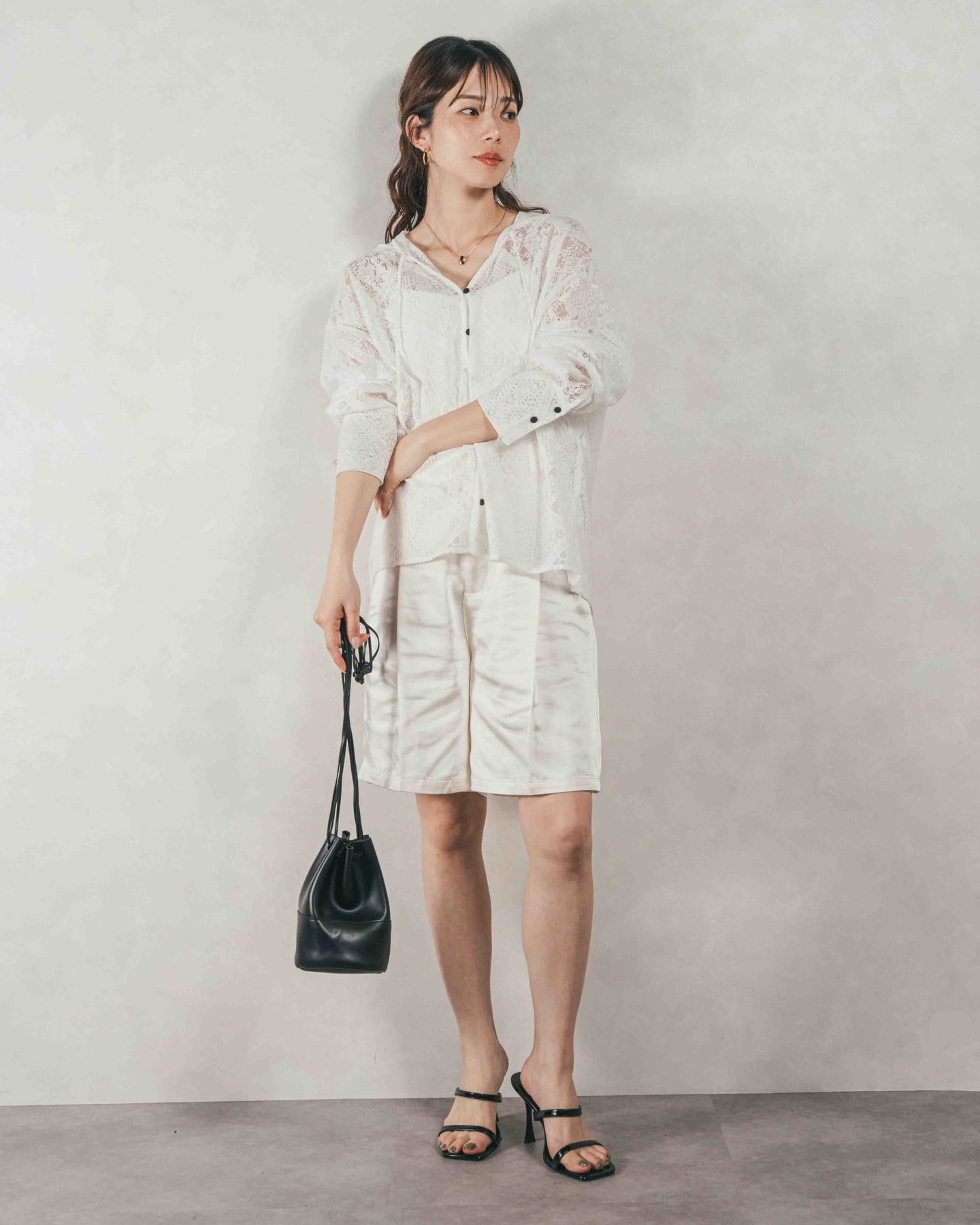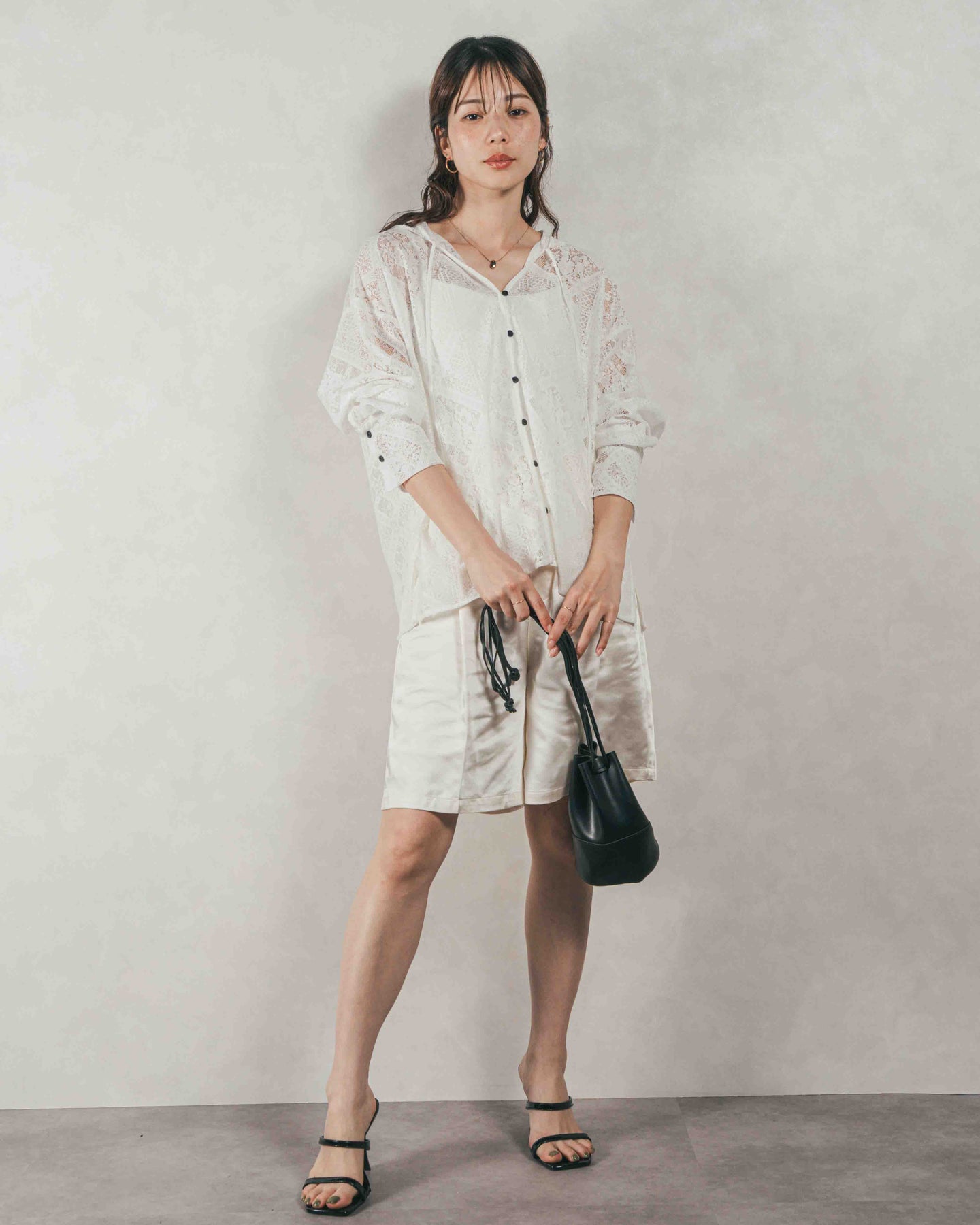 [SET]Blockレース フーディーブラウス + Vintageサテンハーフパンツ(2SET)