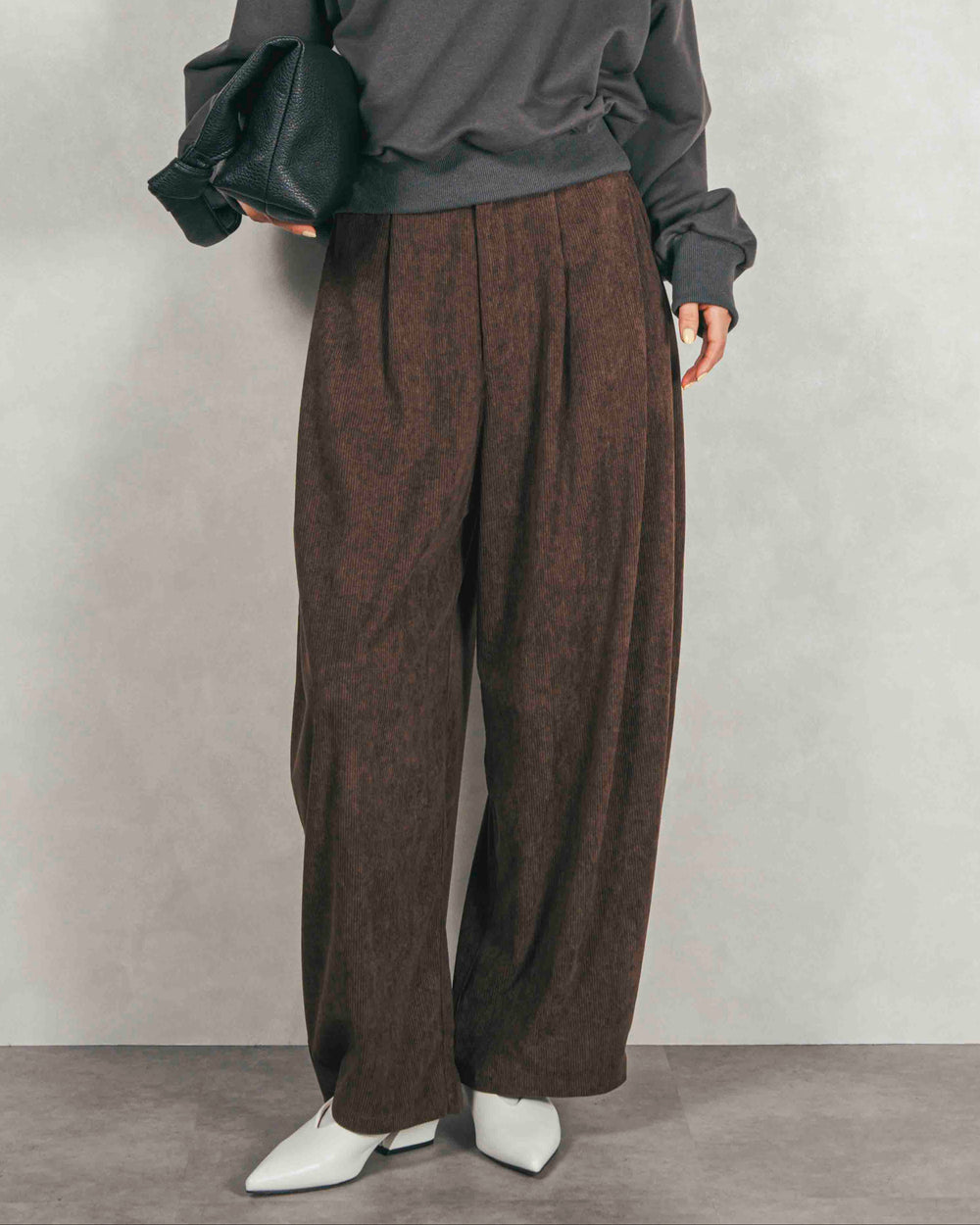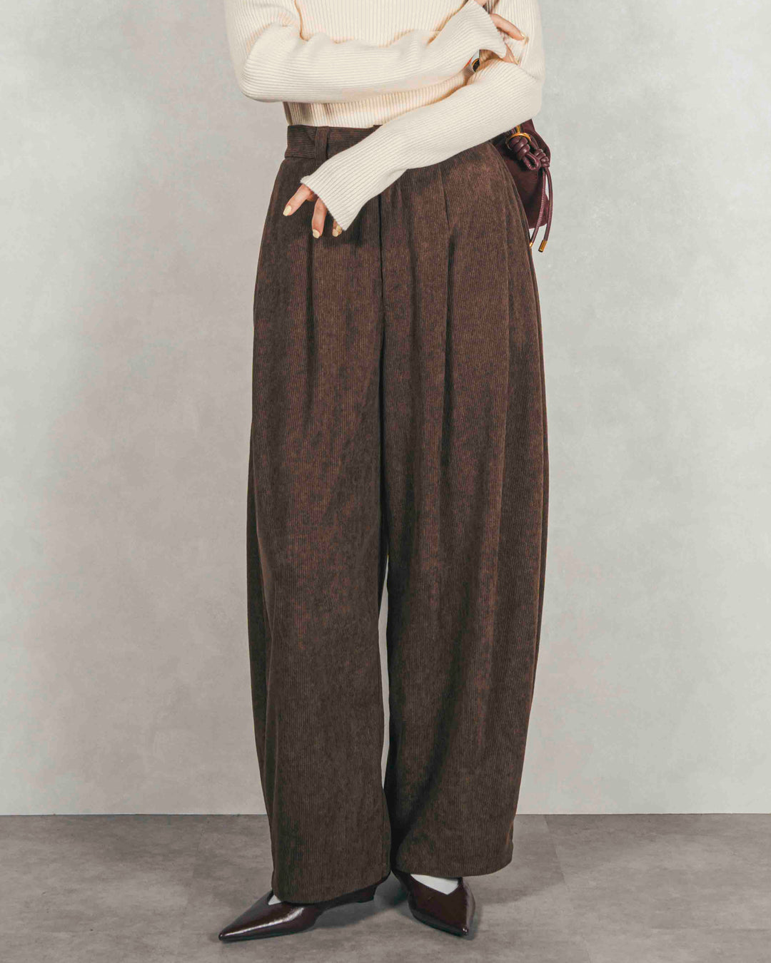 サイドタックコクーンコーデュロイパンツ (BROWN)