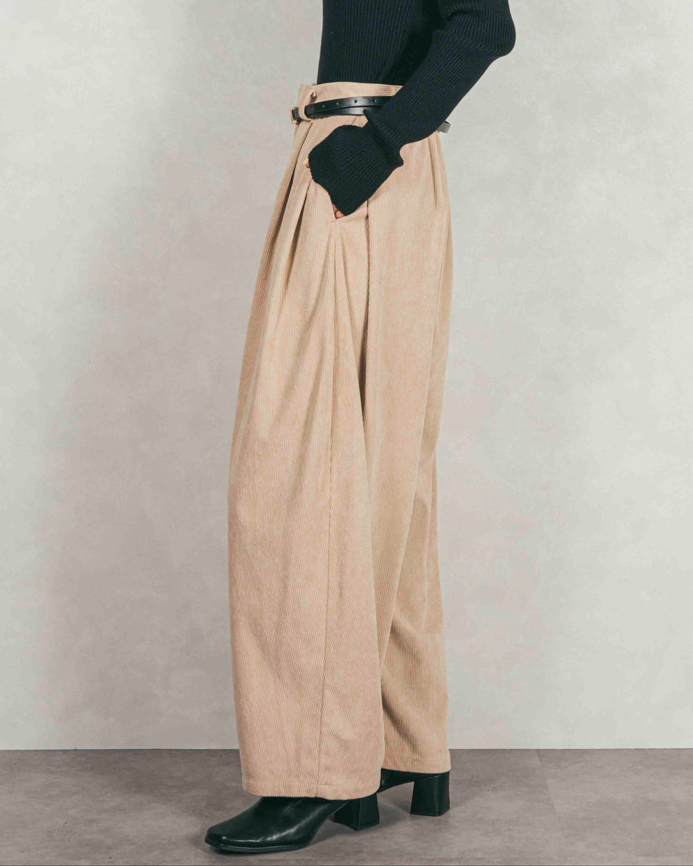 サイドタックコクーンコーデュロイパンツ(BEIGE)