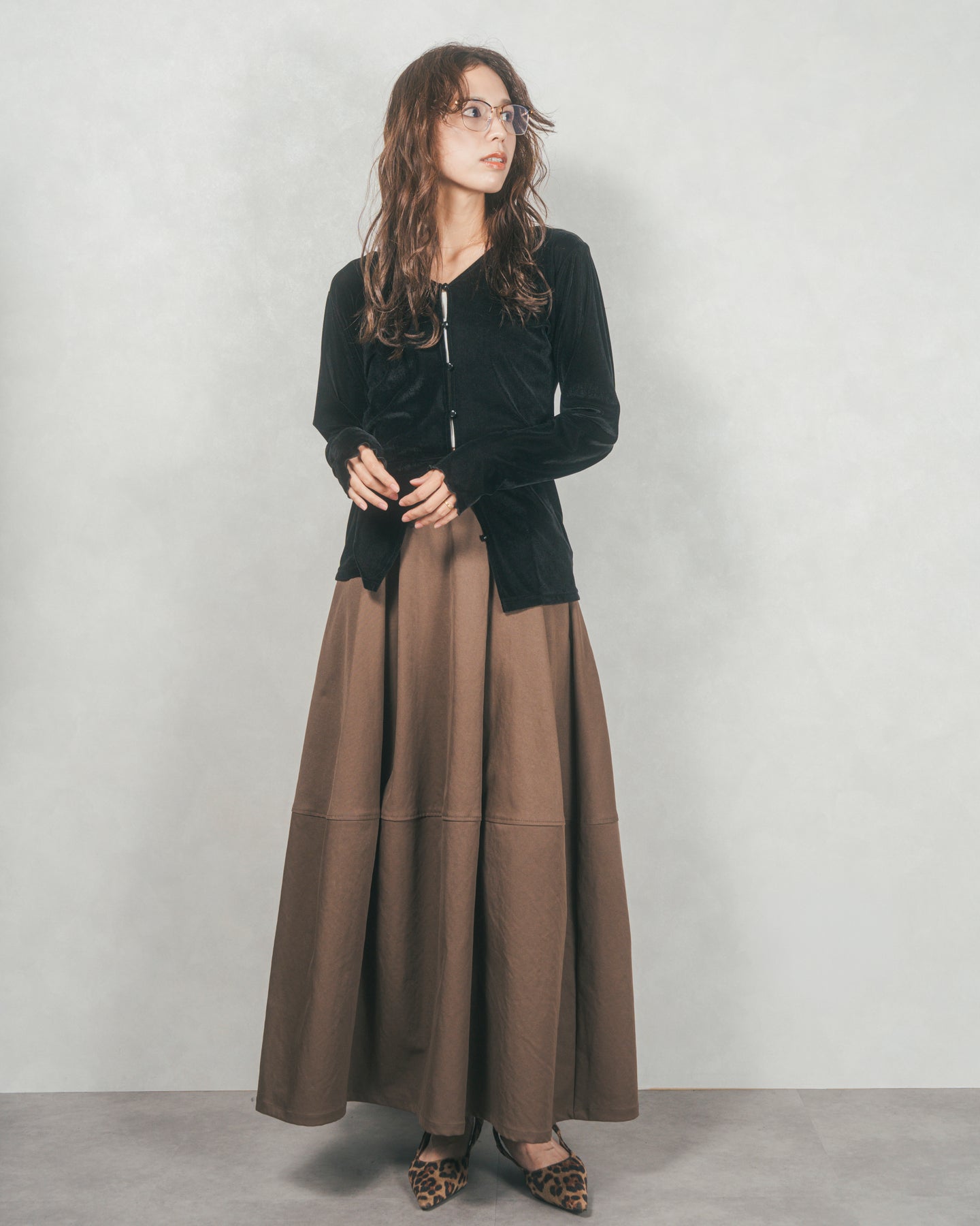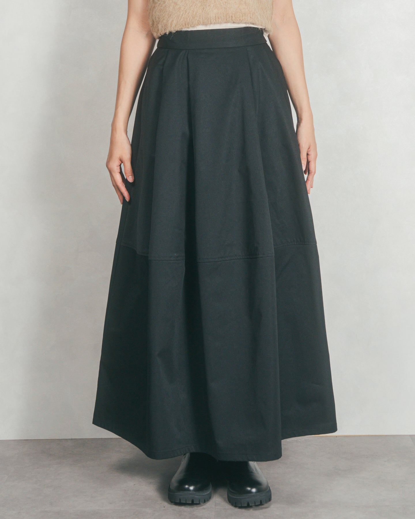 コクーンシルエットロングスカート (BLACK)