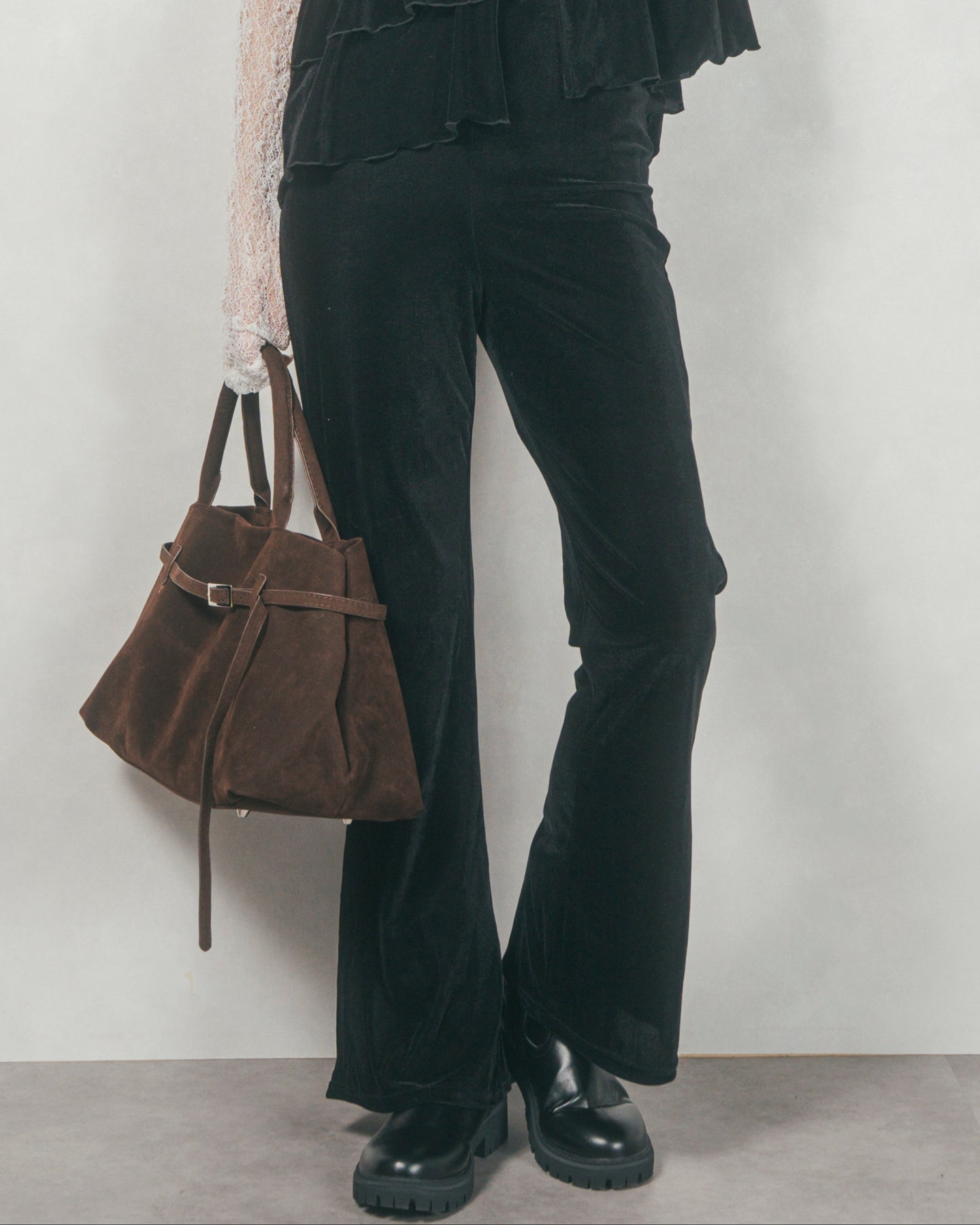 セミフレア ベロアパンツ (BLACK)