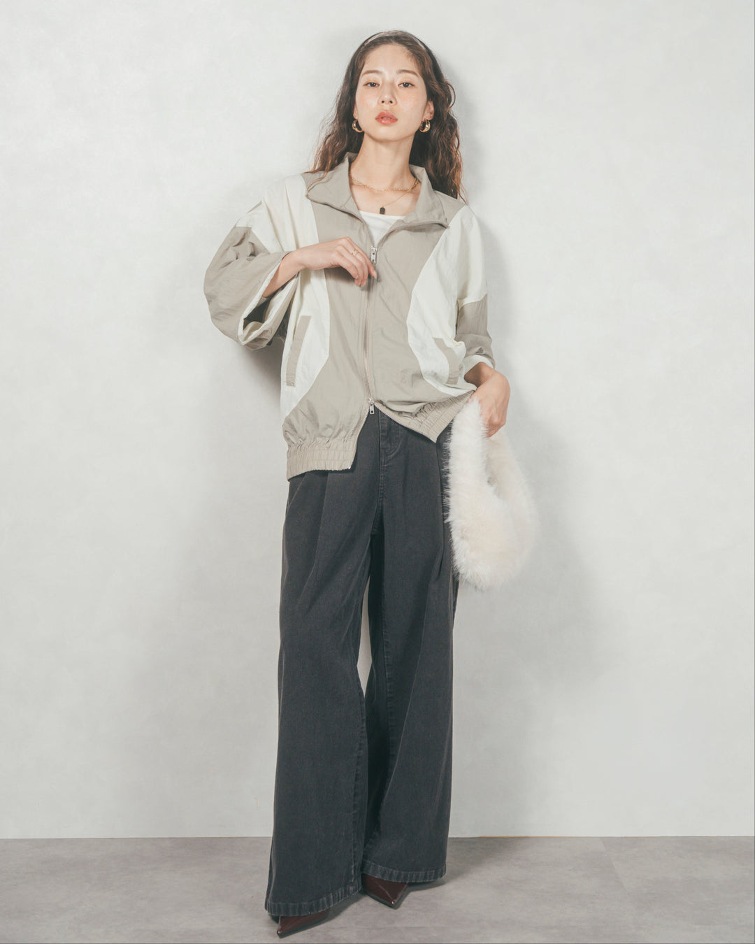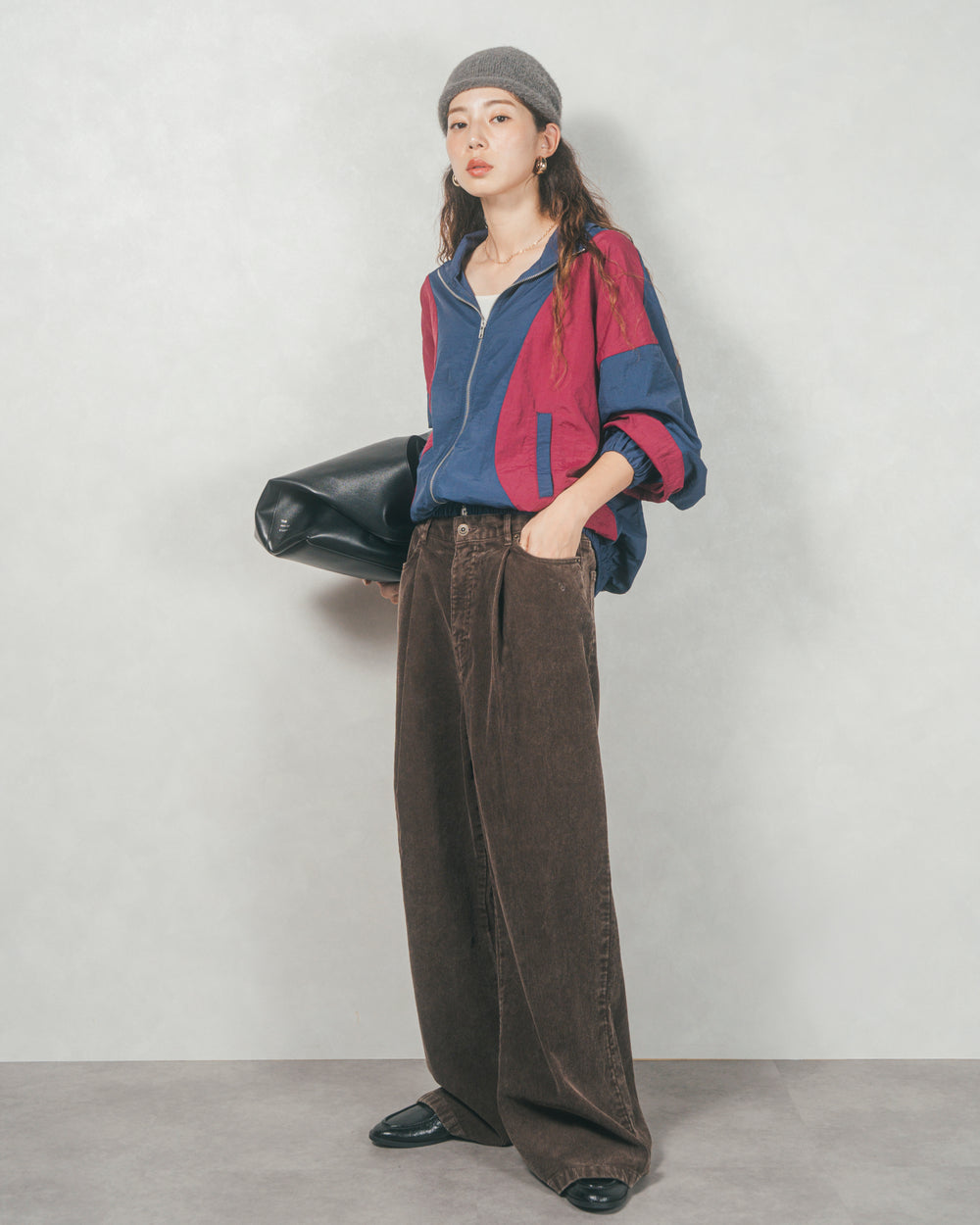 [SET]バイカラーオーバーサイズブルゾン+コーデュロイWideストレートパンツ(2SET)