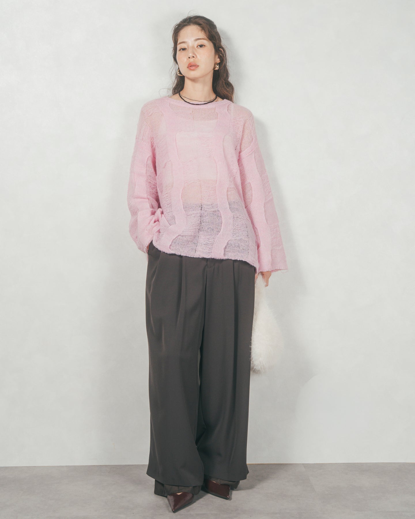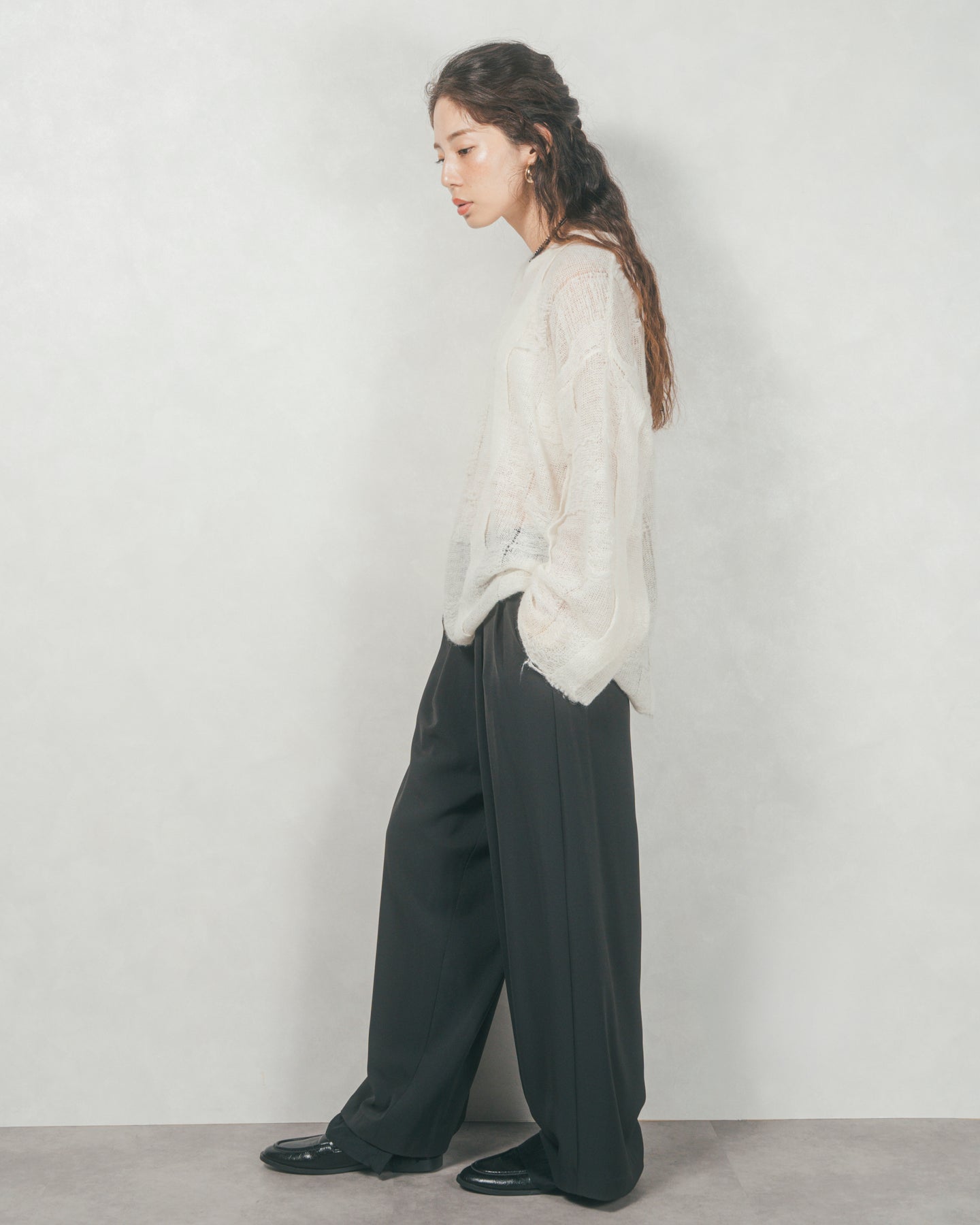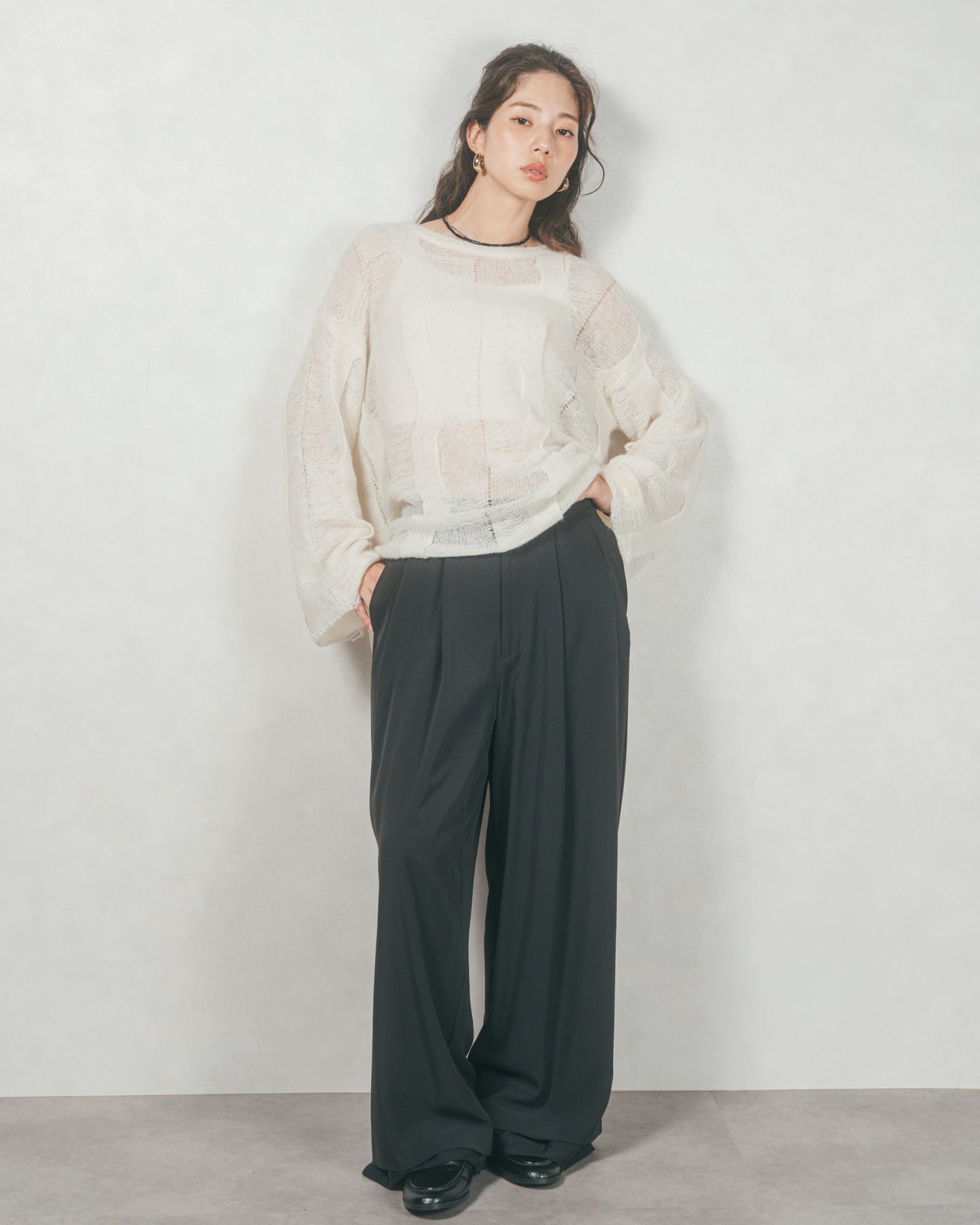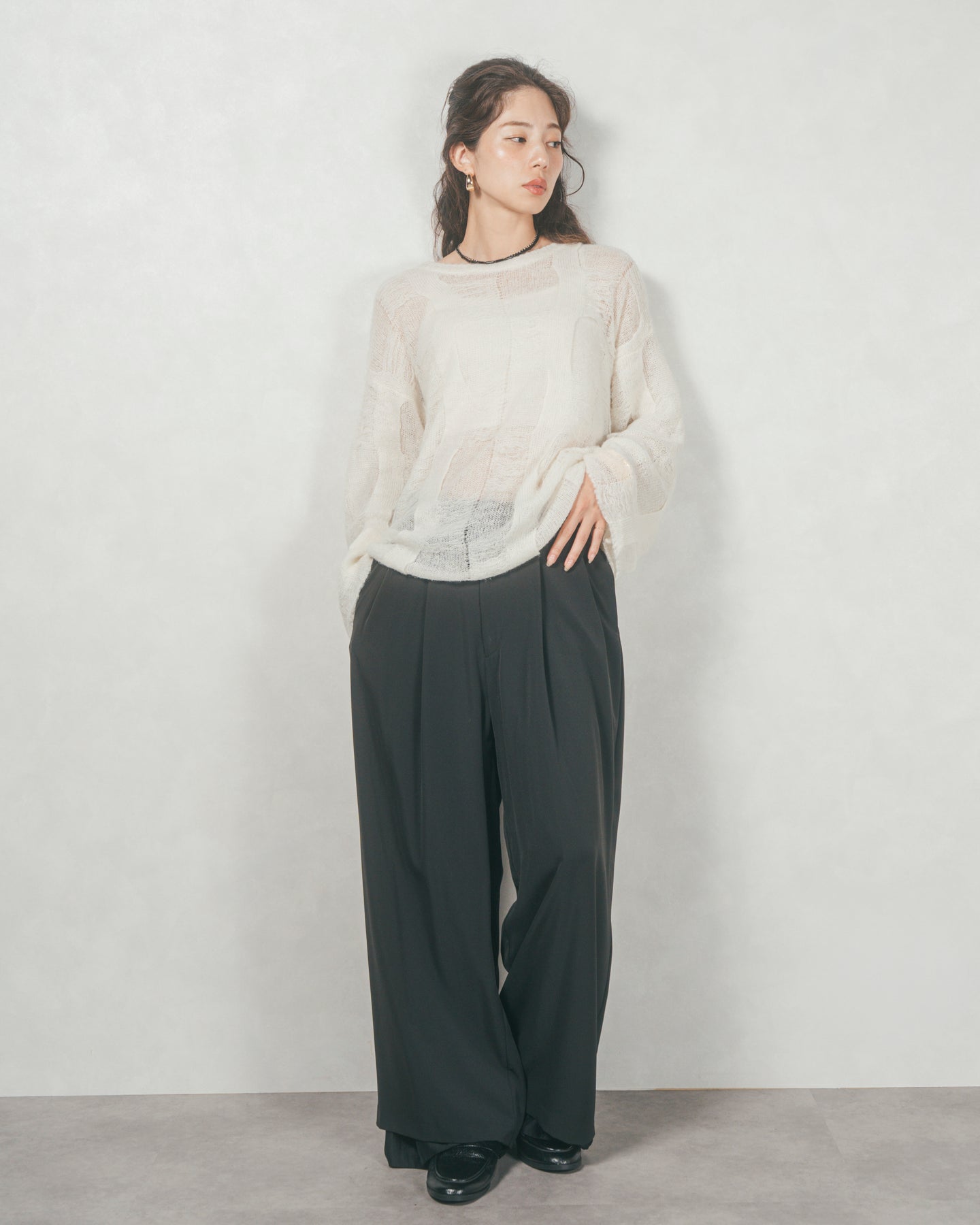 [SET]コージーオーバーサイズニット+裾シアーワイドストレートパンツ(2SET)
