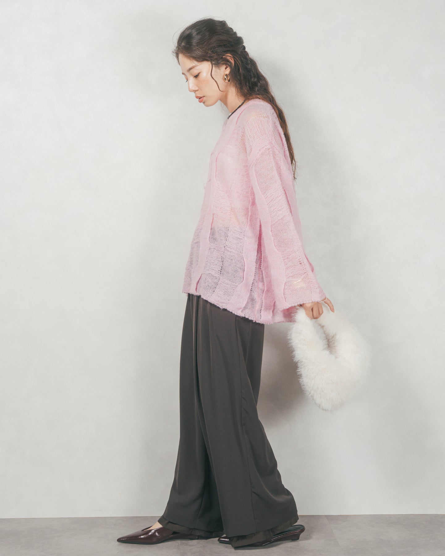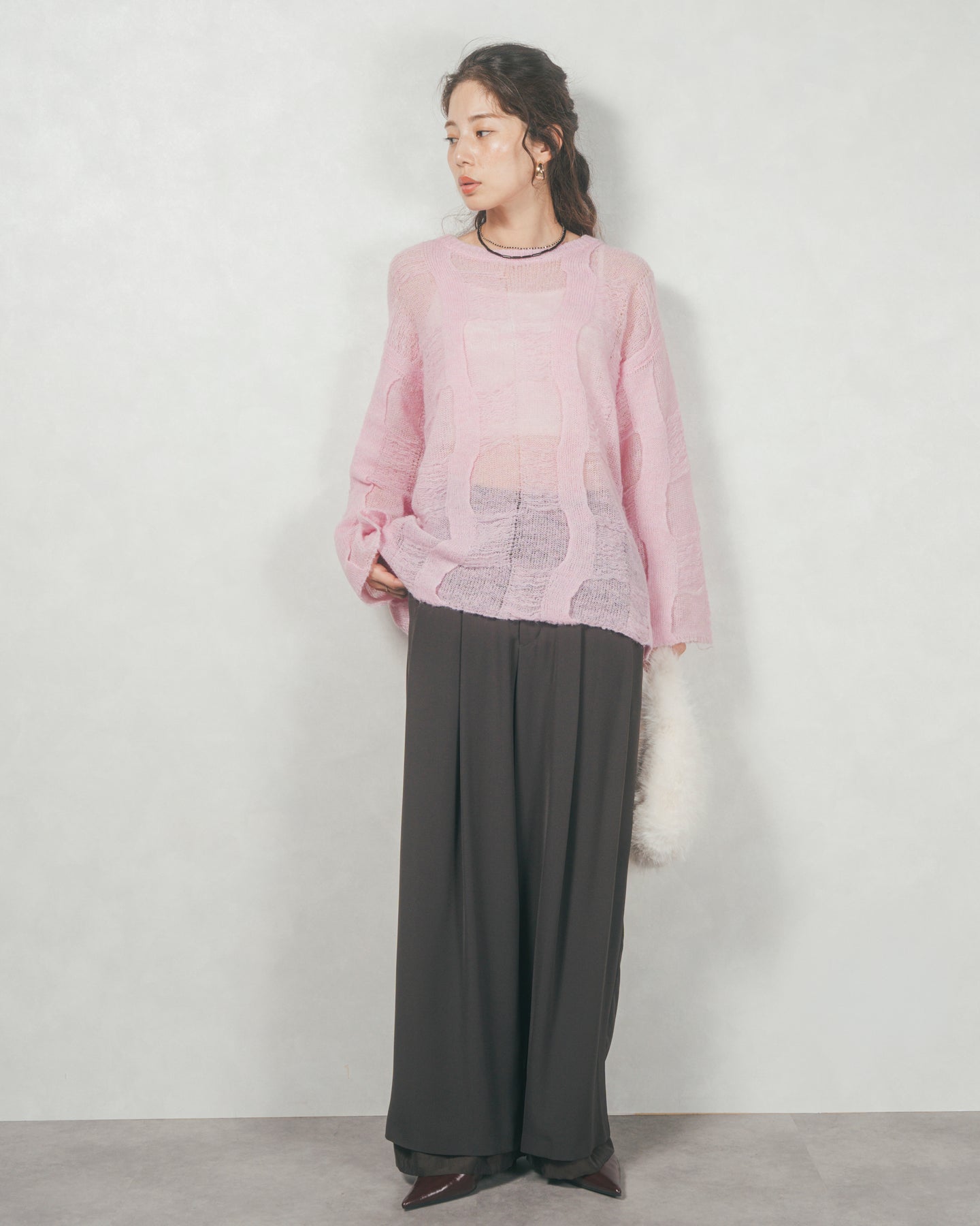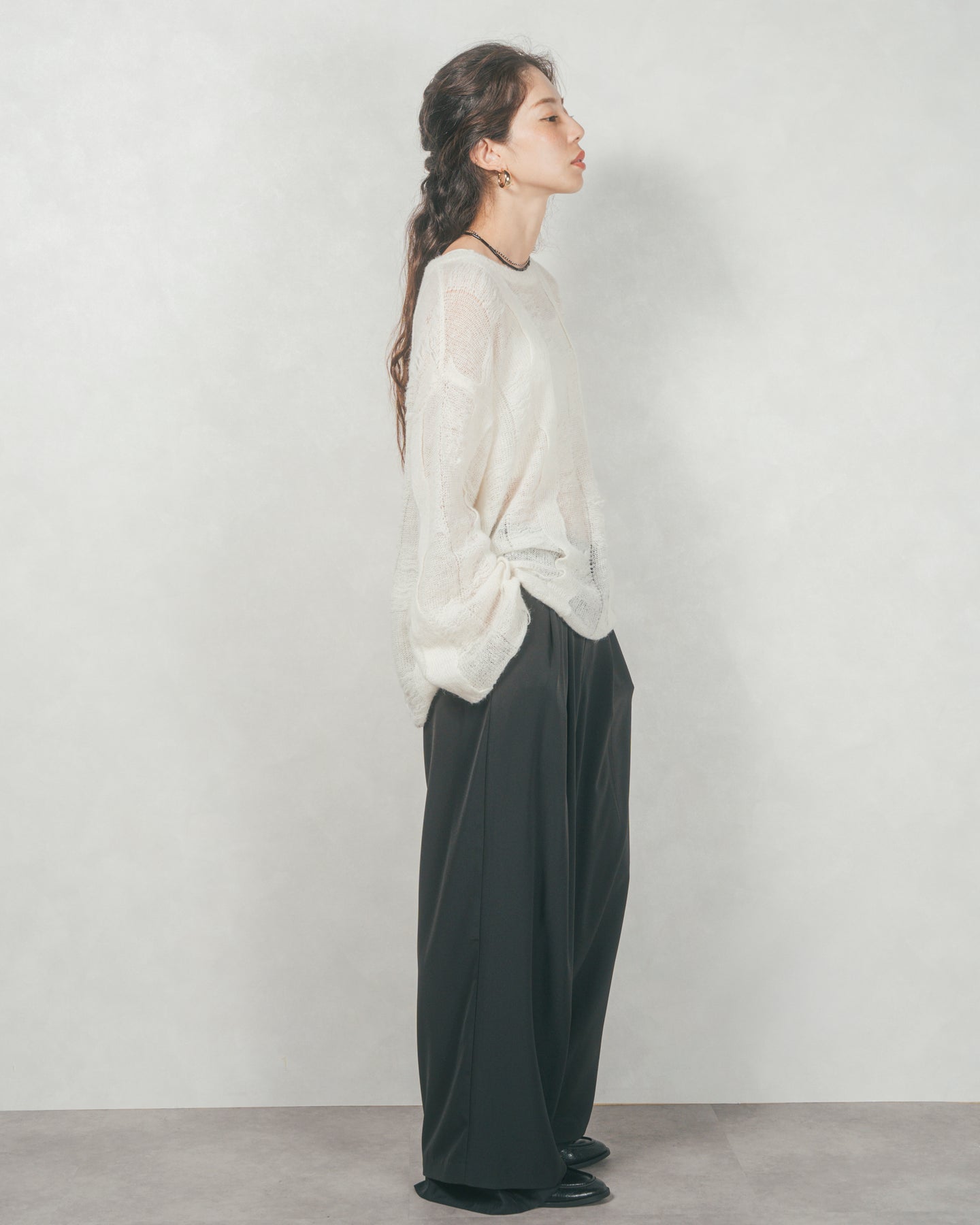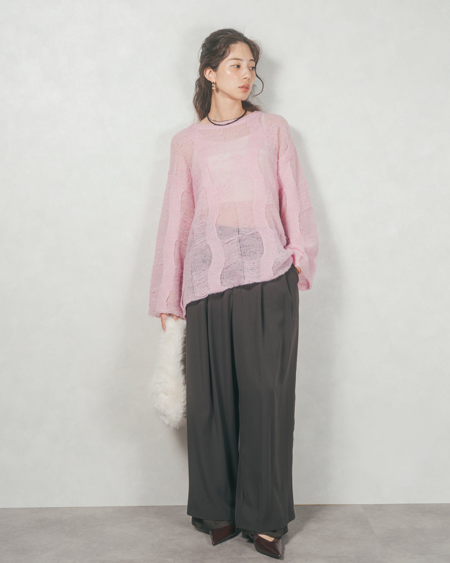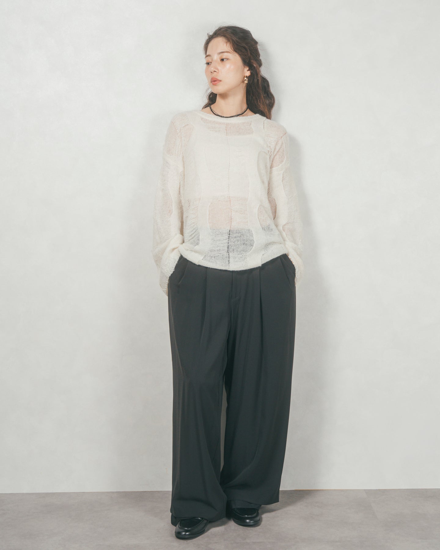 [SET]コージーオーバーサイズニット+裾シアーワイドストレートパンツ(2SET)
