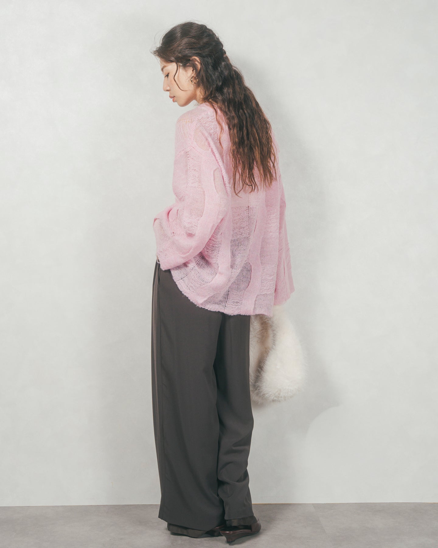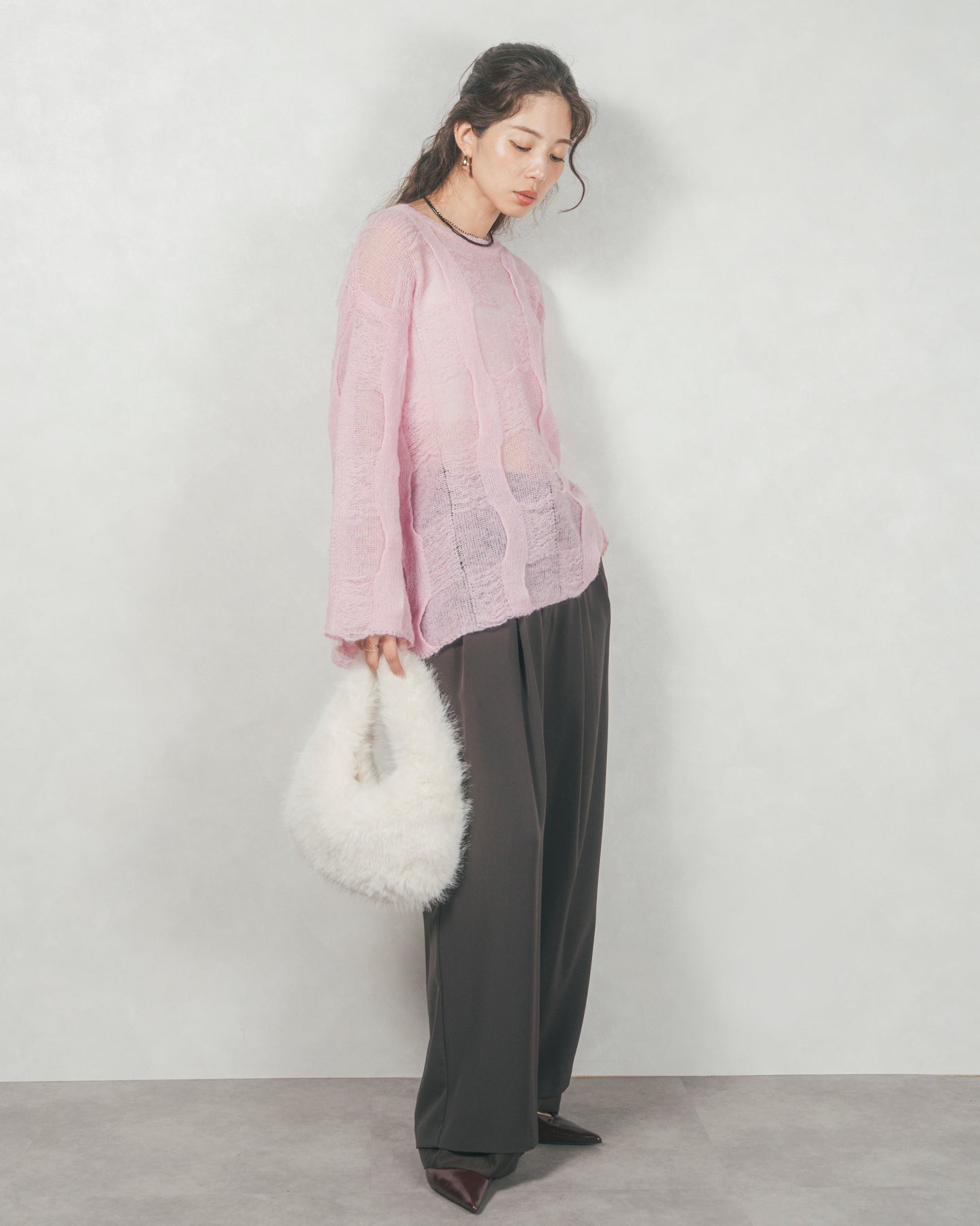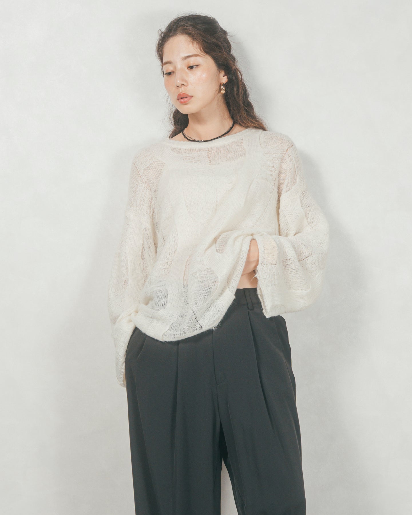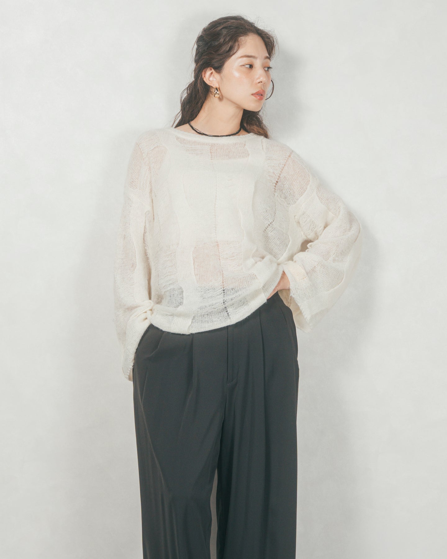 [SET]コージーオーバーサイズニット+裾シアーワイドストレートパンツ(2SET)