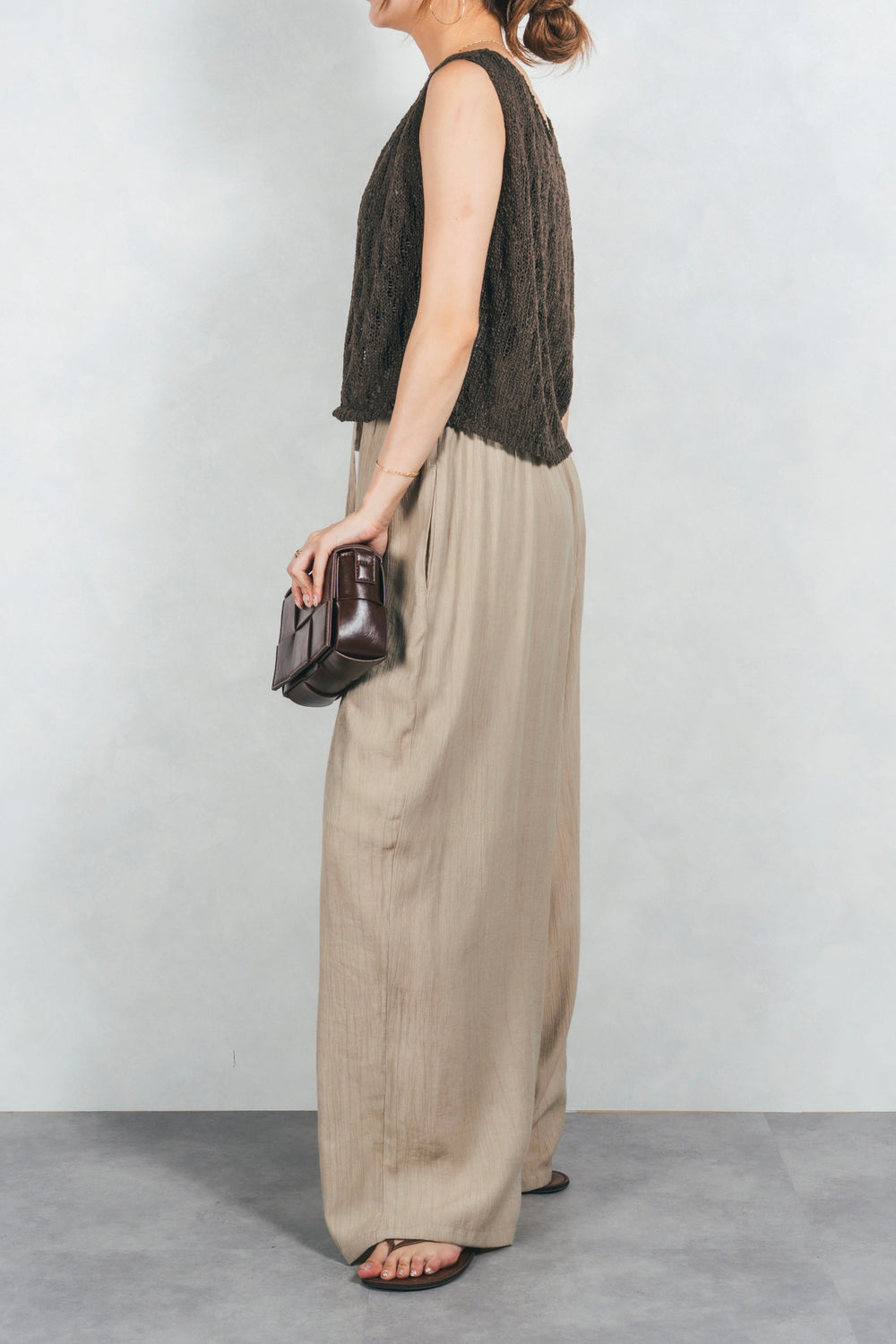 [SET]透かし編みクロップドニットベスト+ワッシャーポプリンイージーパンツ(2SET)