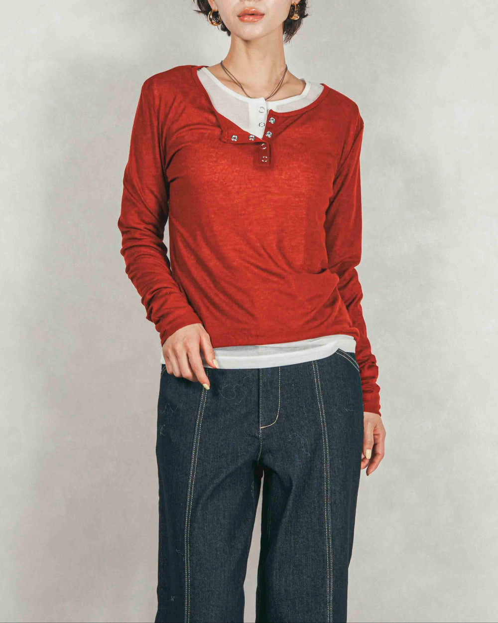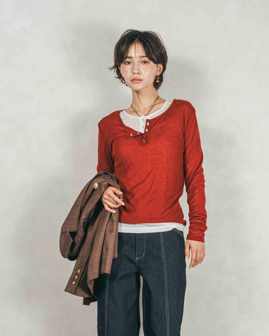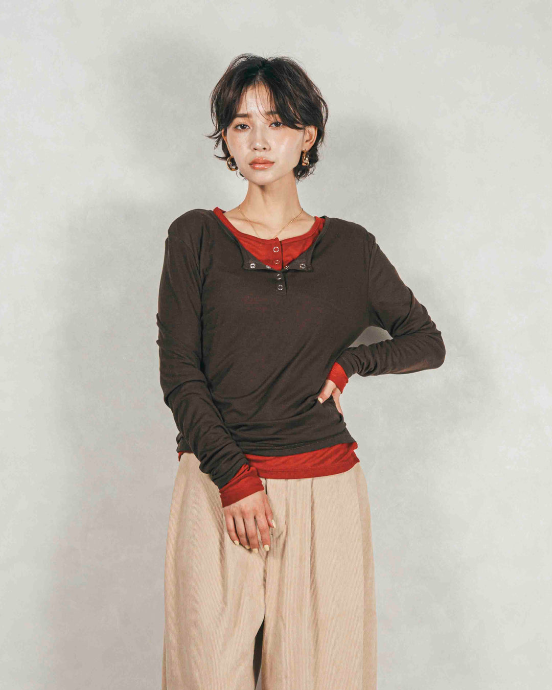 Smoothニットソー Vネックプルオーバー (BROWN)