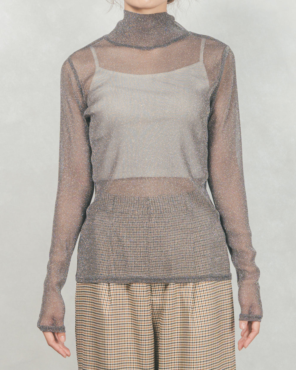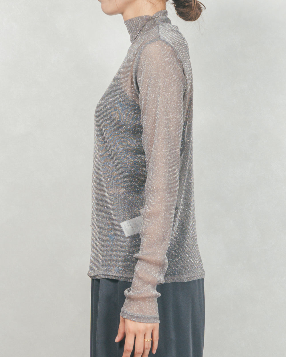 ラメSheerハイネックトップス (YELLOW GREEN)