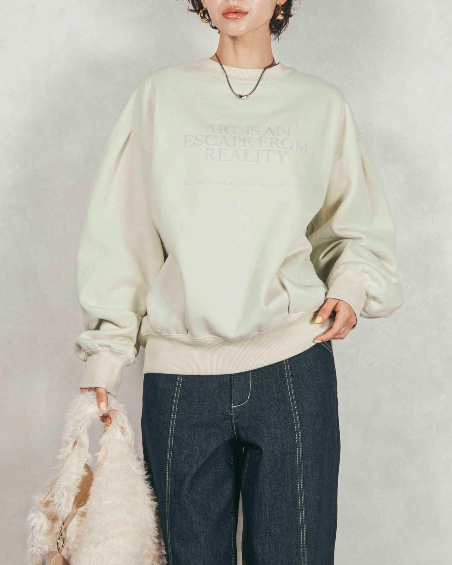シンプルながらも存在感がある、立体的なフロッキー加工のロゴがアクセント。ゆったりめでラフに着られますが、裾や袖のリブがほどよくシルエット引き締めます。