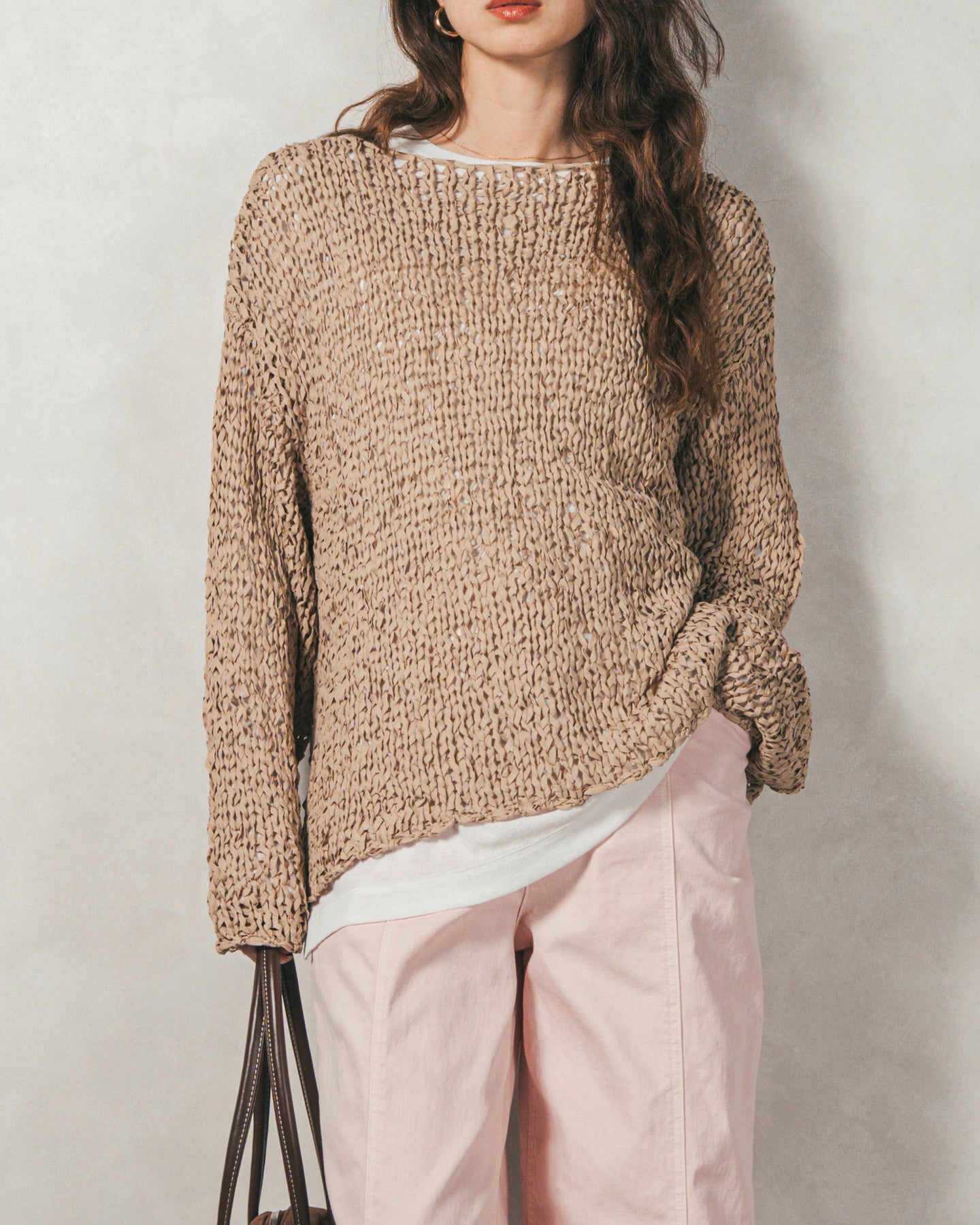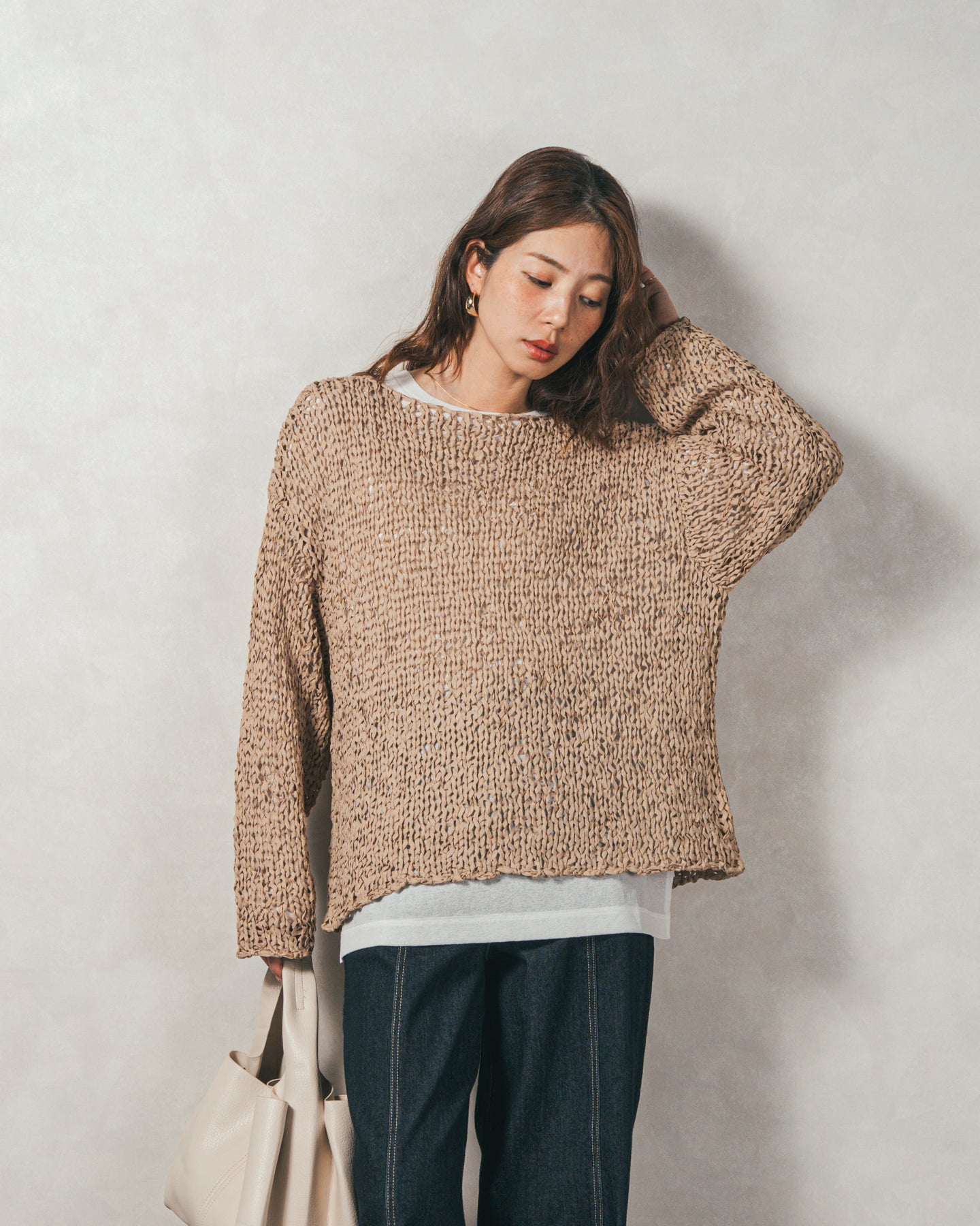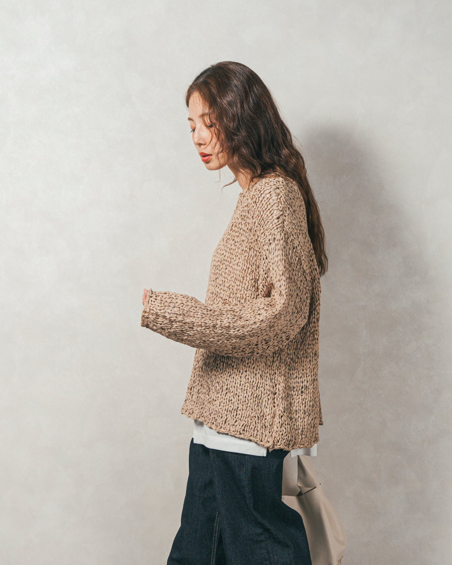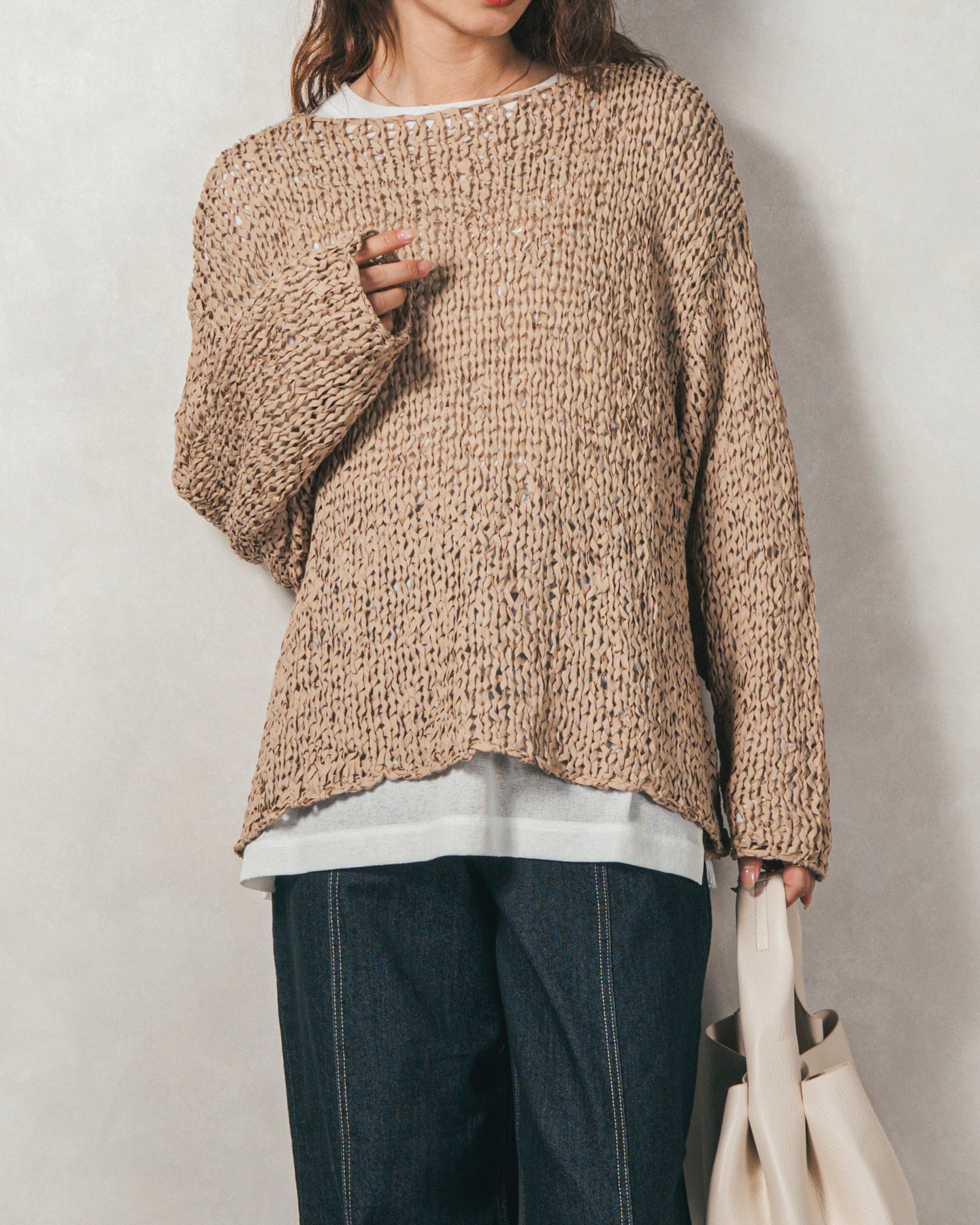 ペーパーヤーンのライトな素材感。レイヤードが楽しくなる、抜け感ニット