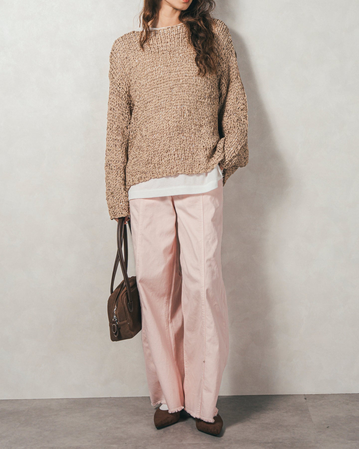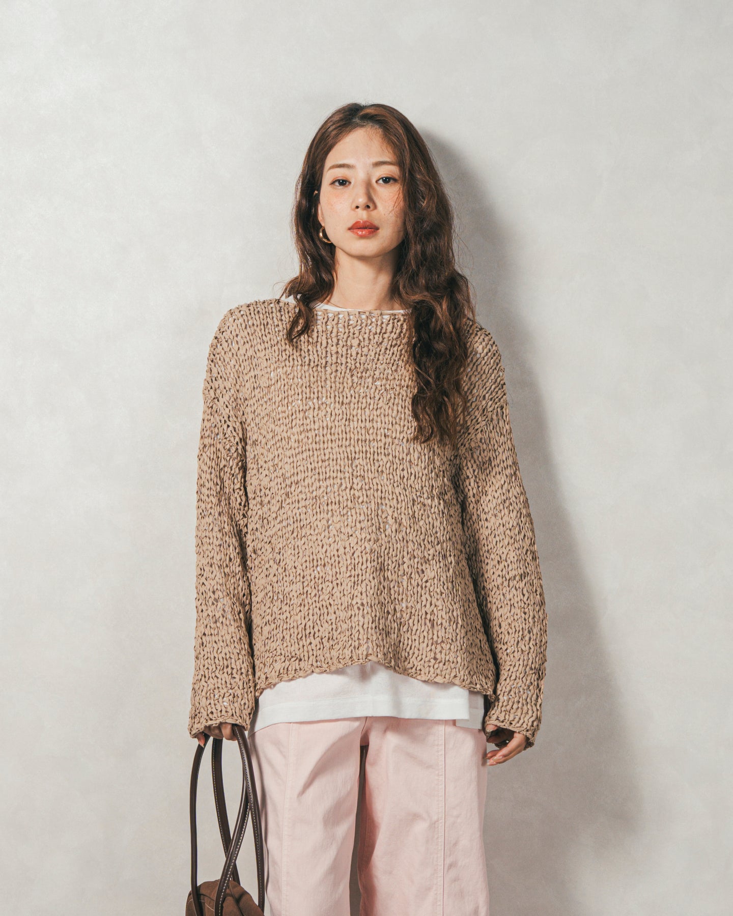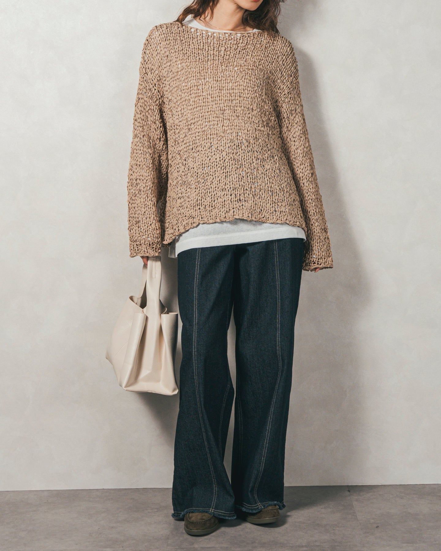ペーパーヤーンのライトな素材感。レイヤードが楽しくなる、抜け感ニット