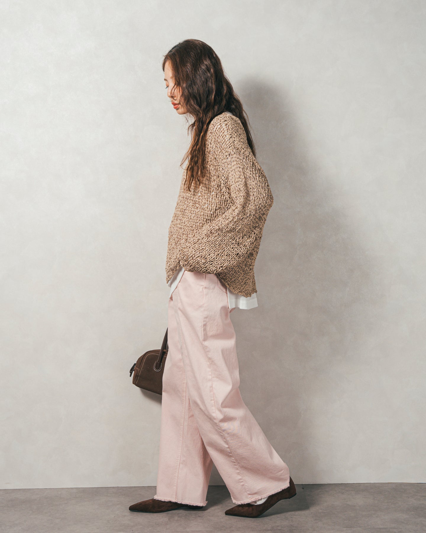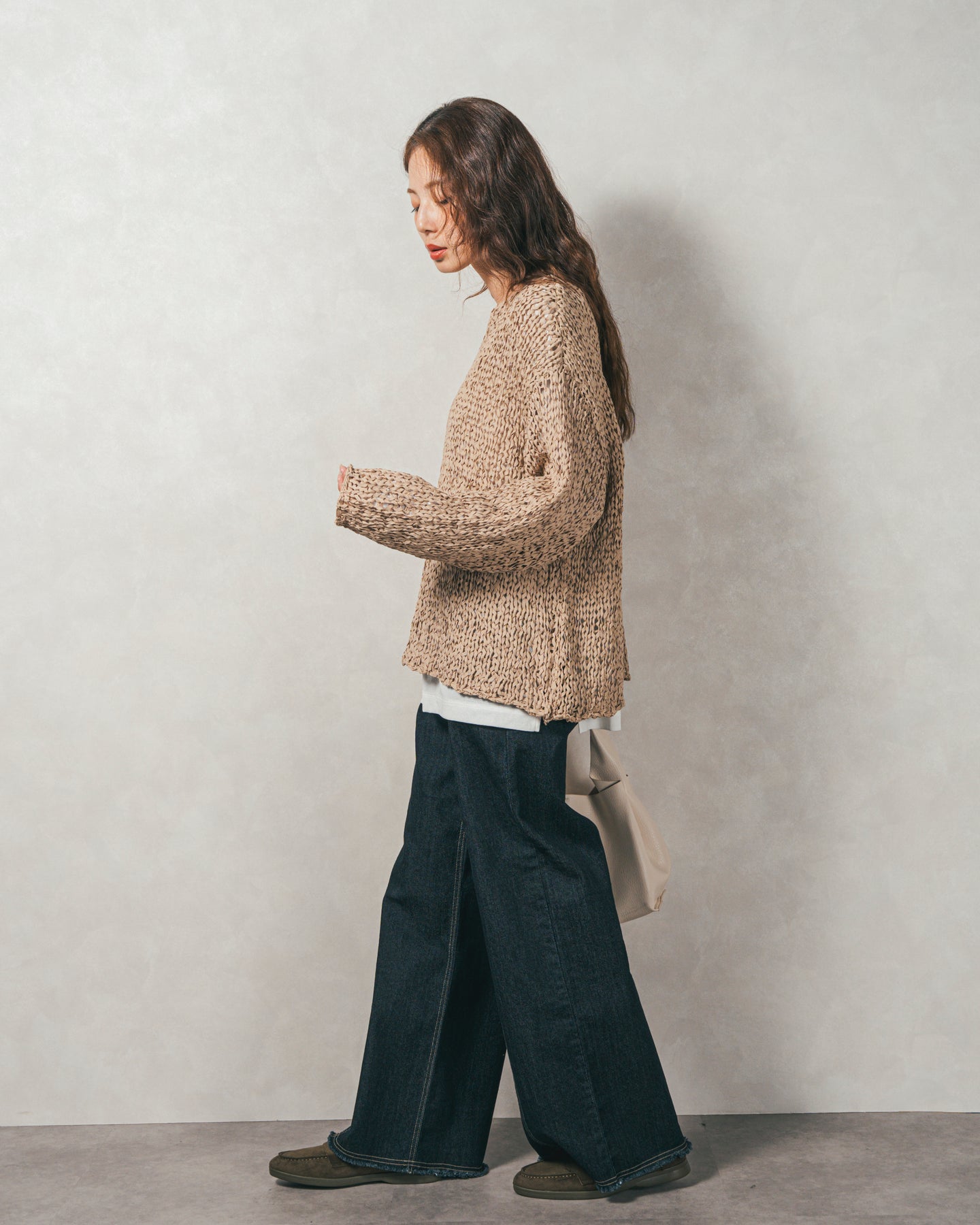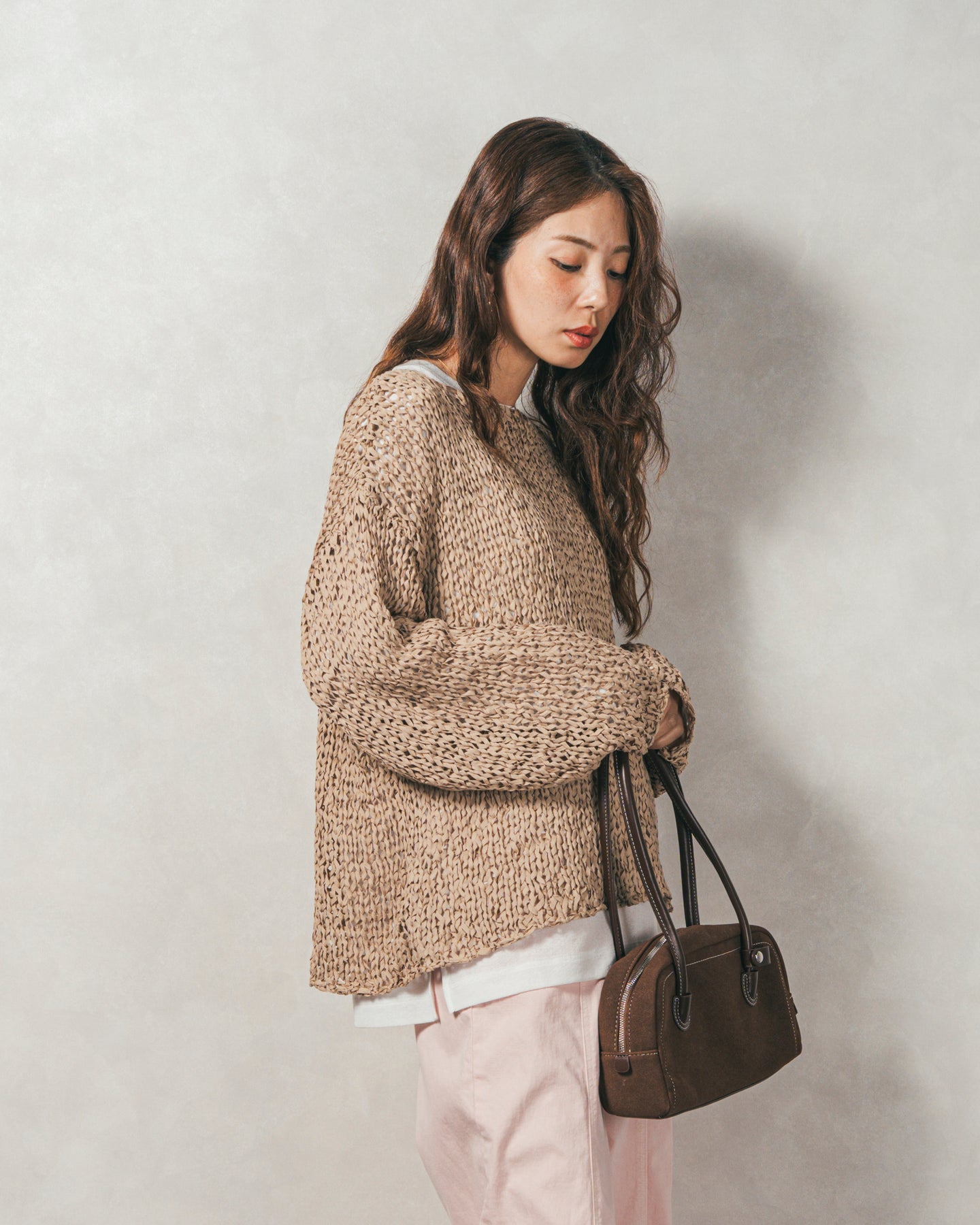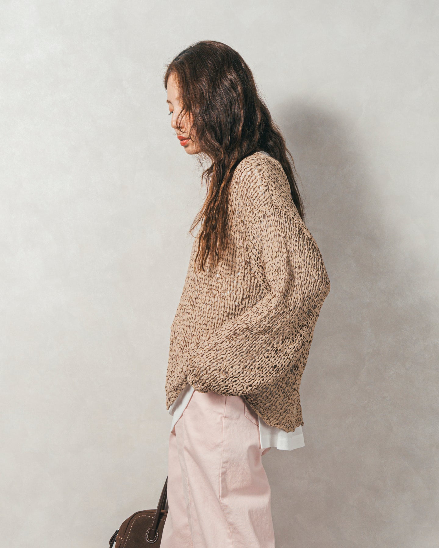 ペーパーヤーンのライトな素材感。レイヤードが楽しくなる、抜け感ニット
