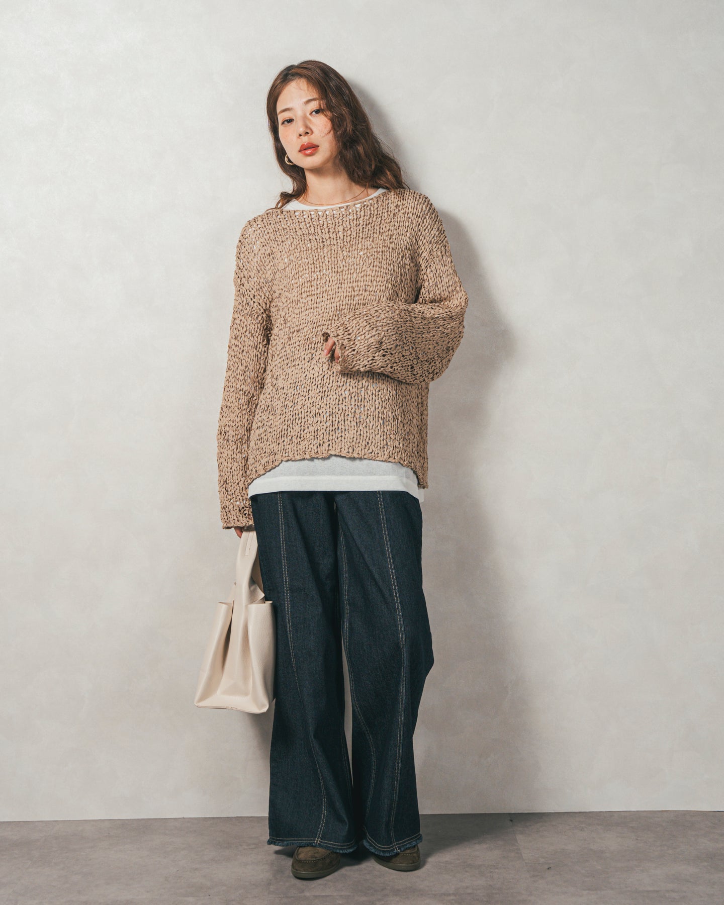 [SET]エアリールーズオーバーニット+センターシーム リラックスカラーデニム