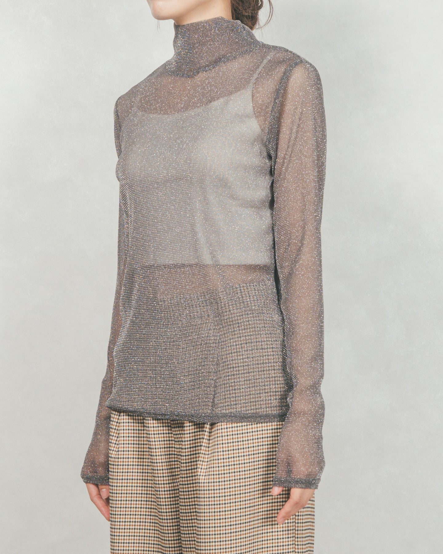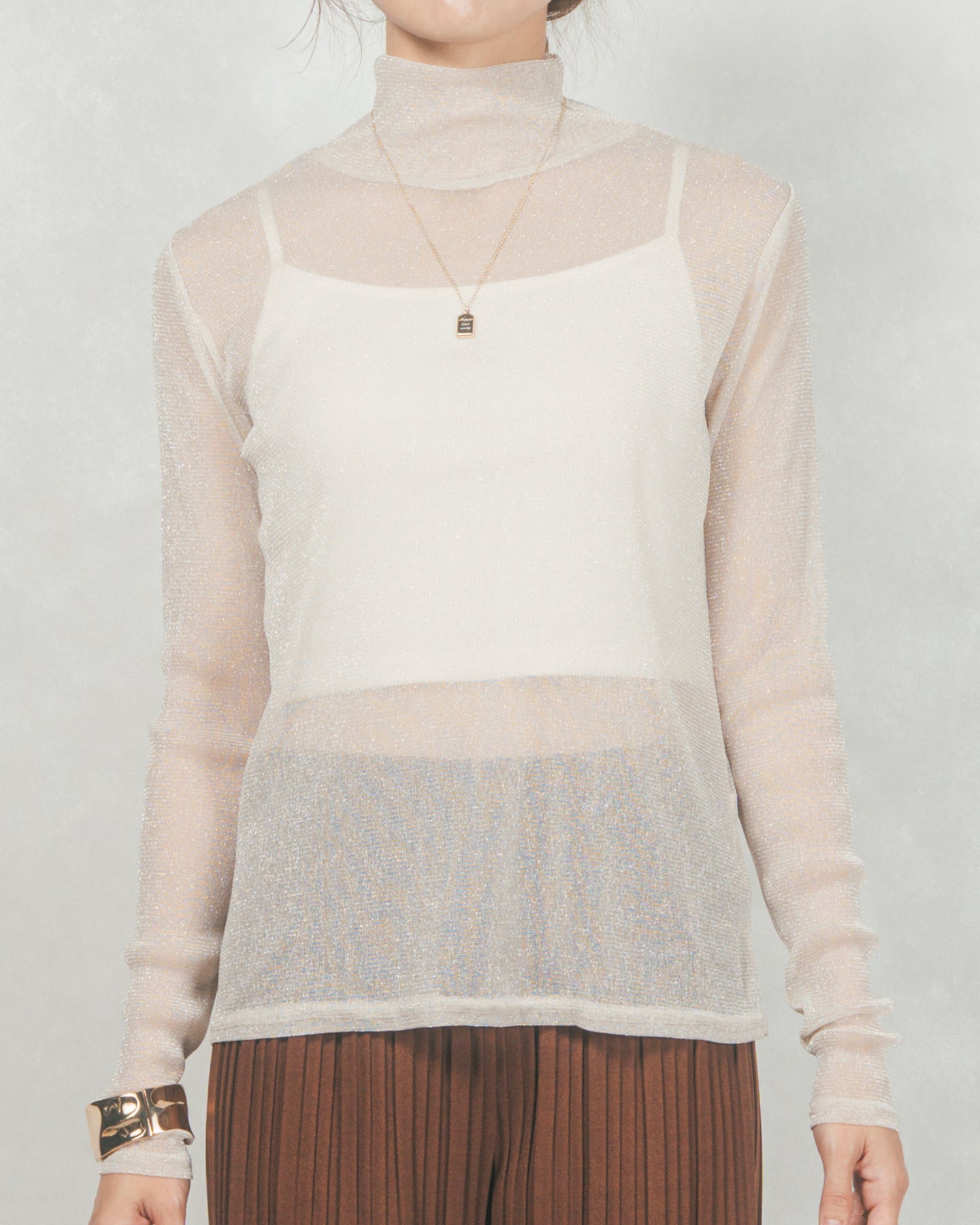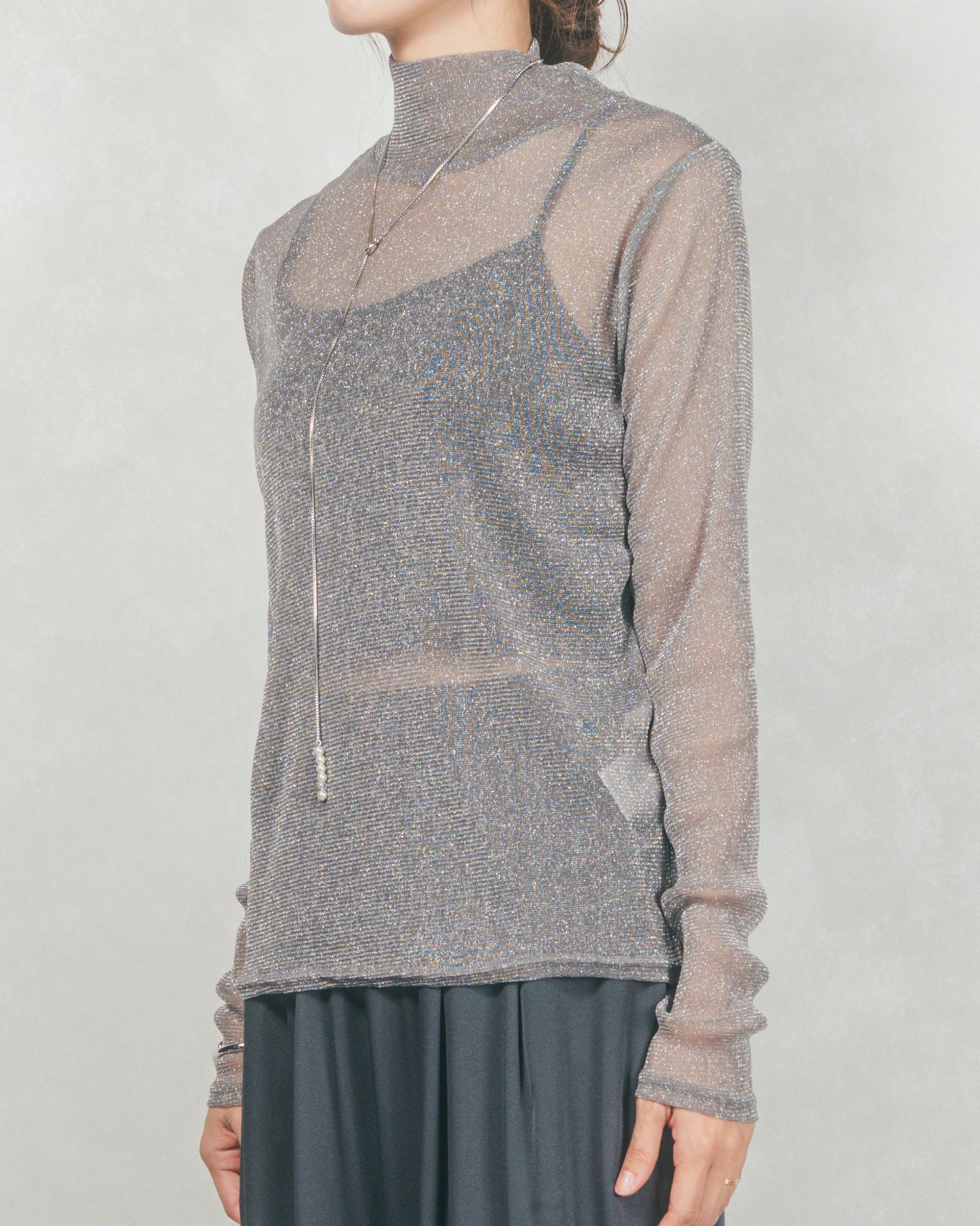 ・ラメSheerハイネックトップス