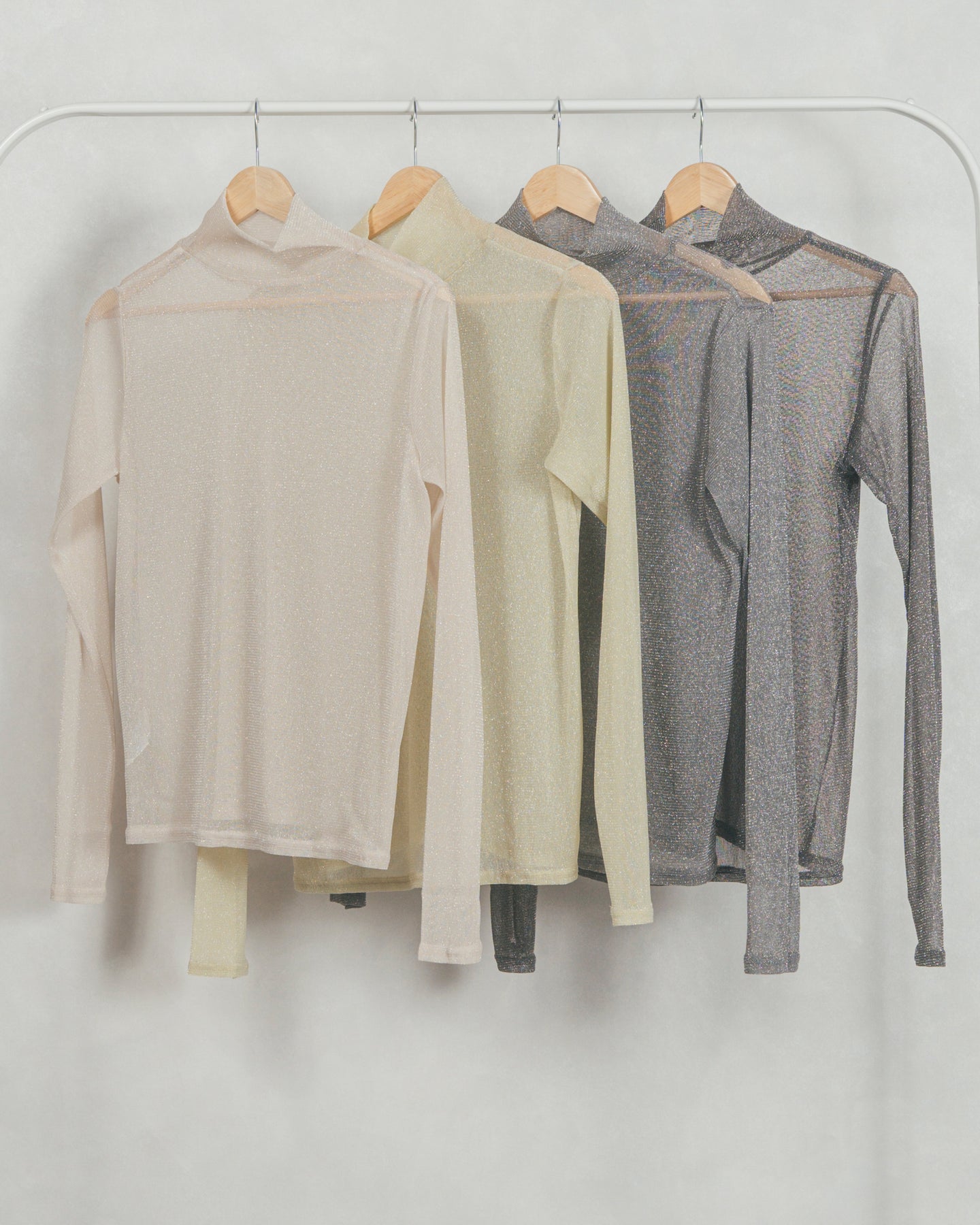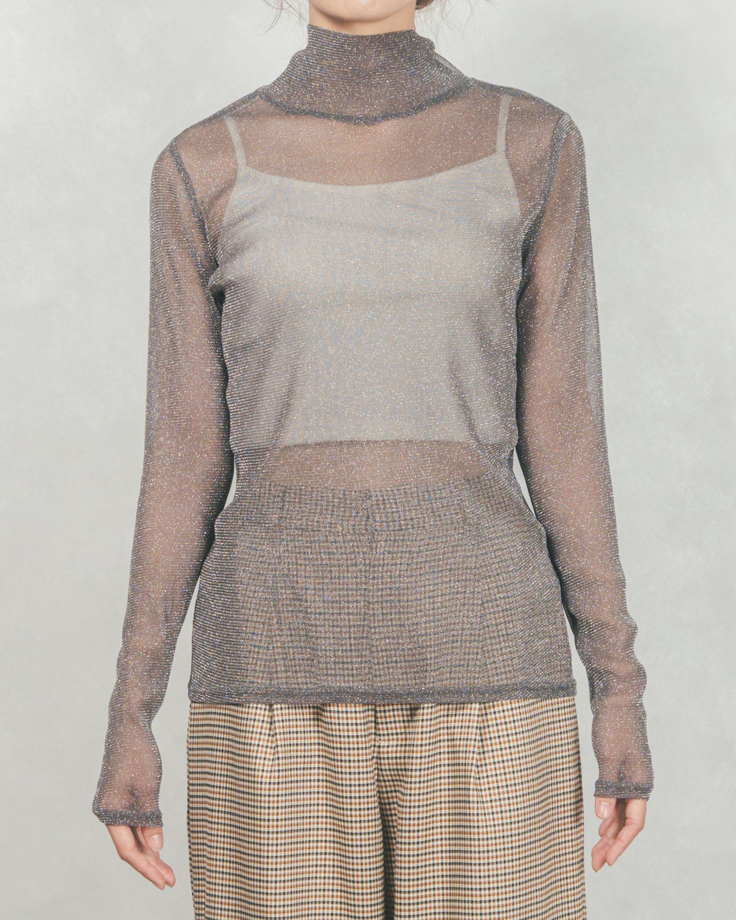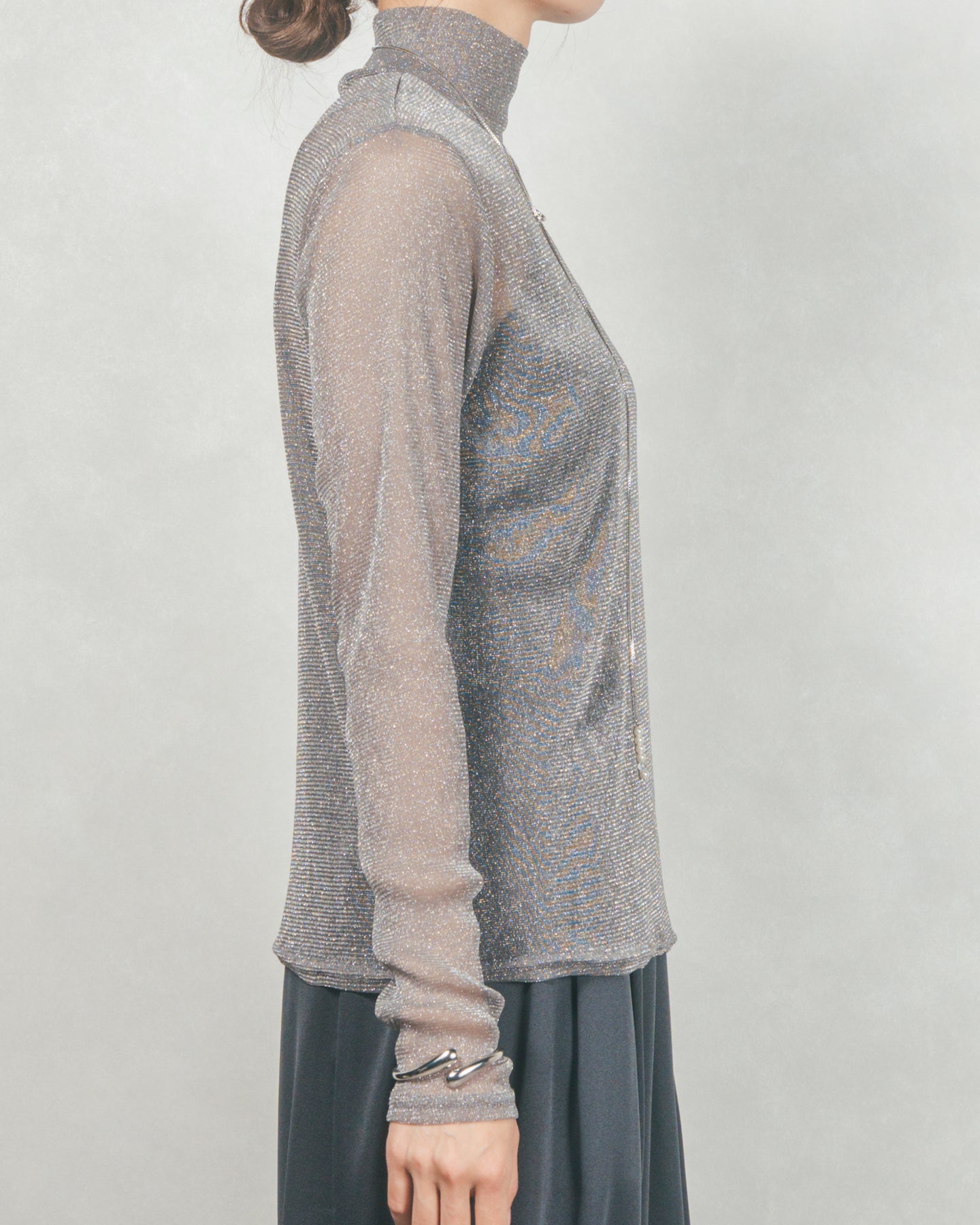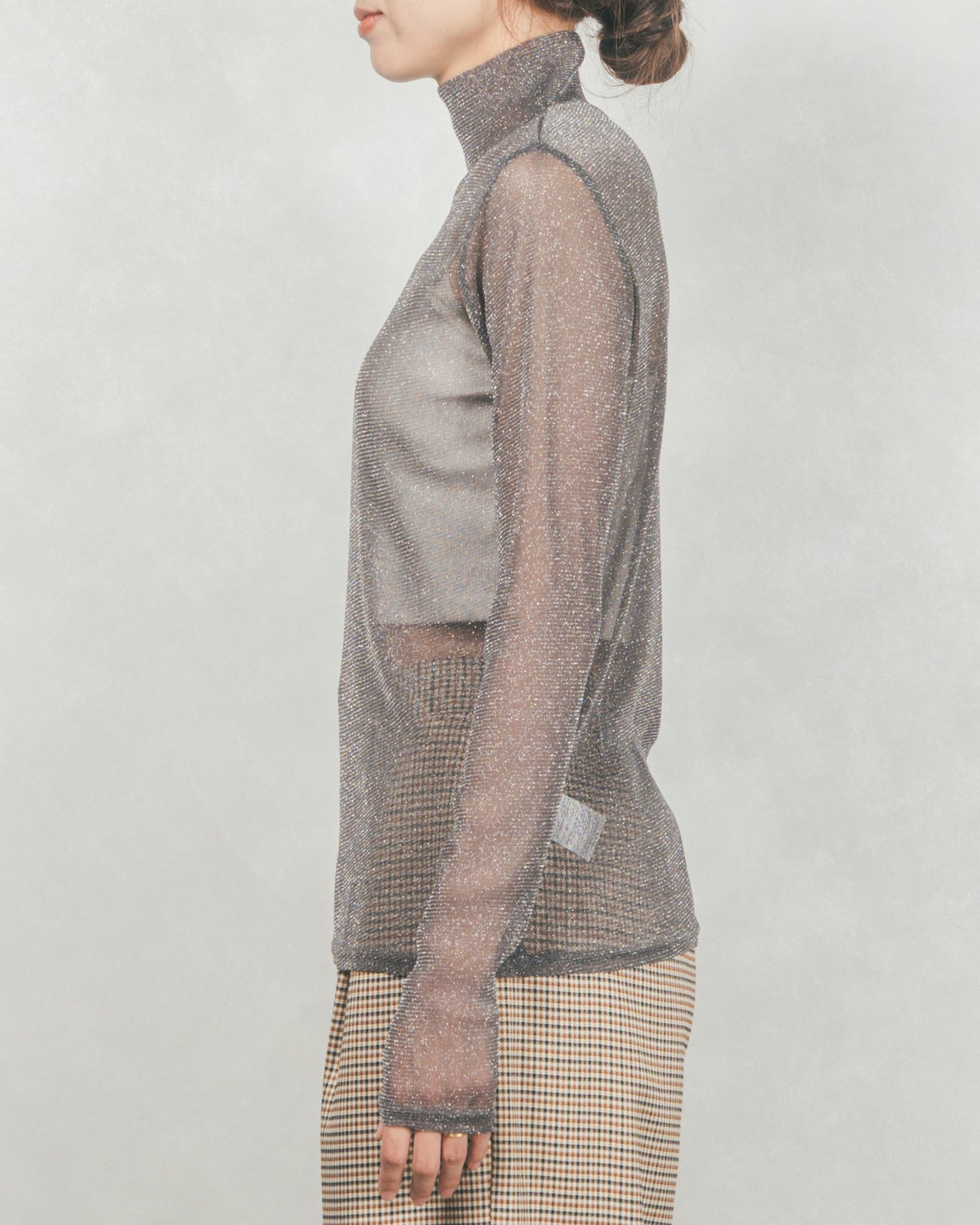 ・ラメSheerハイネックトップス