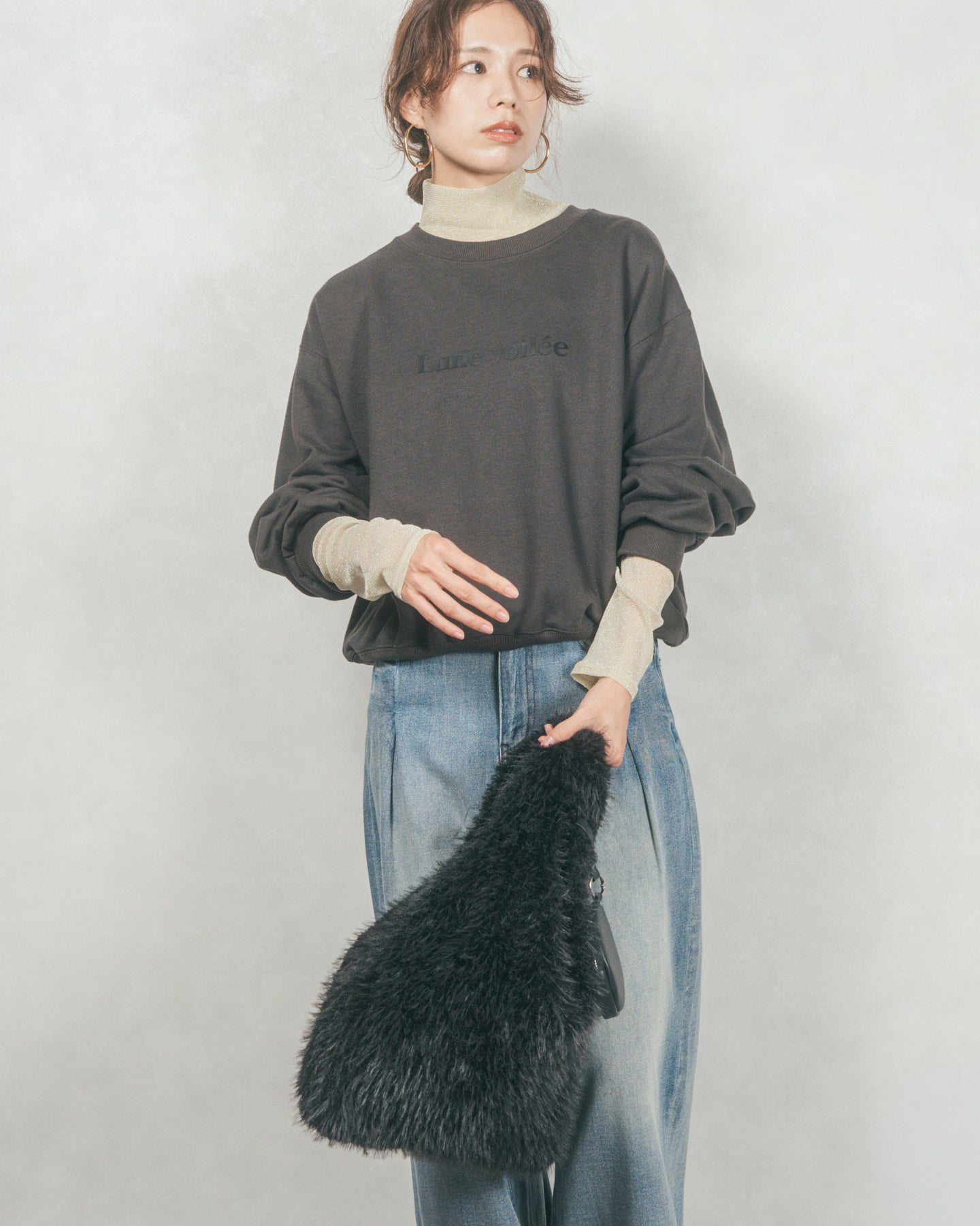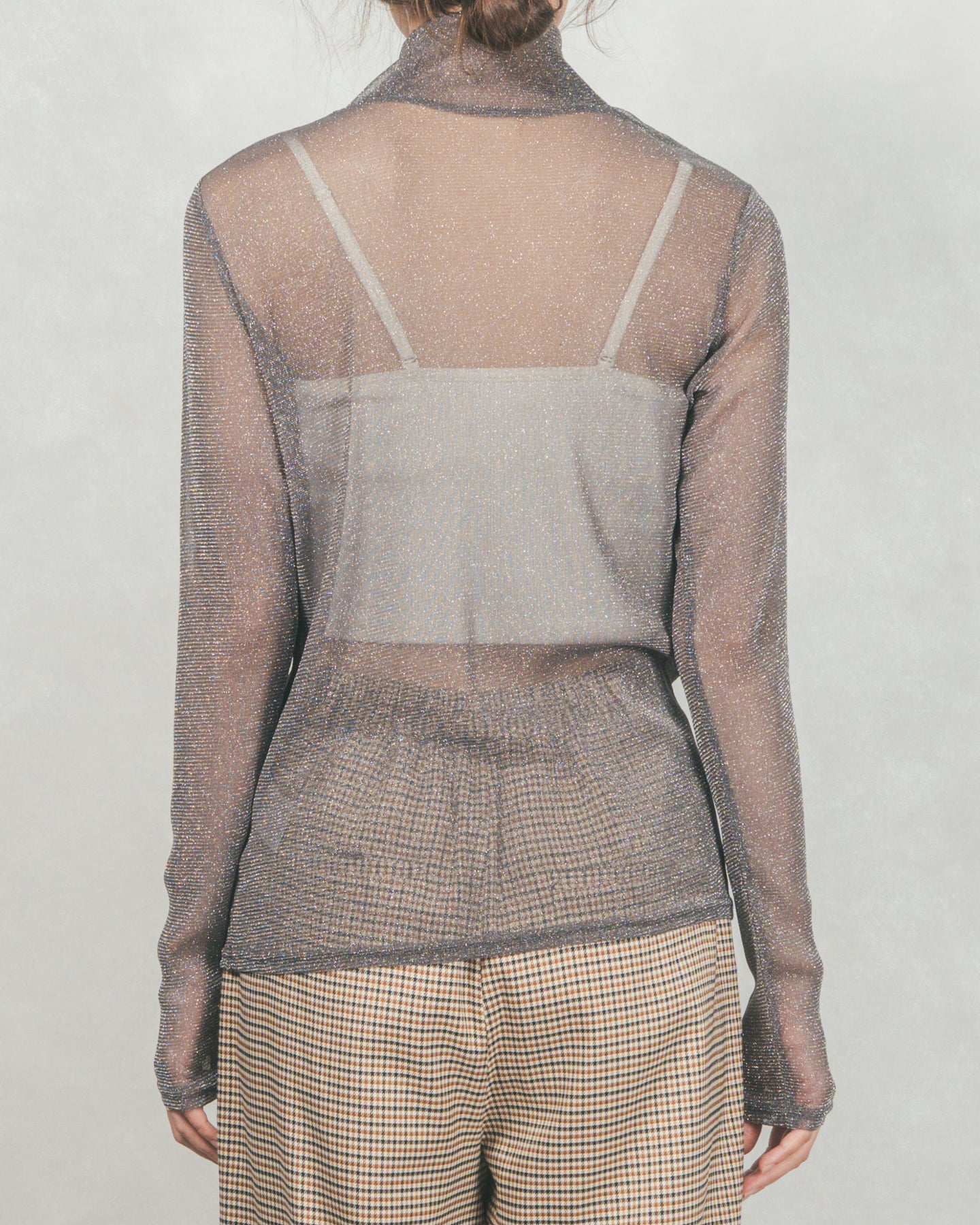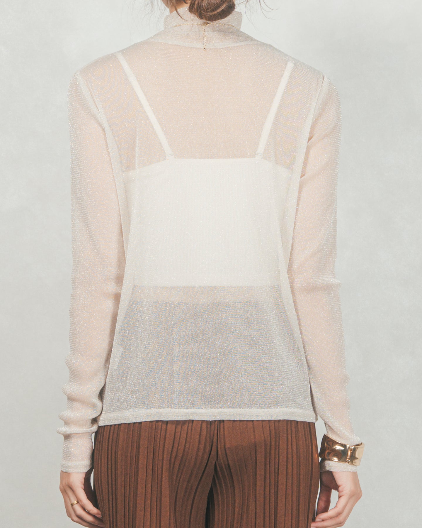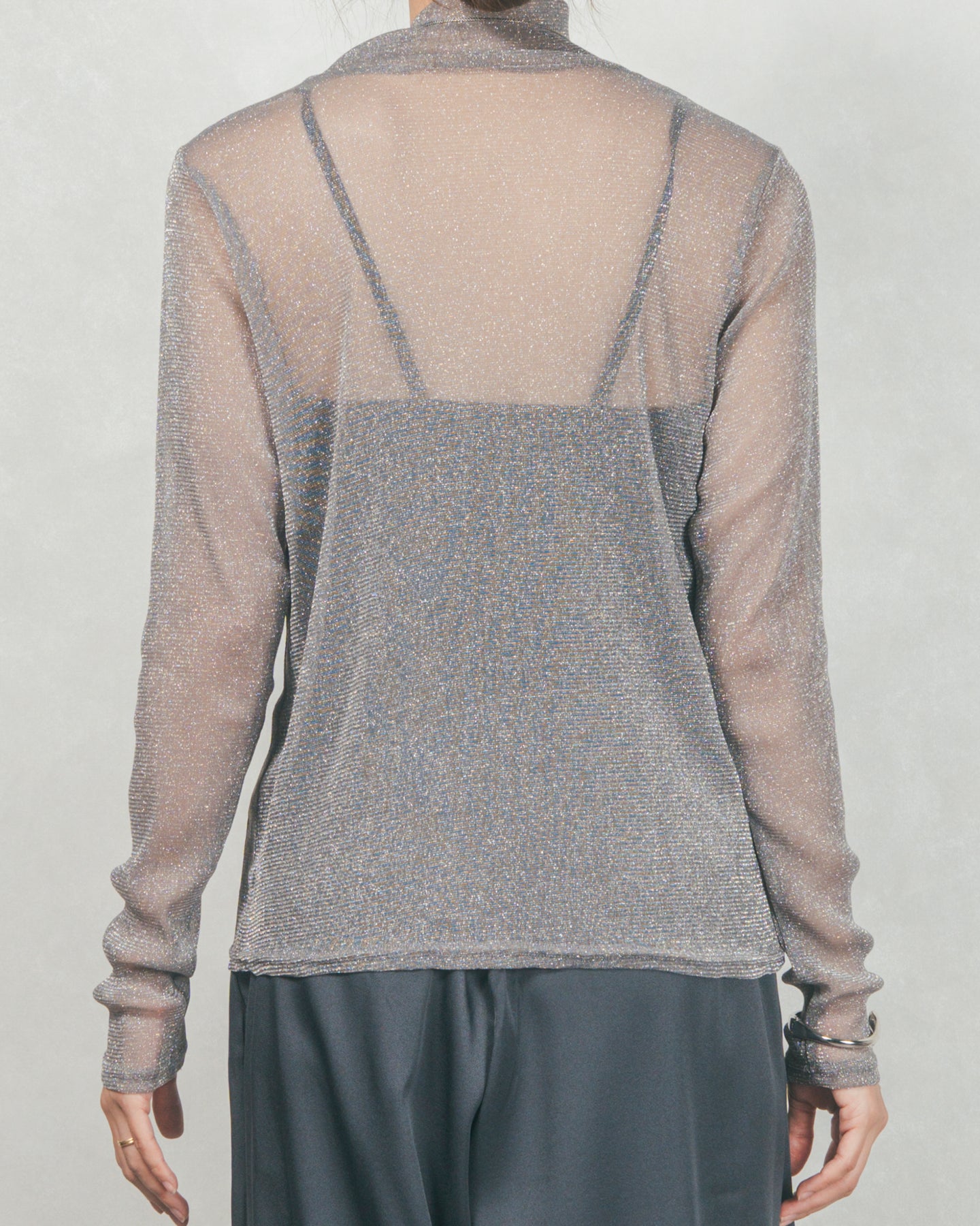 万能なレイヤードアイテムとして大活躍。スウェットやニット、カーディガンなどの下に忍ばせて首元と袖口からラメを覗かせるのが今季のトレンド。ビスチェやジャンスカ合わせなどにも相性抜群。