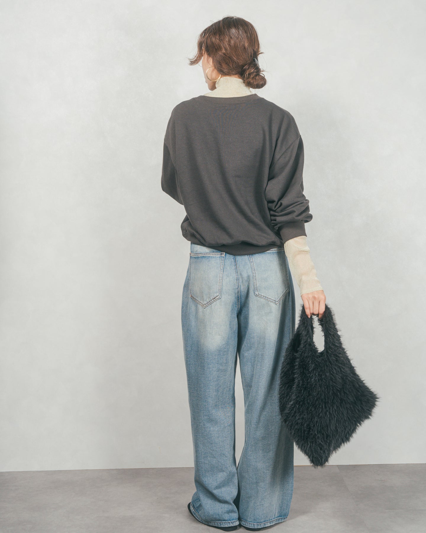(トップス)スウェットGRAY×インナーCHARCOAL(ボトム)BLEACH