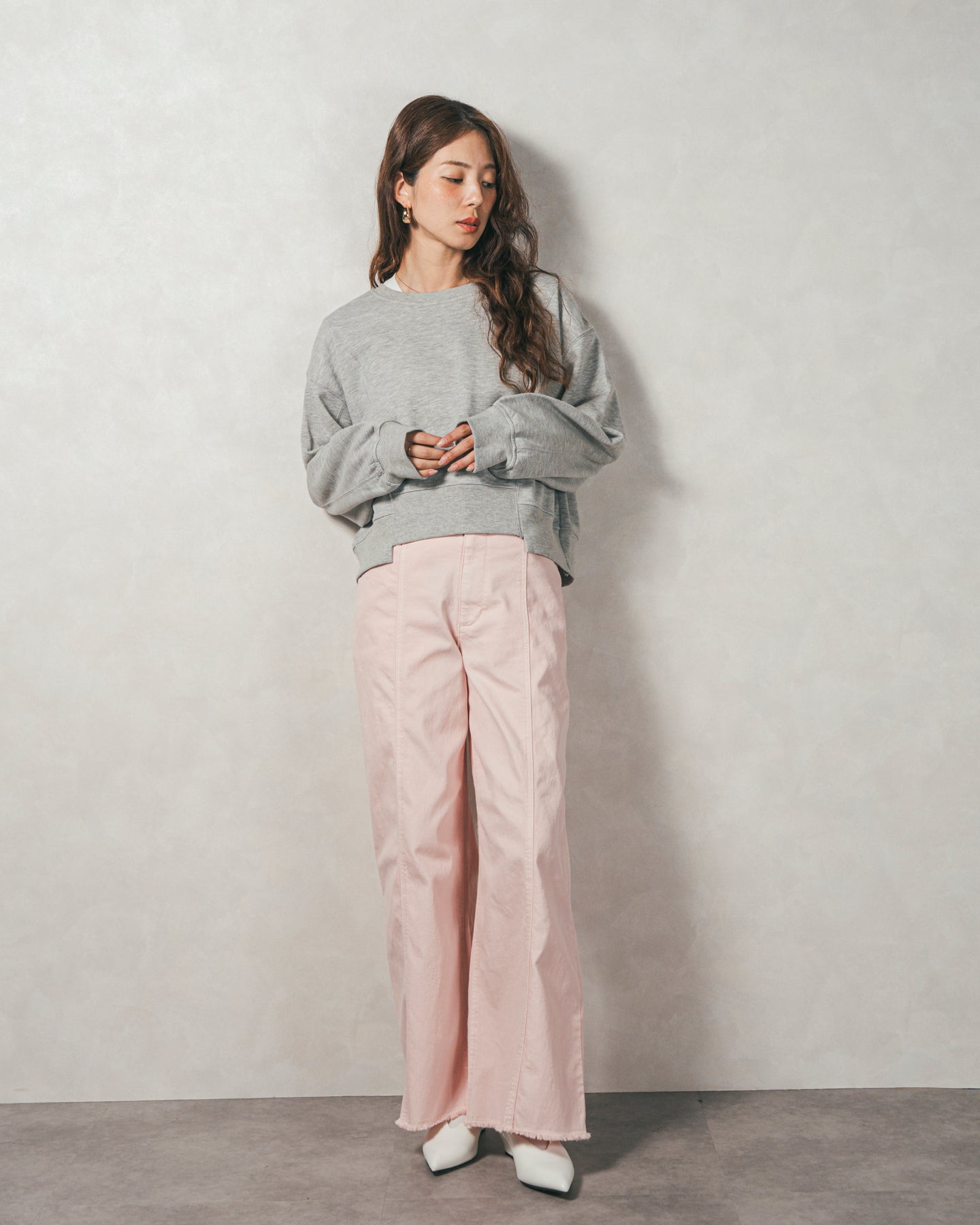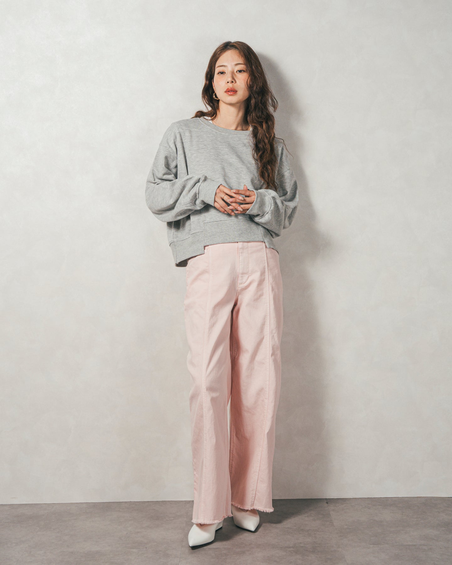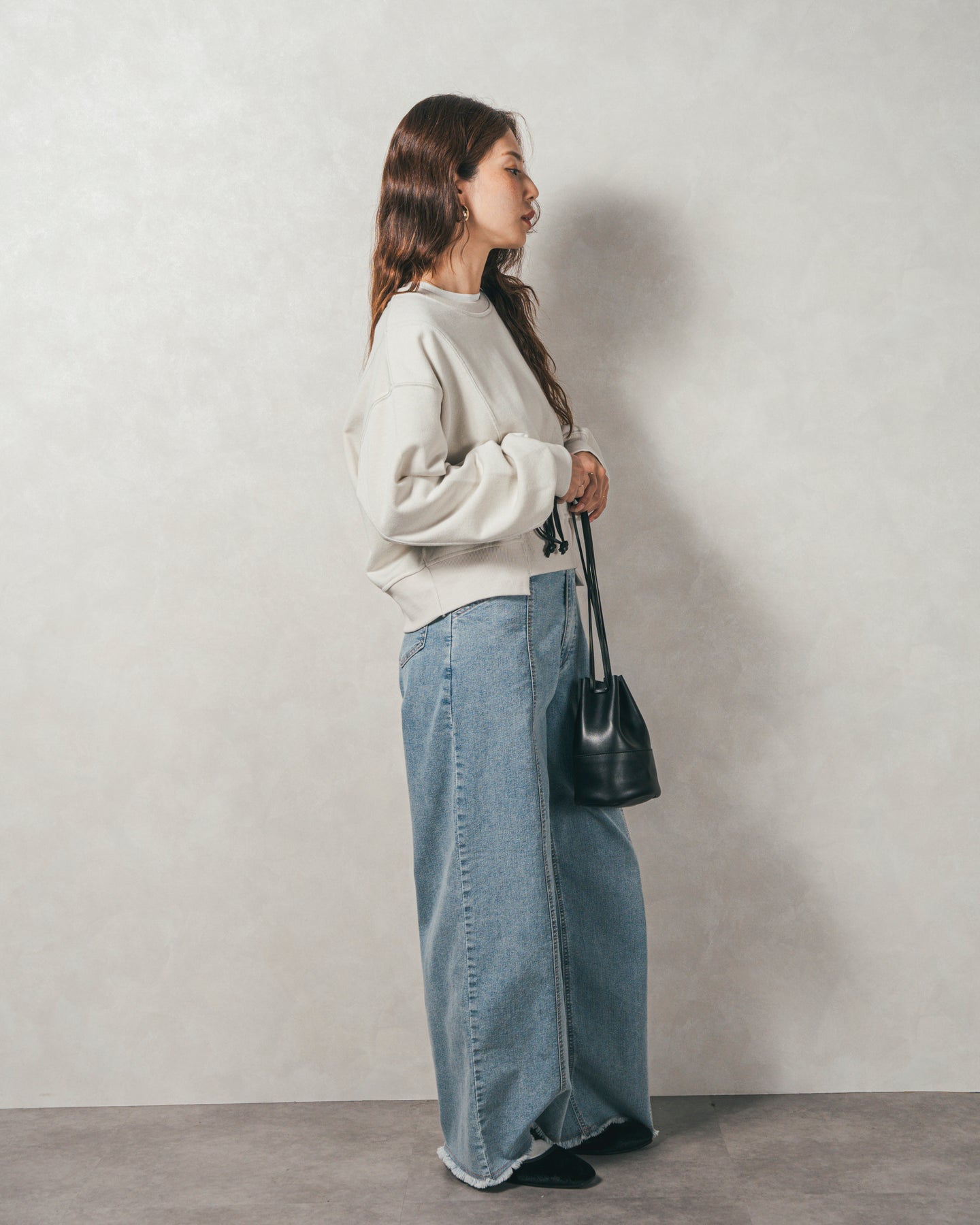 [SET]ラメ裏毛ボリュームスリーブトレーナー+センターシーム リラックスカラーデニム(2SET)
