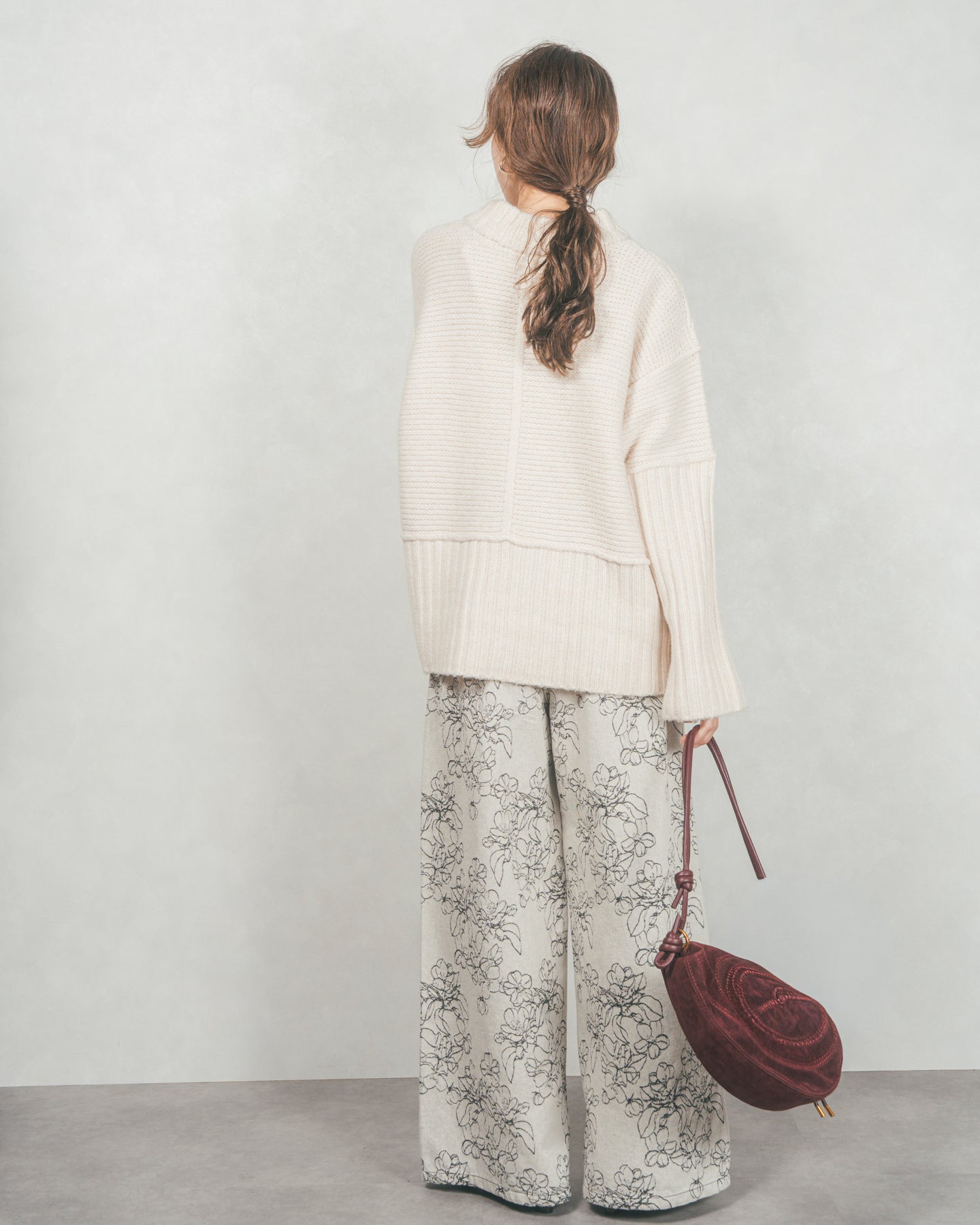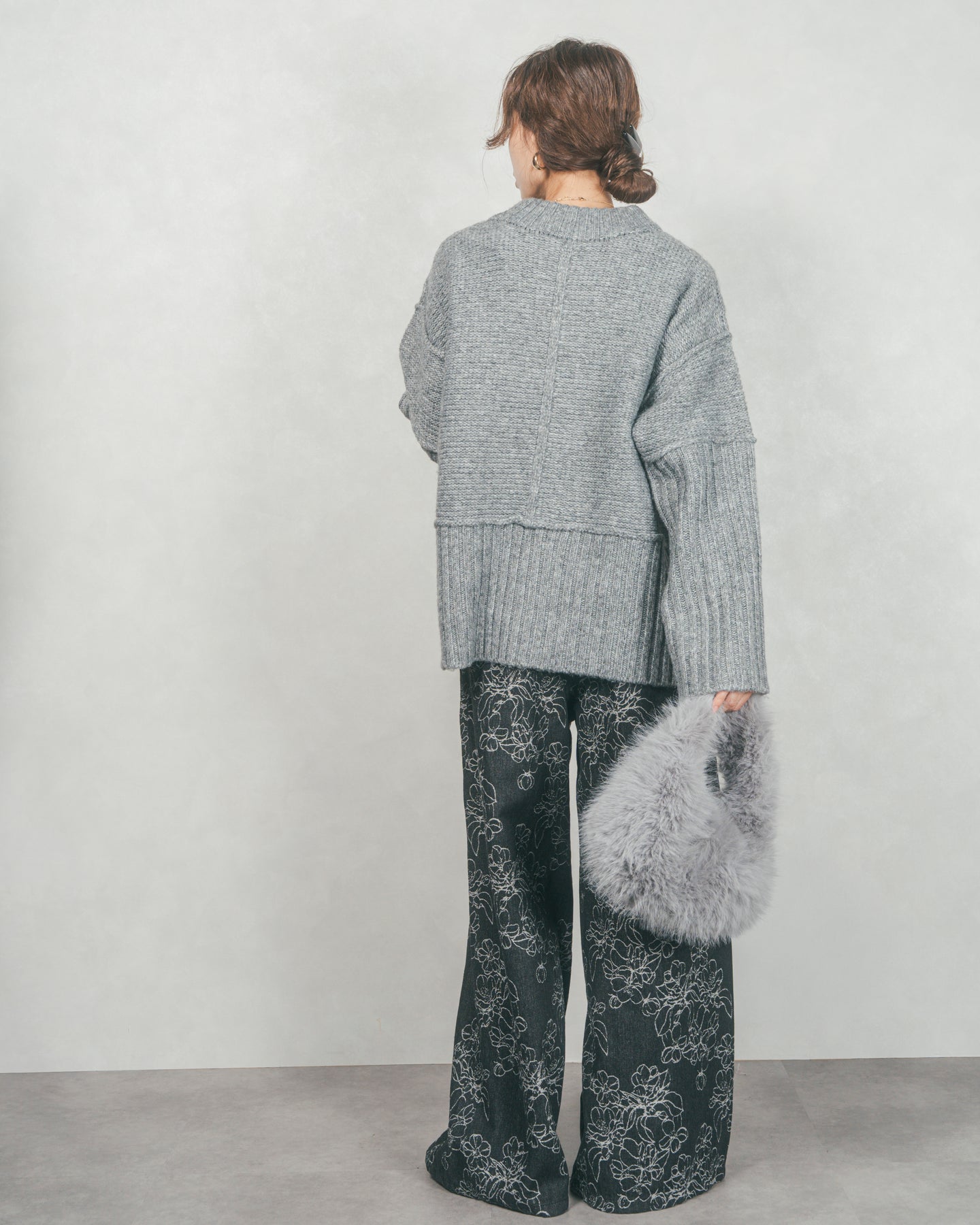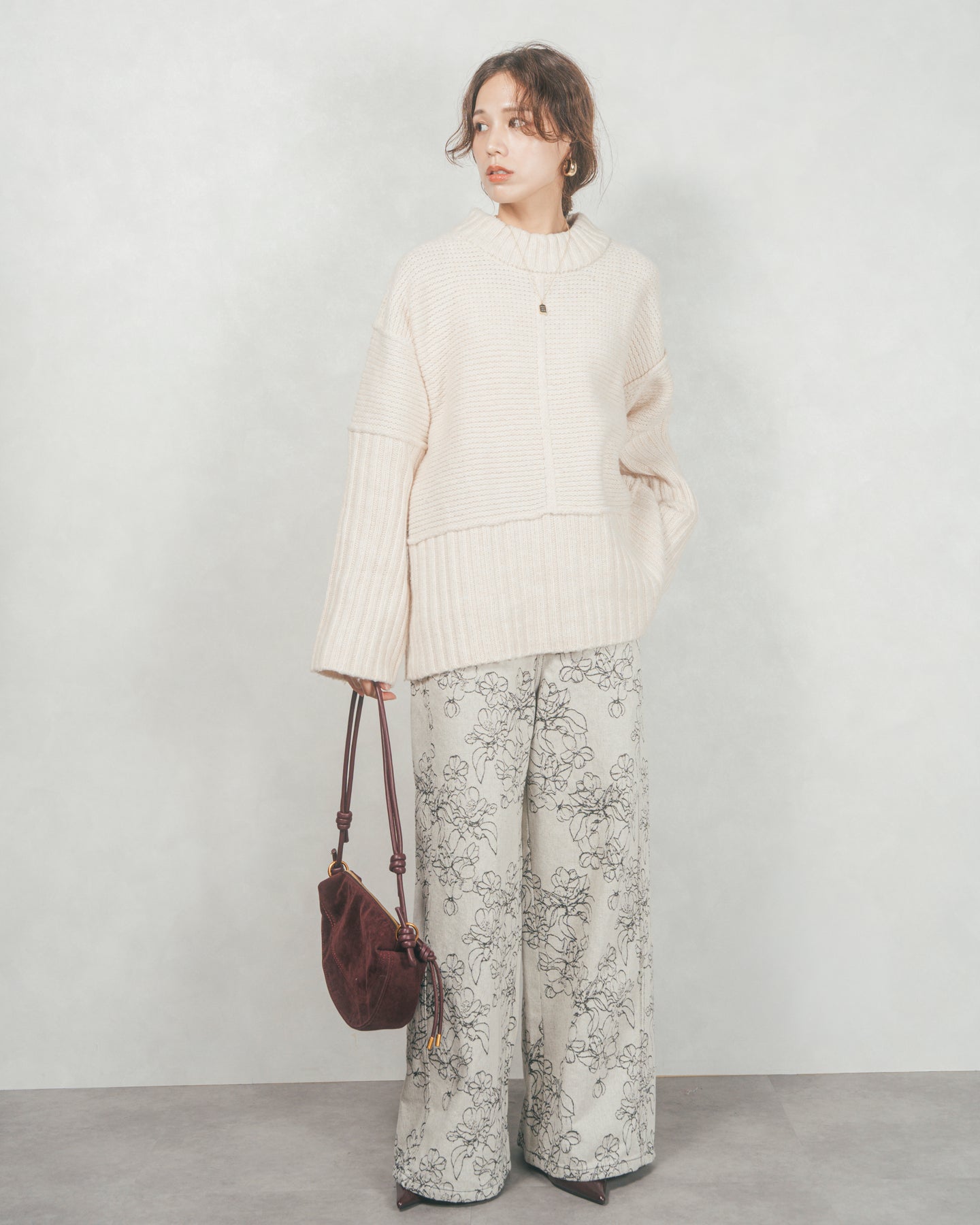 [SET]リンキングデザイン リラックスニット+フラワージャガードデニム(2SET)