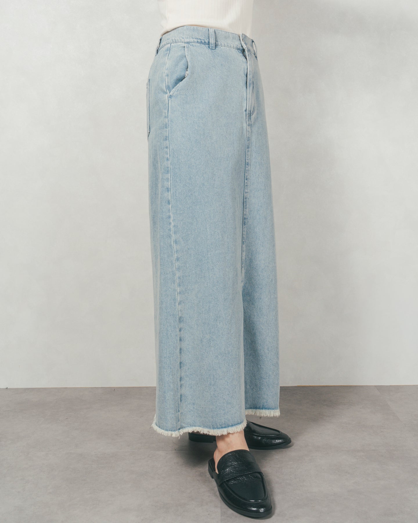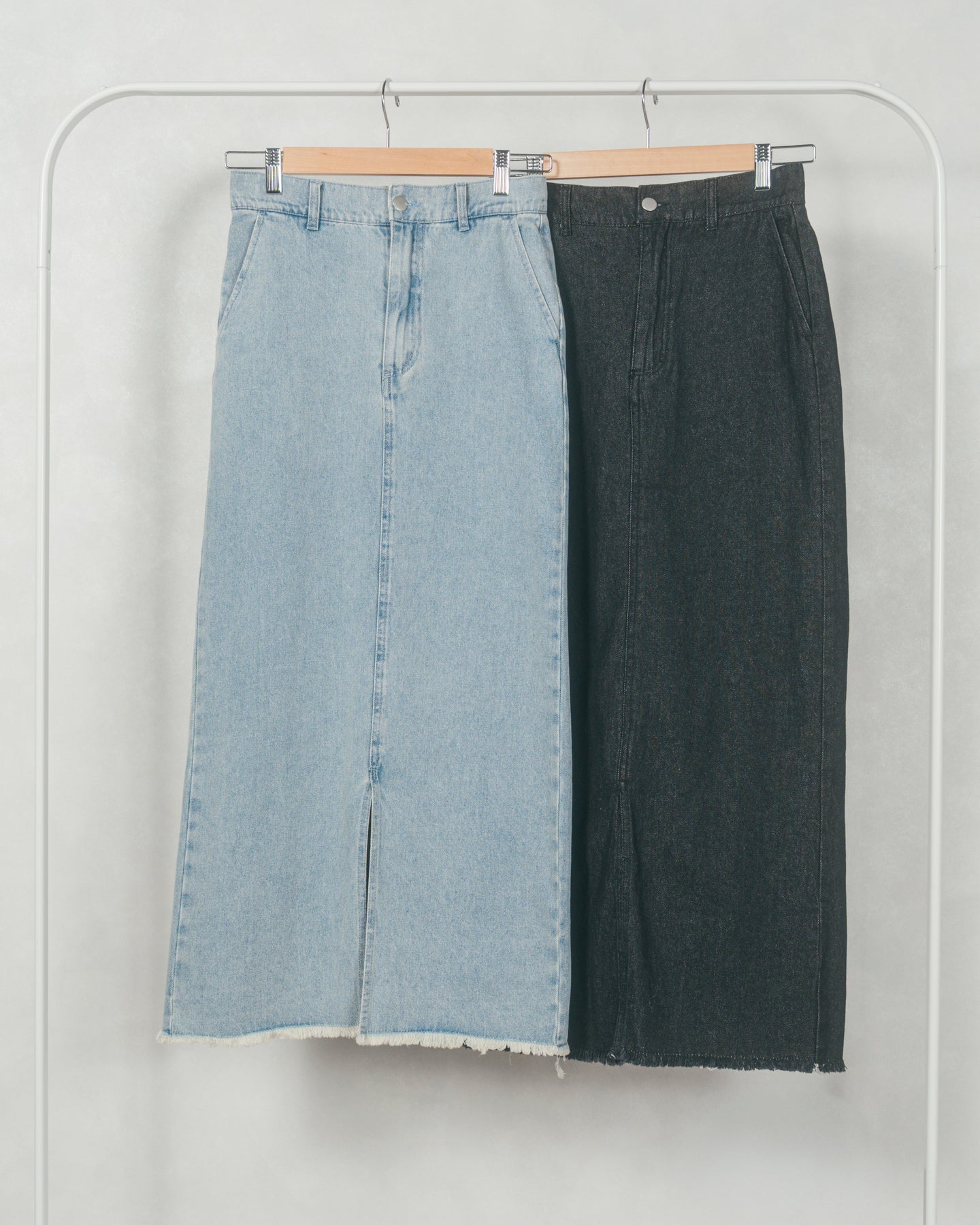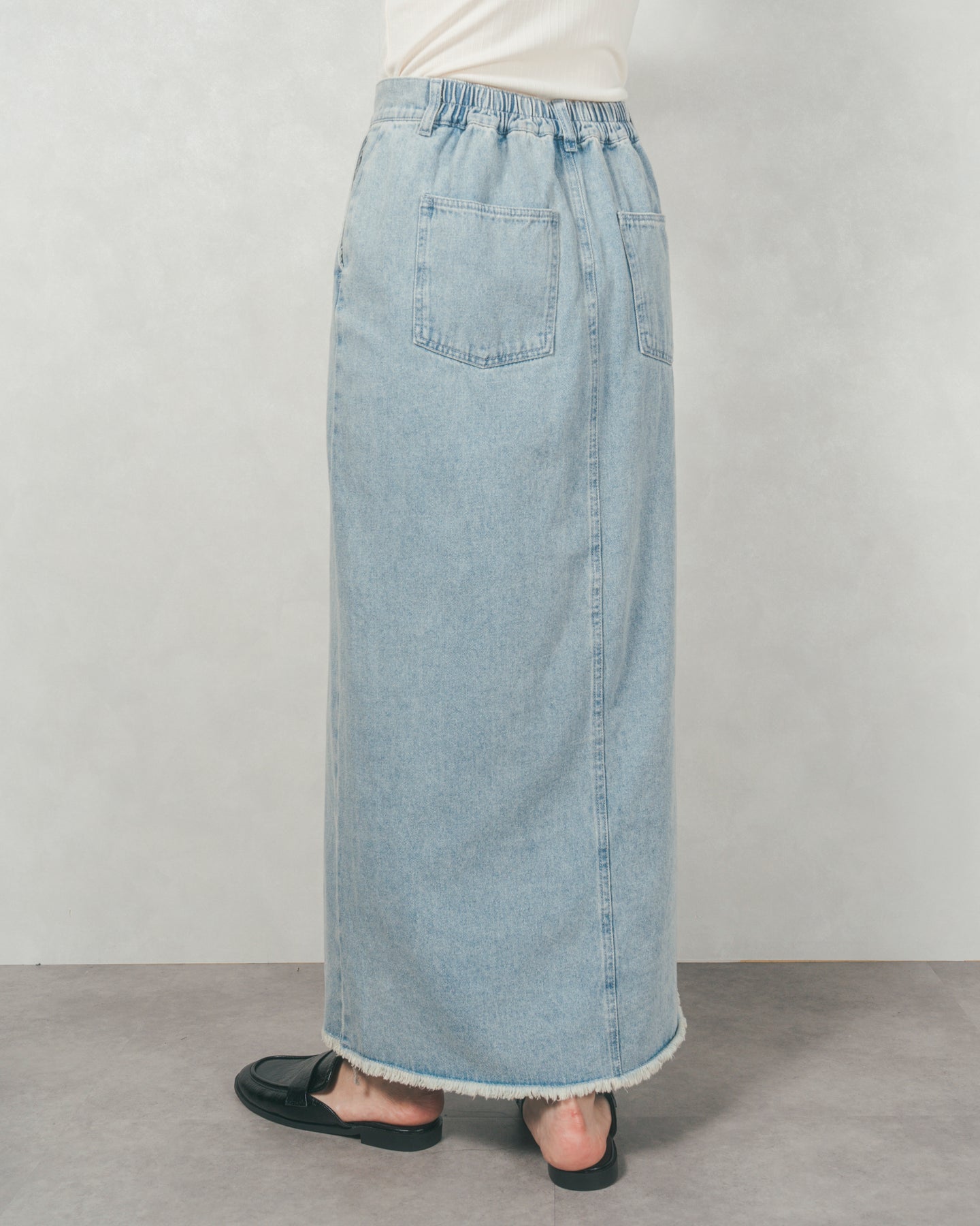 フロントスリット Iラインデニムスカート (LIGHT BLUE)